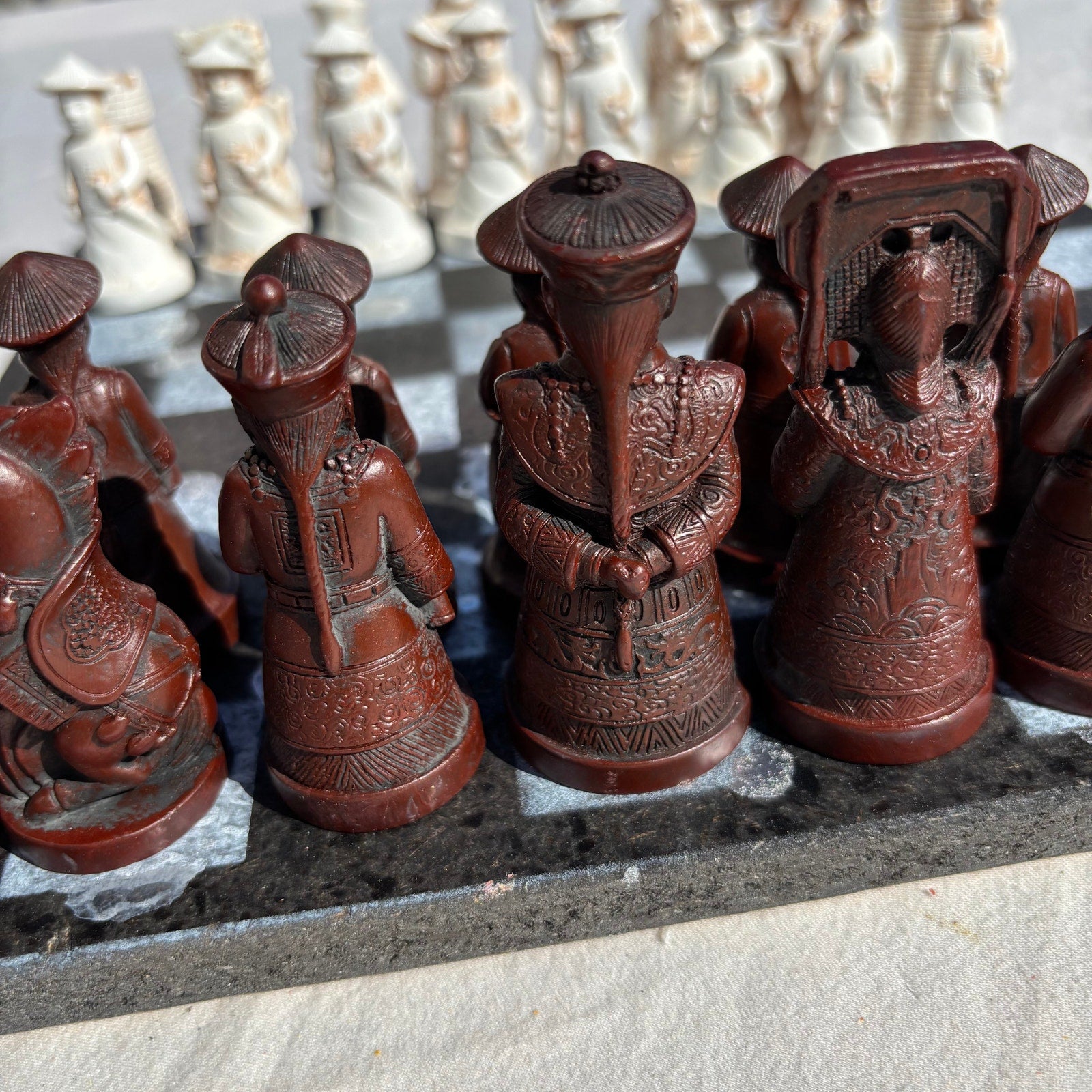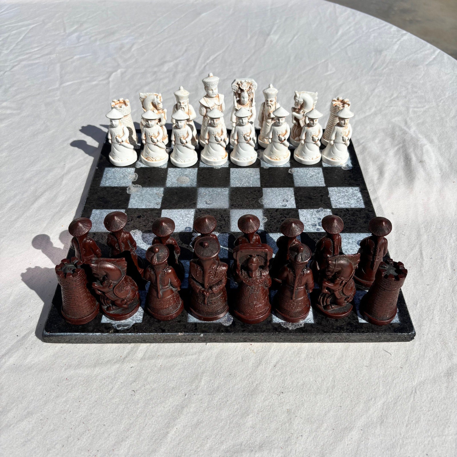 This set is not just a game; it's a work of art, perfect for collectors and chess enthusiasts alike. The attention to detail and craftsmanship makes it a standout piece. Whether you're looking for a beautiful display item or a functional chess set for play, this hand-painted creation is sure to impress. The unique design and quality materials make it a valuable addition to any collection.