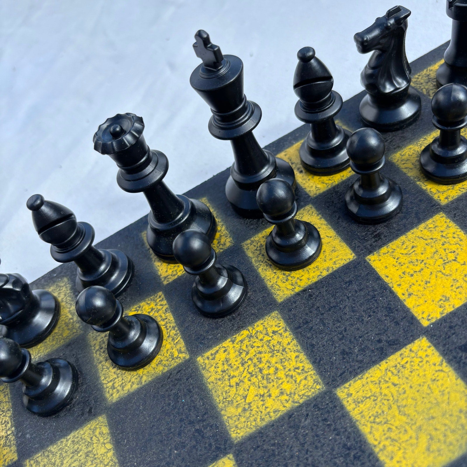 Introducing our exclusive Handcrafted Wooden Chess Set, meticulously designed with precision and care. Measuring 12 inches by 12 inches, this chess set features a beautifully painted Particle Board board that doubles as a work of art. Each set is a unique, one-of-a-kind creation, crafted by hand to ensure that no two sets are alike. Elevate your gaming experience with this exceptional chess set that combines vibrant design with the touch of artisan craftsmanship. This chess board comes with chess pieces.