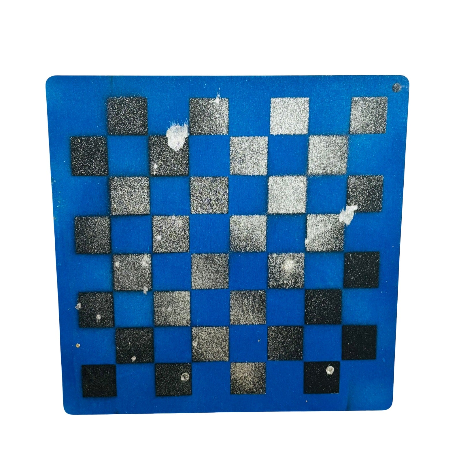 Blue & Chrome Black - Painted Thin Wooden Chess Board
