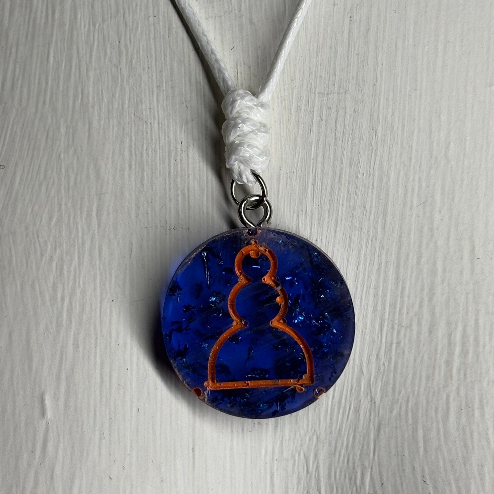 Blue Crystal Orange Pawn - Handmade Resin Chess Necklace