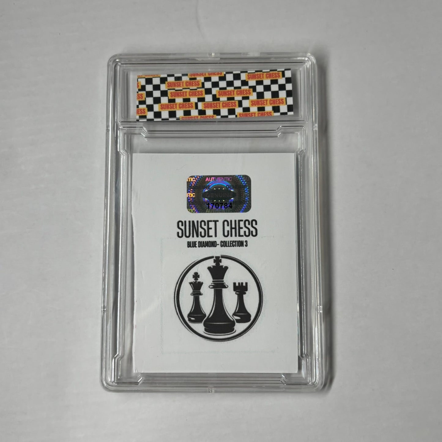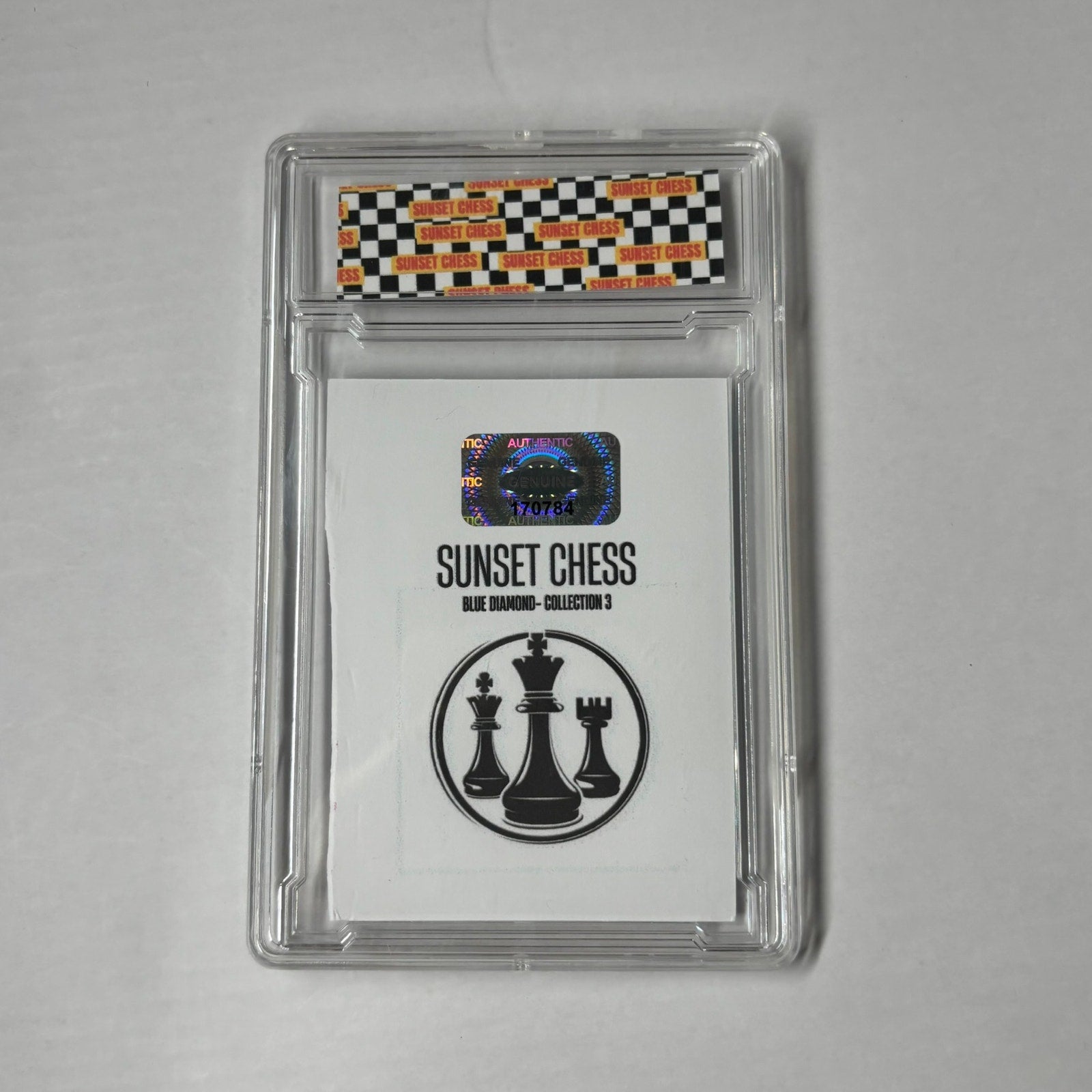 This card is chess-themed, making it a great addition for chess enthusiasts and collectors alike. With over 10,000 cards in the series, finding the perfectly cut card is part of the fun. Start your collection today and enjoy the thrill of the hunt!