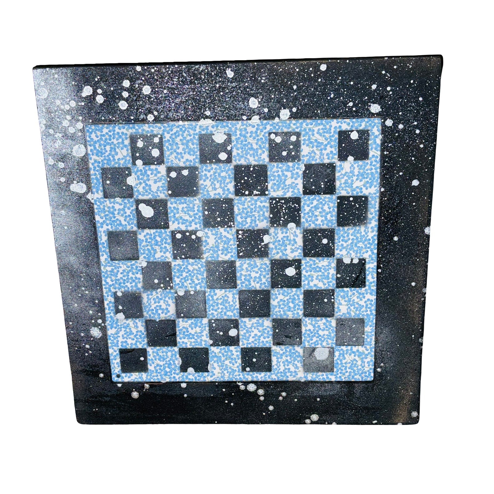 Blue Flower Chrome Drip - Large Scrapbook Chess Board