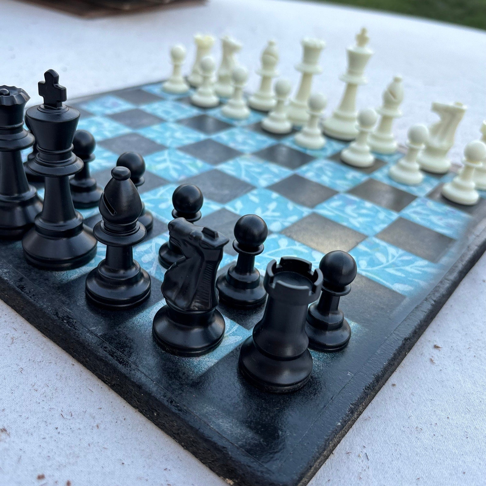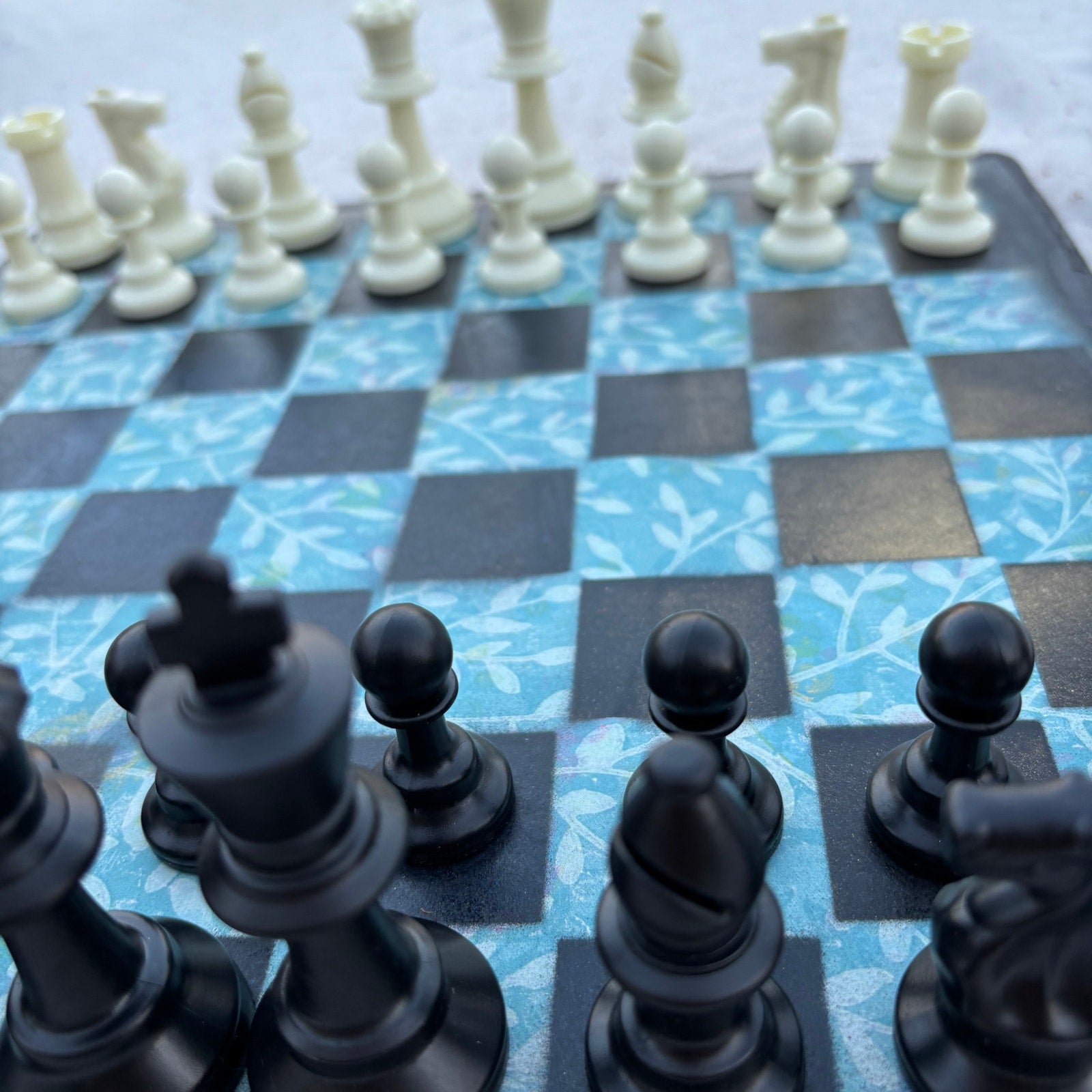 Introducing our exclusive Handcrafted Wooden Chess Set, meticulously designed with precision and care. Measuring 12 inches by 12 inches, this chess set features a beautifully painted particle board layered with a sheet of scrapbook paper board that doubles as a work of art. Each set is a unique, one-of-a-kind creation, crafted by hand to ensure that no two sets are alike. Elevate your gaming experience with this exceptional chess set that combines vibrant design with the touch of artisan craftsmanship. This chess board comes with chess pieces and is handcrafted as a one of one