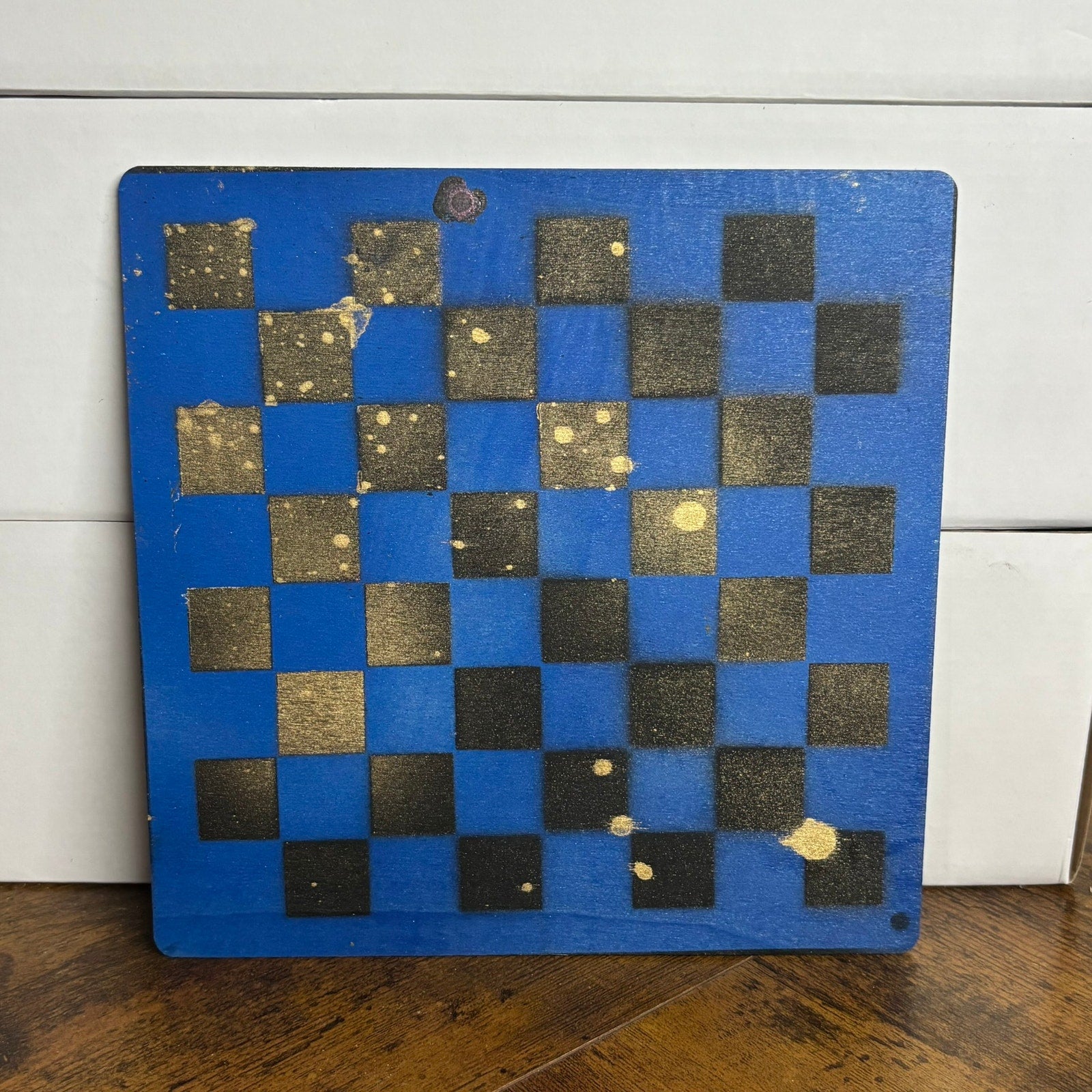 Blue Golden Black - Painted Thin Wooden Chess Board
