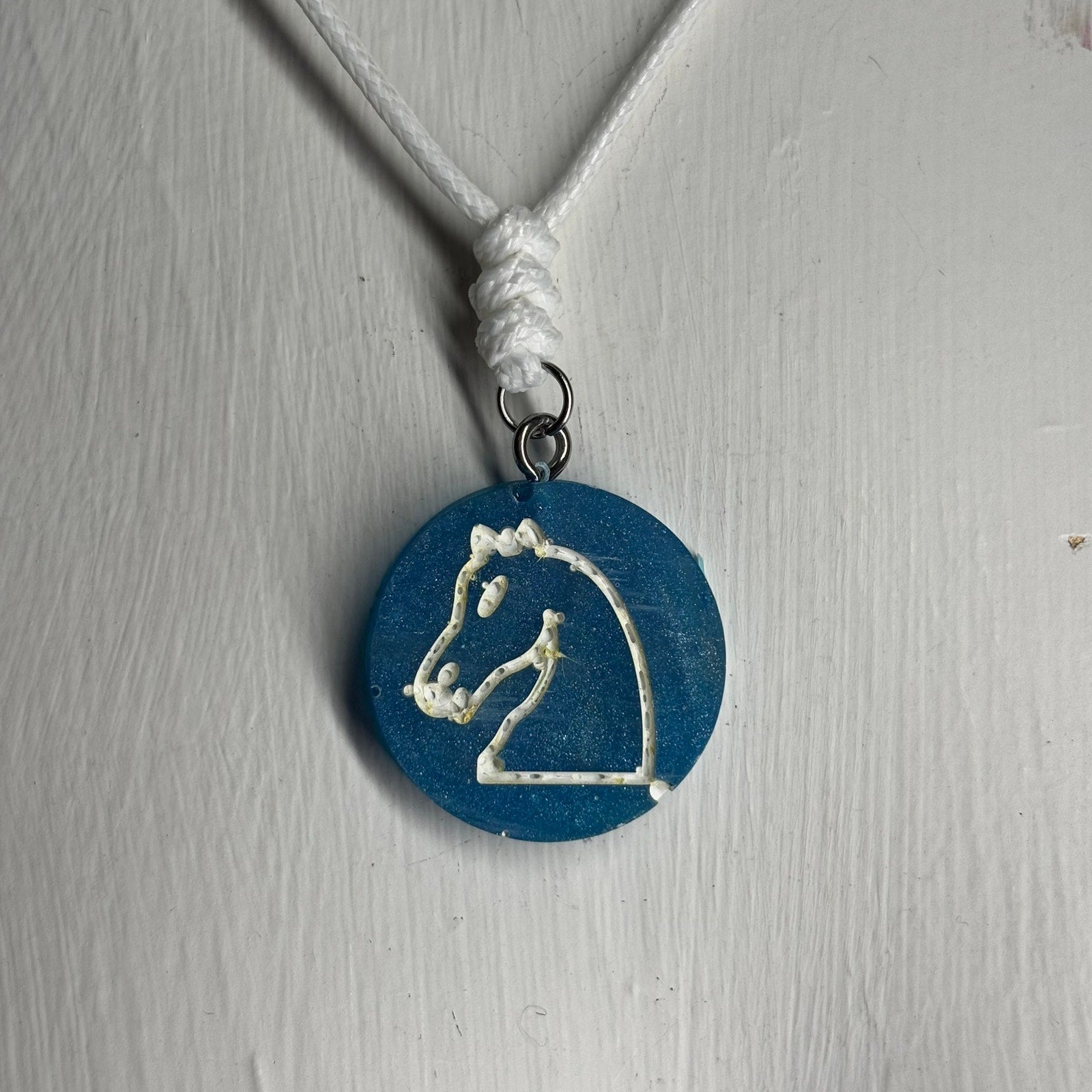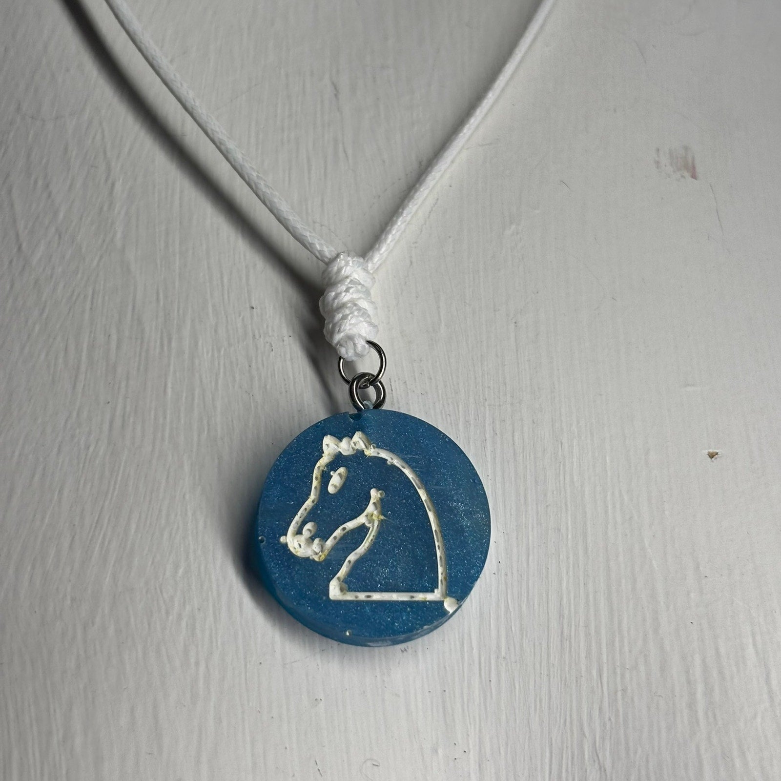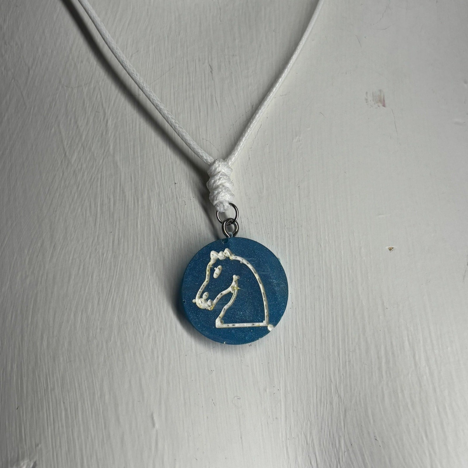 Blue Knight - Handmade Resin Chess Necklace
