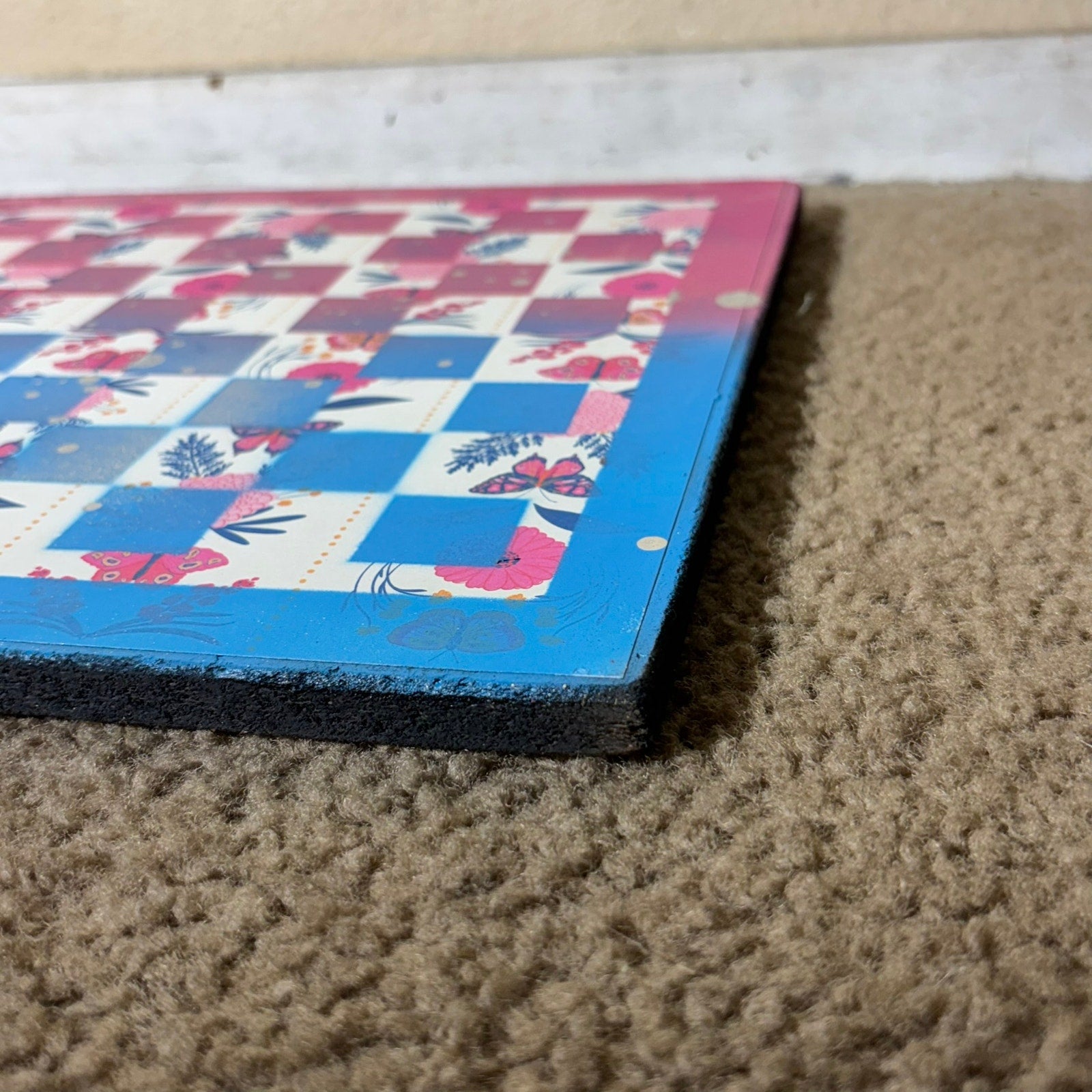 Each board features a layer of beautifully Scrapbook Paper Fused/Glued with particle board to give it a unique pretty pattern. We then paint squares onto the board to make them into fabulous chess boards. Made with a sturdy particle board base and smooth, beveled edges, this board is stunning.