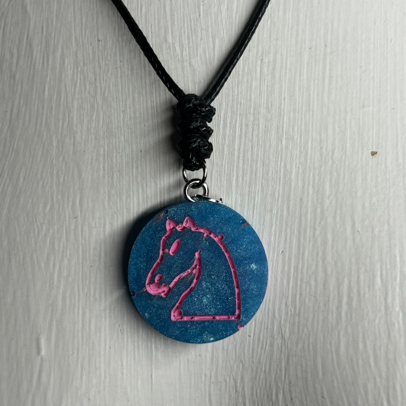 Blue & Pink Knight - Handmade Resin Chess Necklace