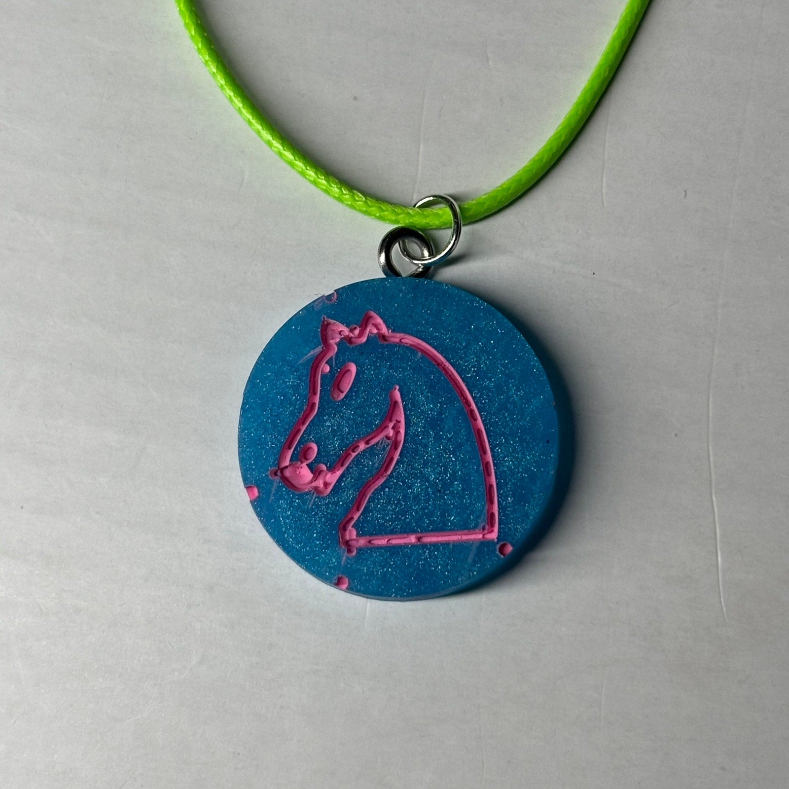 Blue & Pink Knight - Handmade Resin Chess Necklace