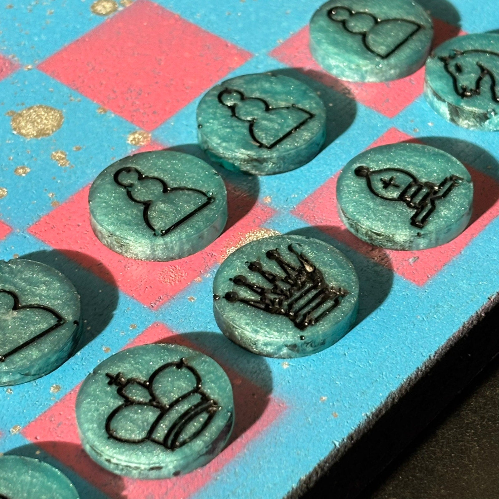 Blue & Pink - Painted Chess Set