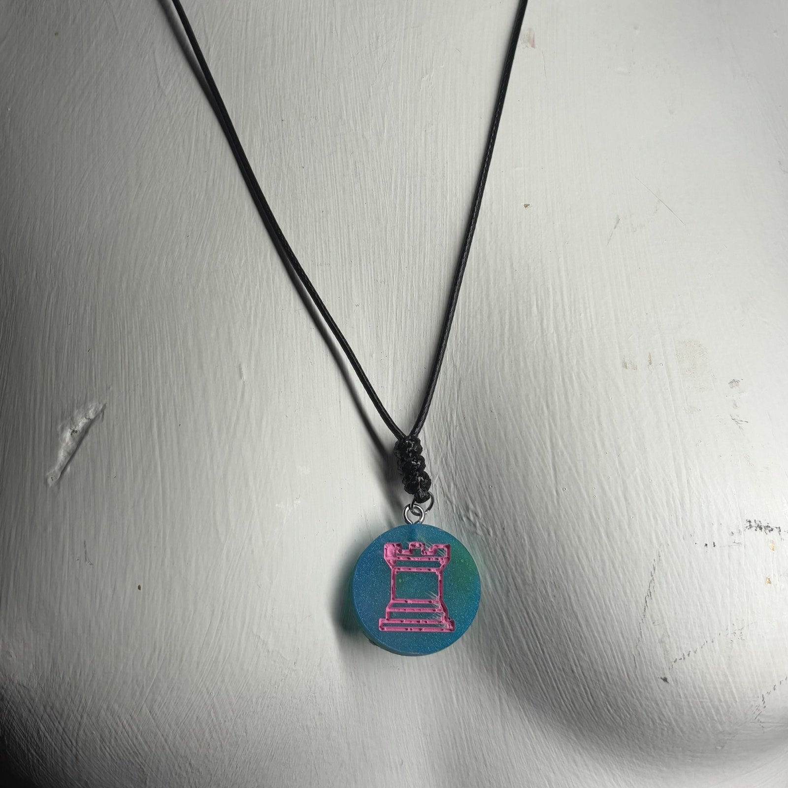 Blue/Pink Rook - Handmade Resin Chess Necklace