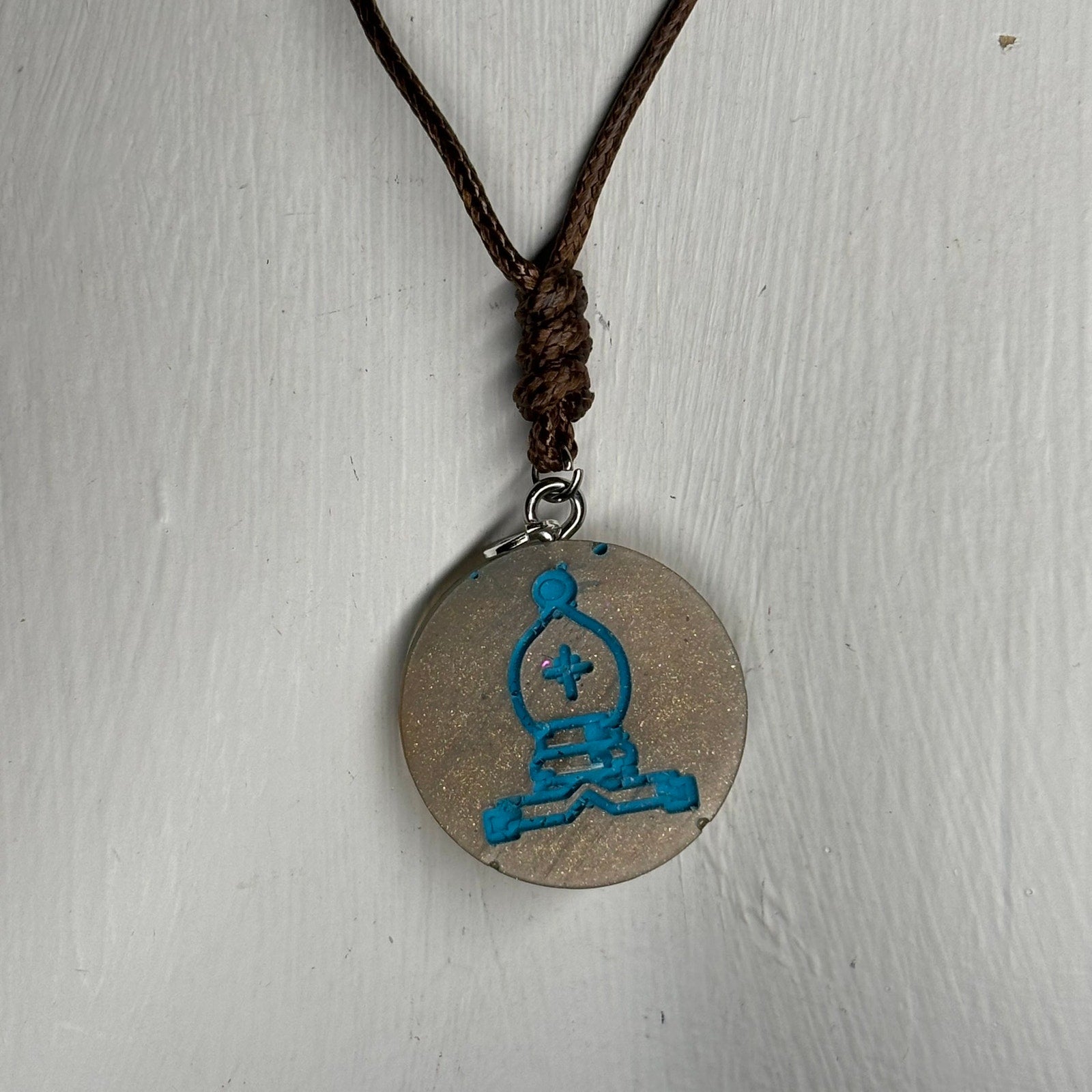 Blue Print Bishop - Handmade Resin Chess Necklace