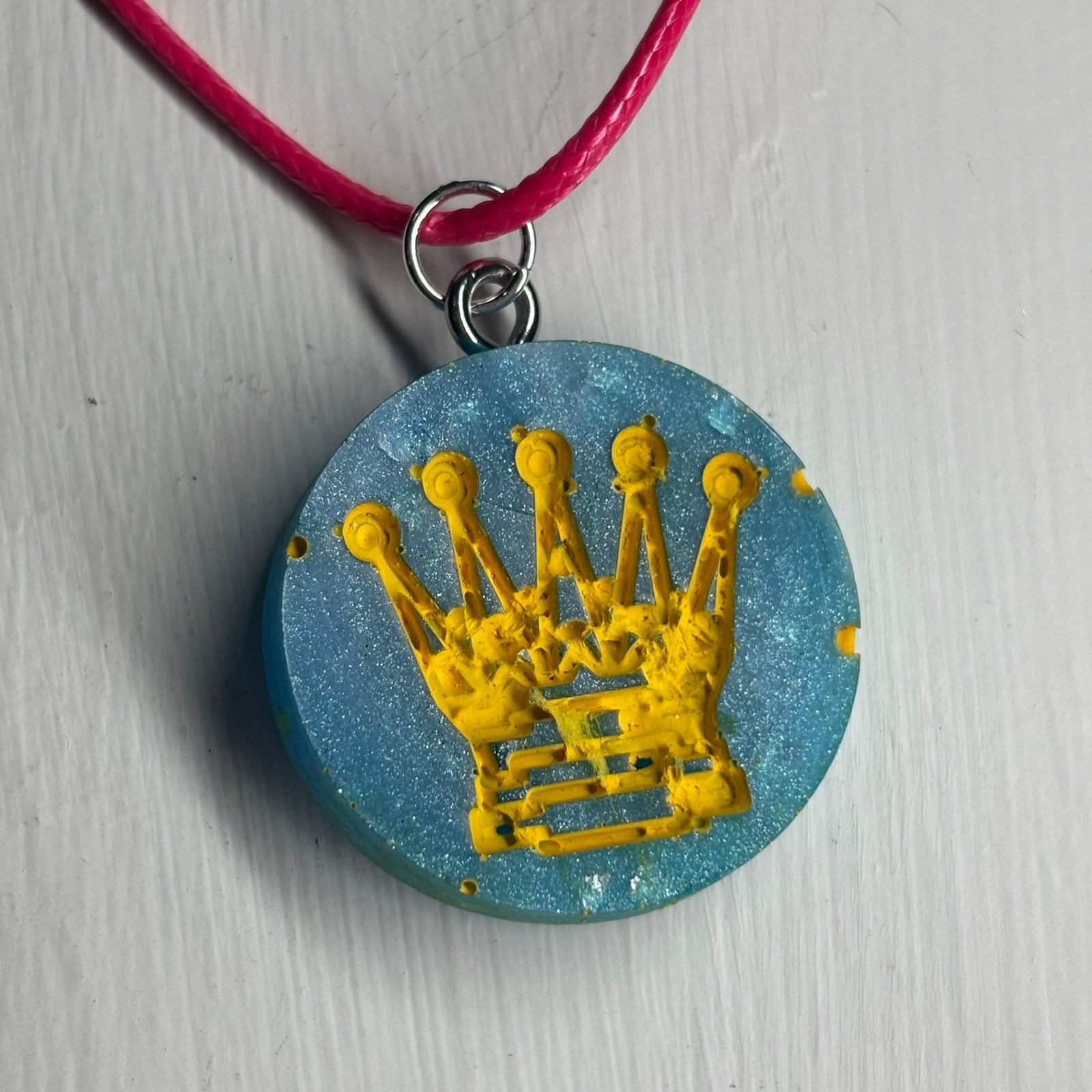 Blue/Yellow Queen - Handmade Resin Chess Necklace