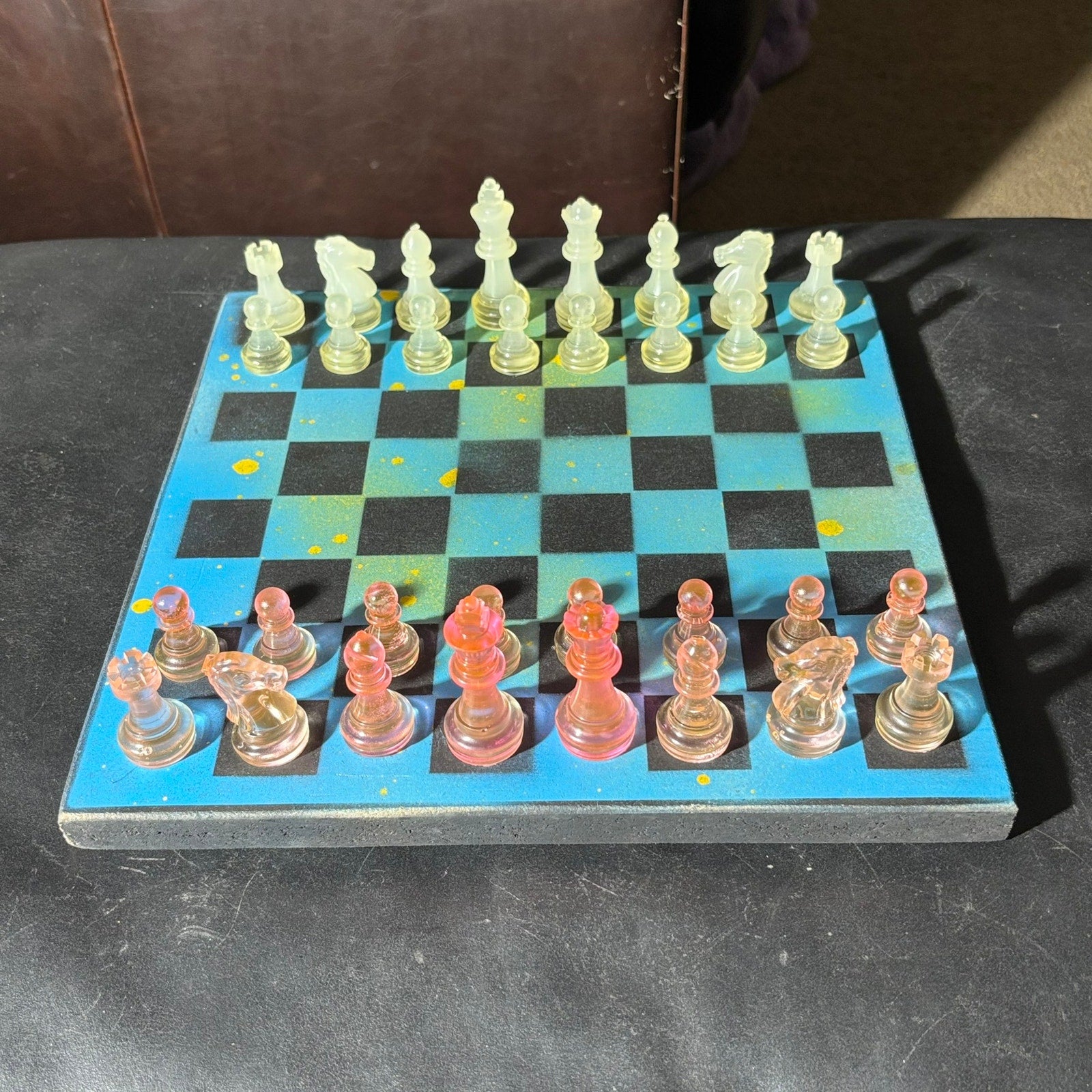 Blue & Yellow Smear - Painted Chess Set