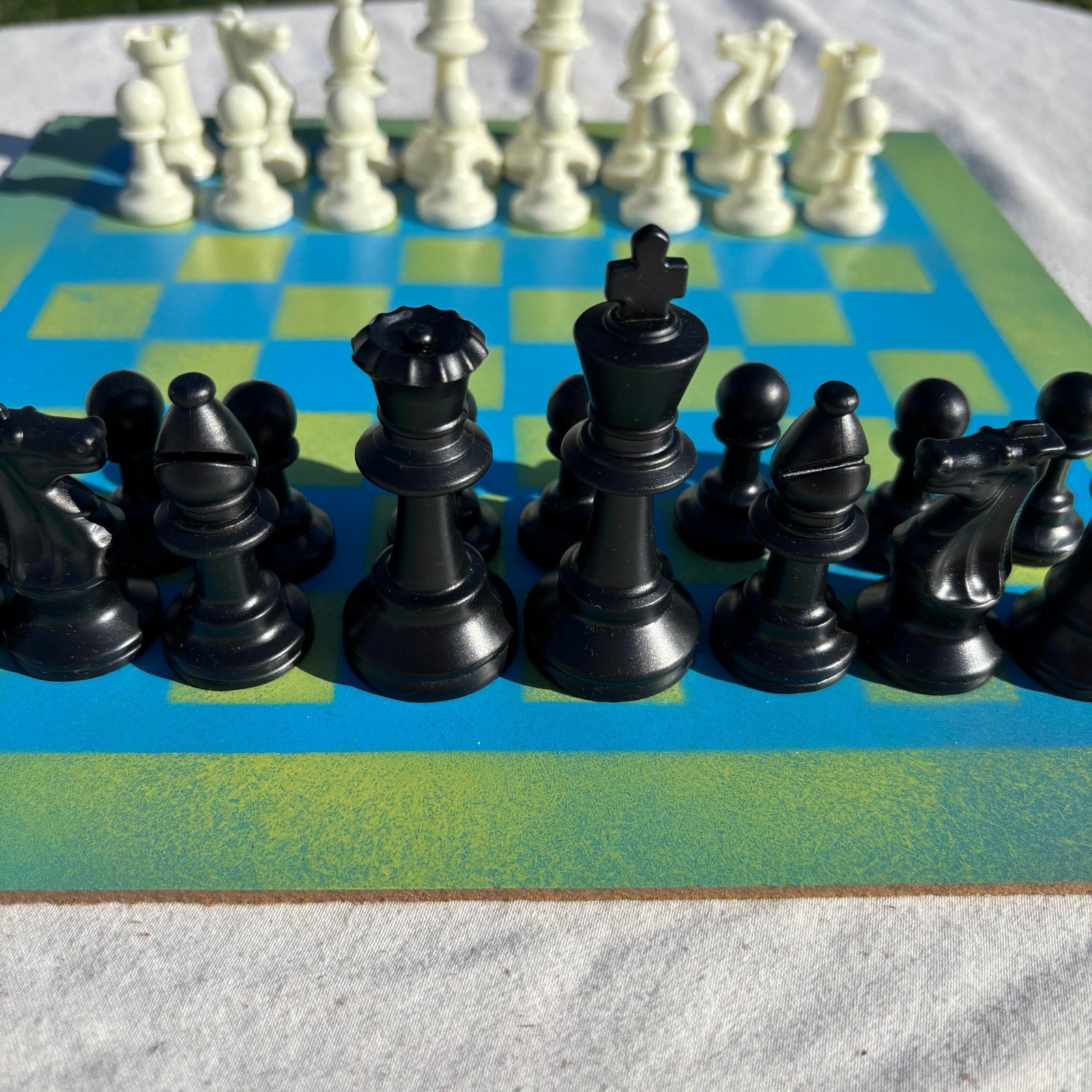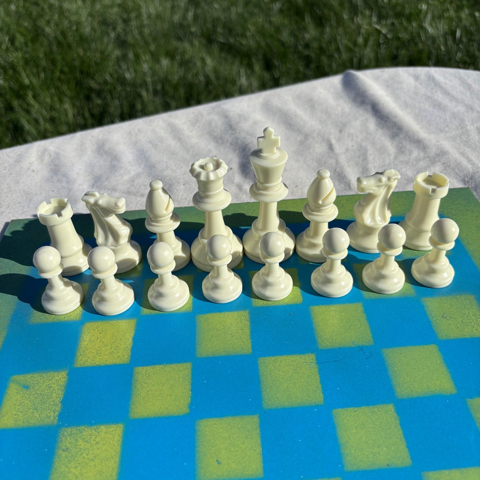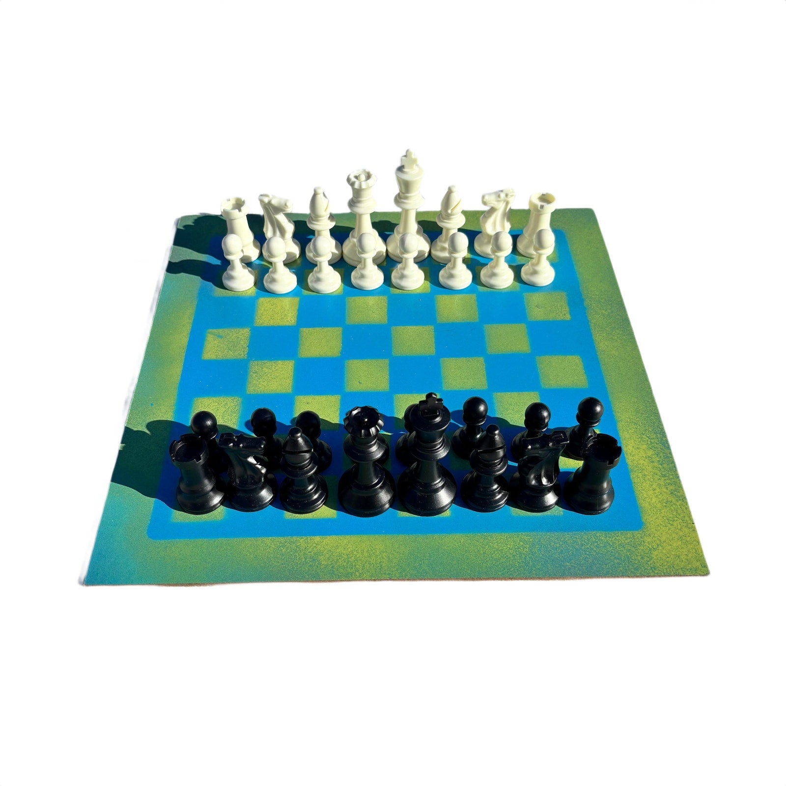 Bright Blue & Green - Painted Chess Set