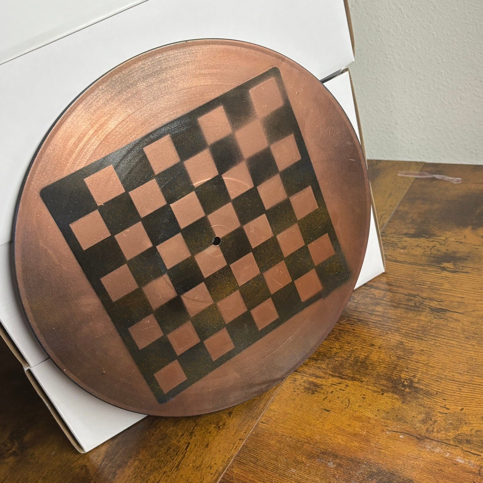 Add a unique and artistic touch to your game nights with these hand-painted vinyl record chess boards! Each board is a one-of-a-kind creation, featuring its own distinct color palette and design.