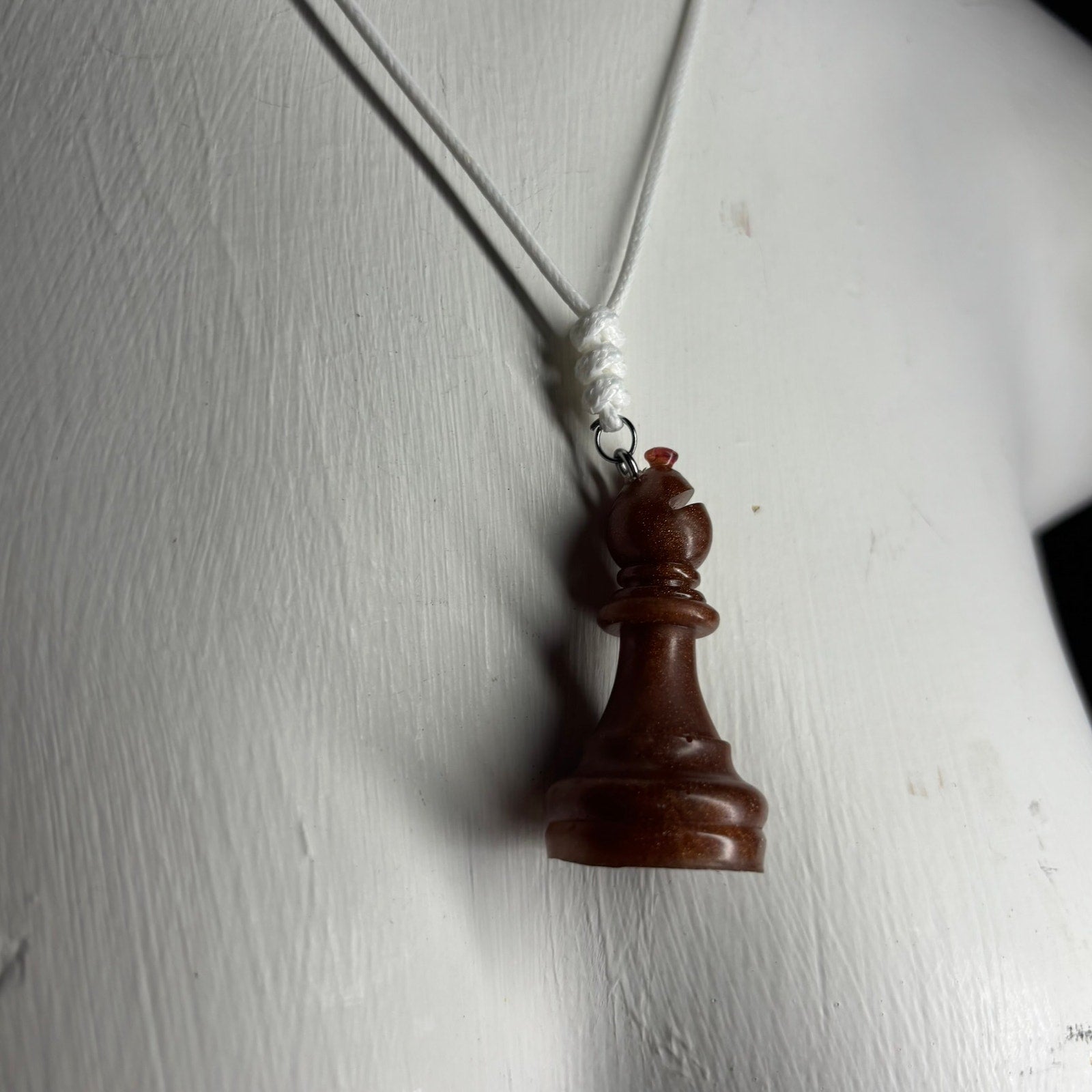 Bronze Brown Bishop - Handmade Resin Chess Necklace