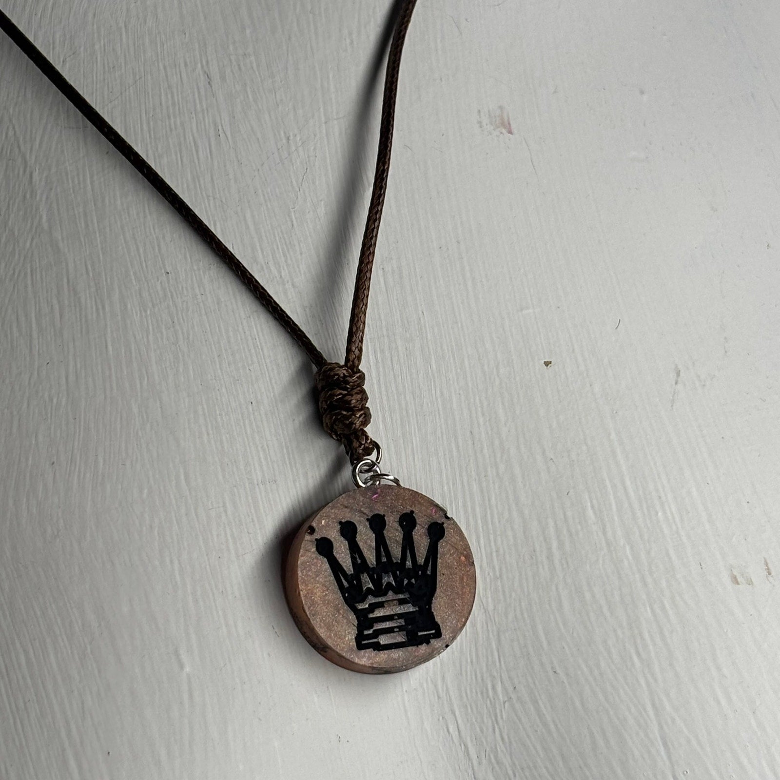 Bronze Brown Queen - Handmade Resin Chess Necklace