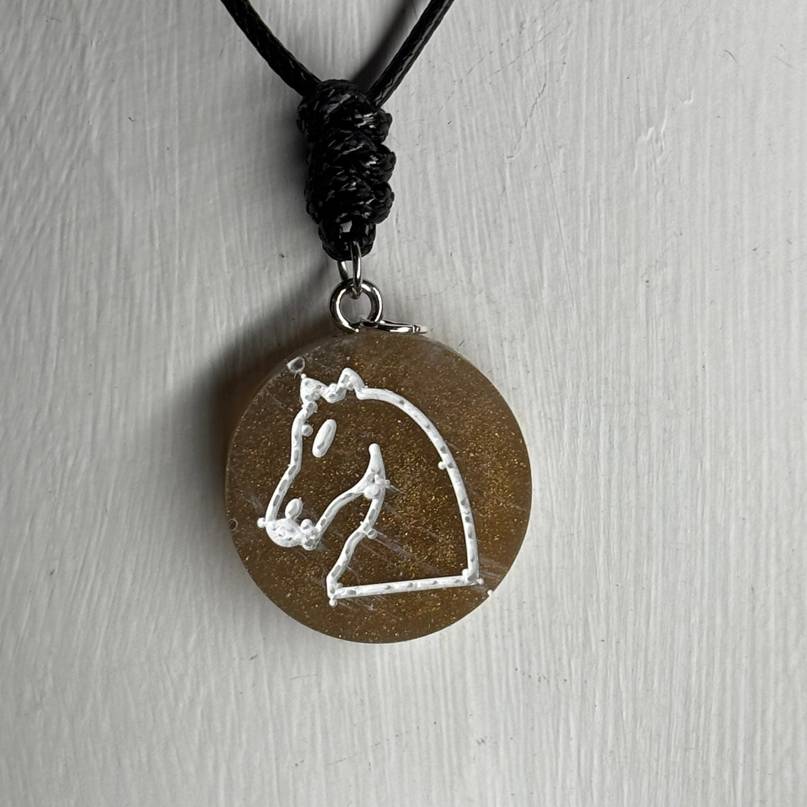 Bronze Yellow Knight - Handmade Resin Chess Necklace