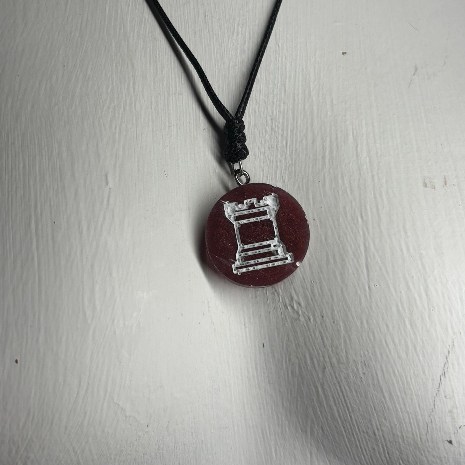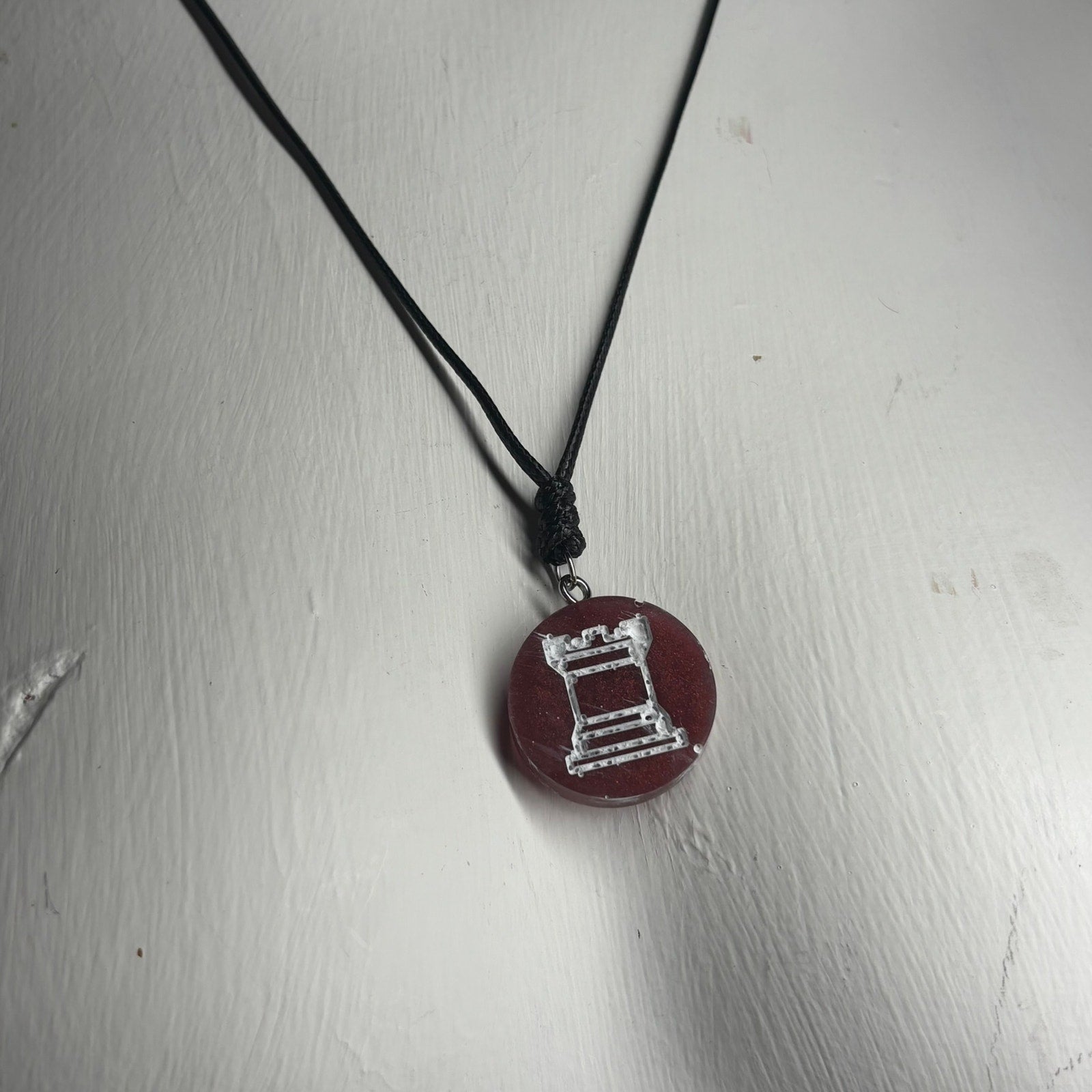 Burgundy Red Rook - Handmade Resin Chess Necklace
