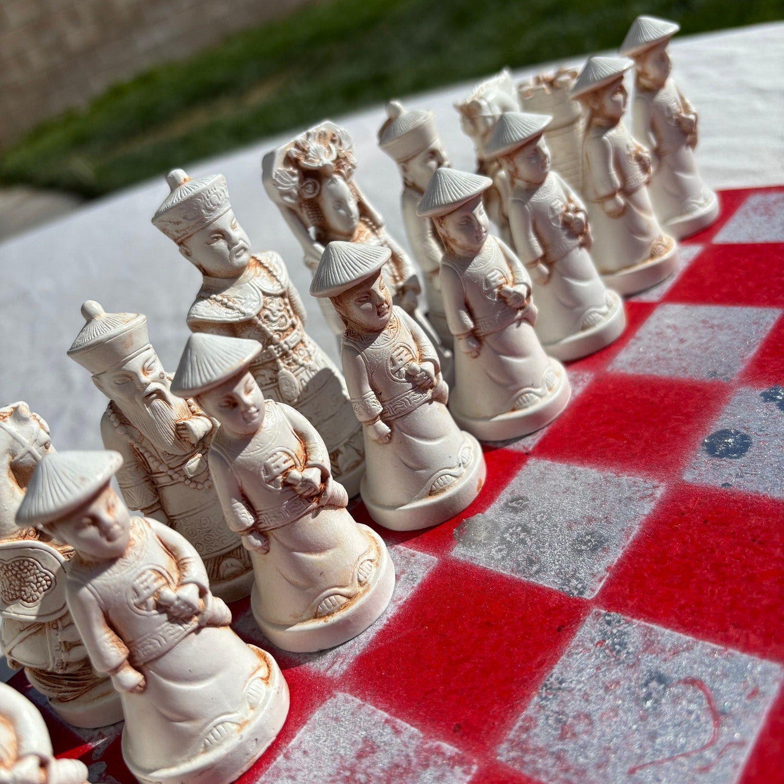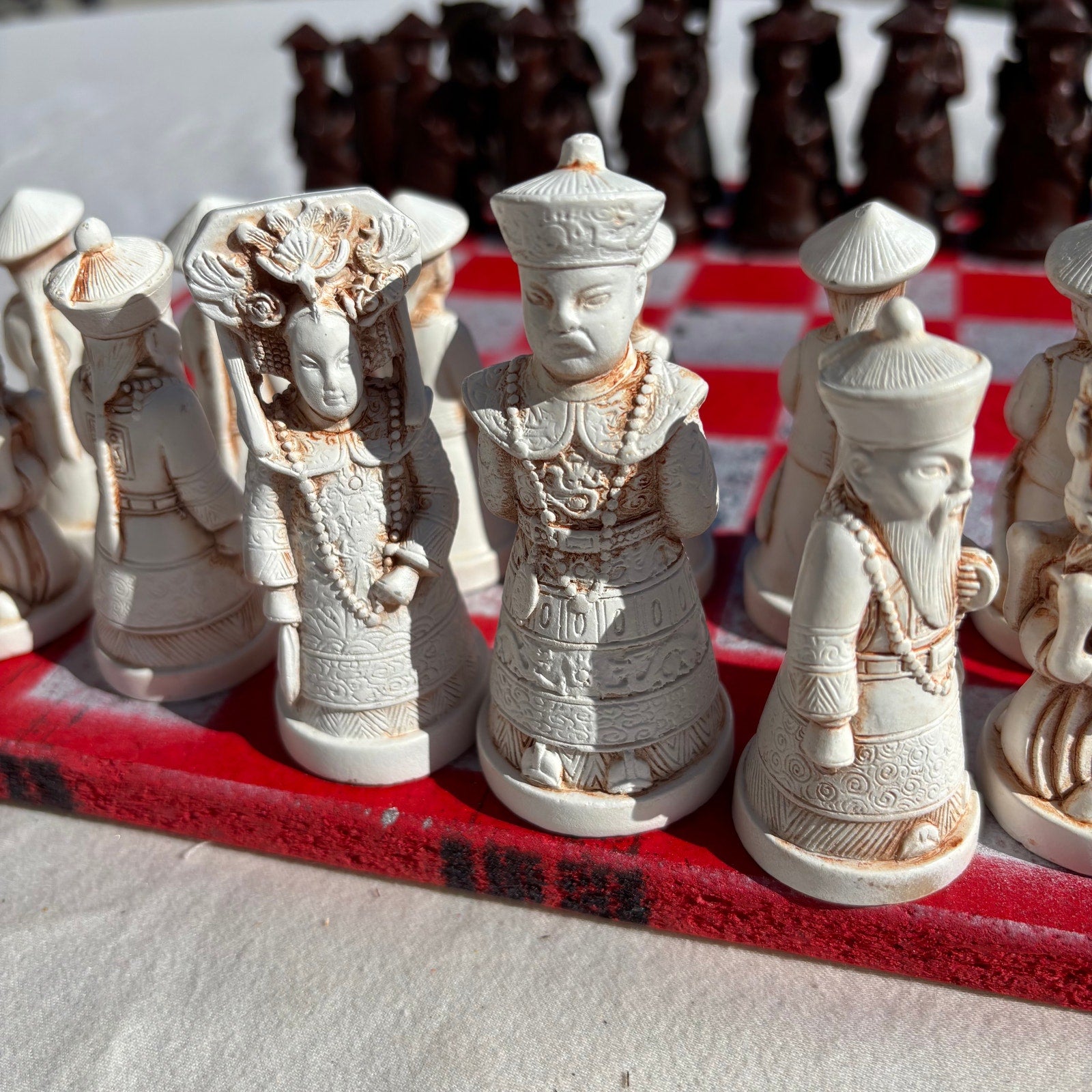 This set is not just a game; it's a work of art, perfect for collectors and chess enthusiasts alike. The attention to detail and craftsmanship makes it a standout piece. Whether you're looking for a beautiful display item or a functional chess set for play, this hand-painted creation is sure to impress. The unique design and quality materials make it a valuable addition to any collection.