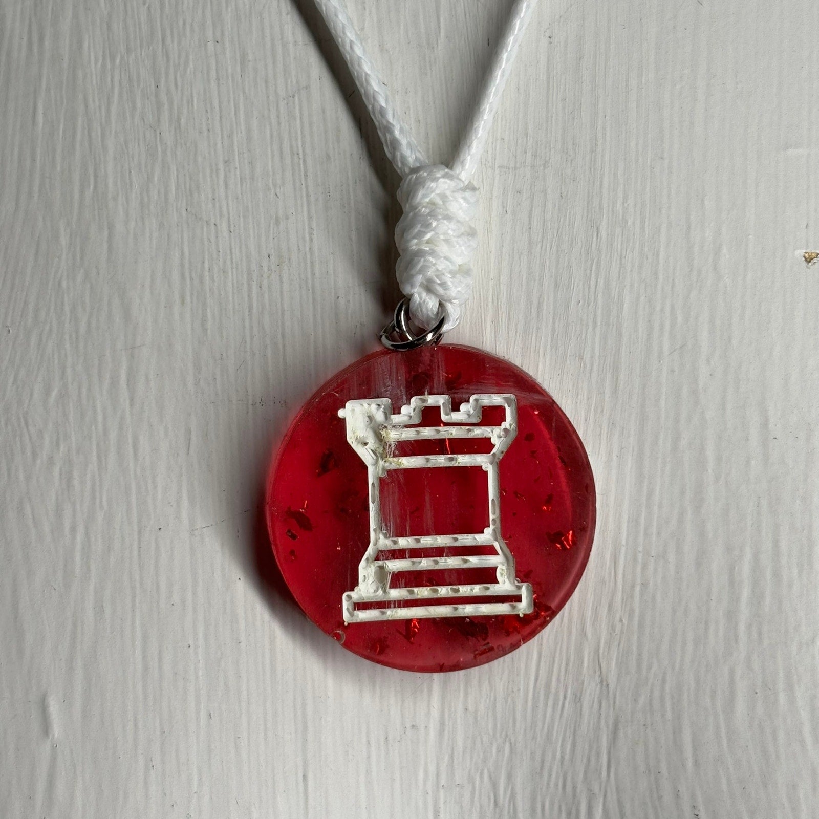 Candy Red Rook - Handmade Resin Chess Necklace