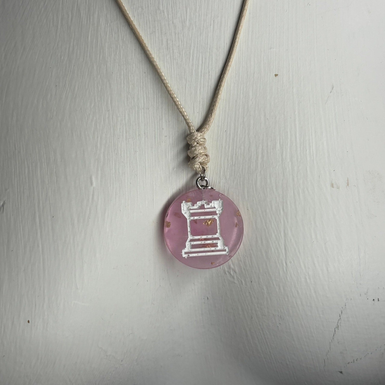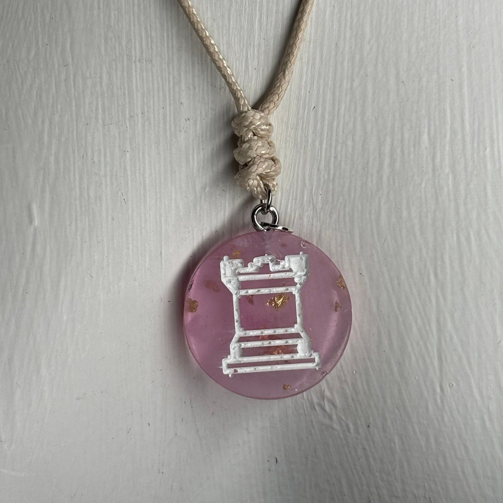Cherry Blossom Pink Rook - Handmade Resin Chess Necklace