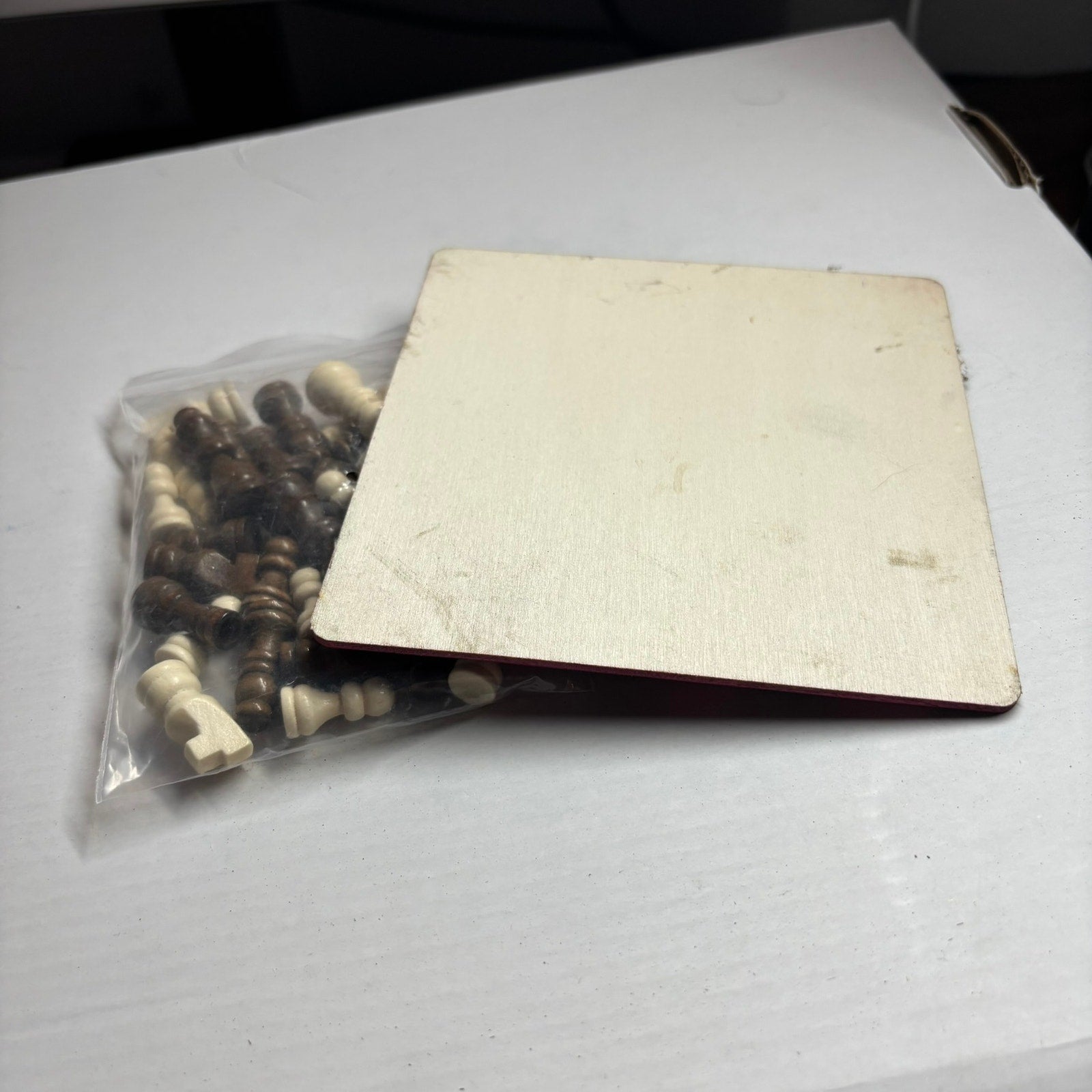 The chess pieces are small to match the board size, making it a delightful miniature set.