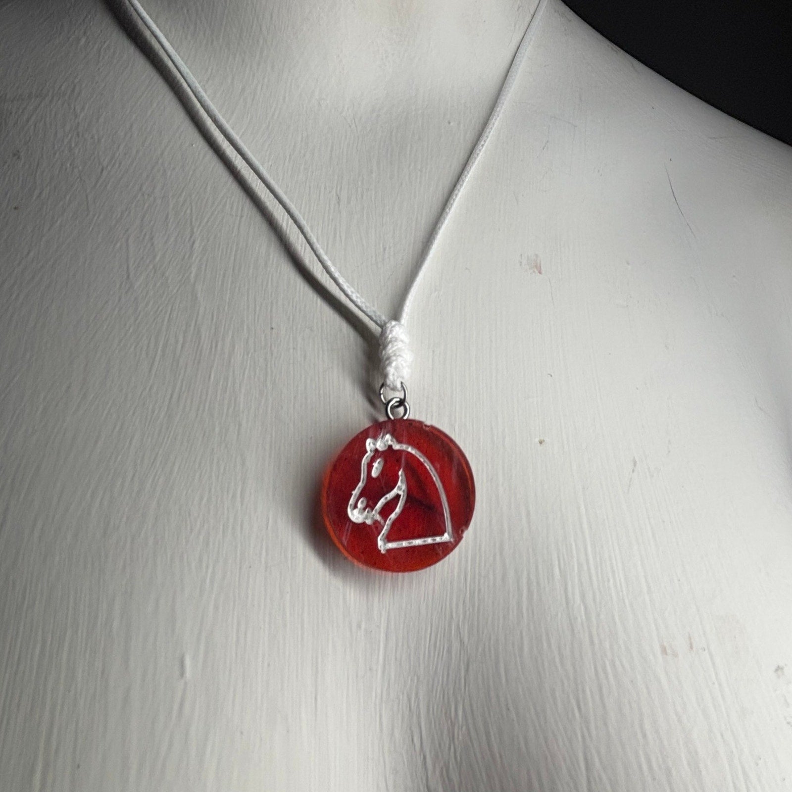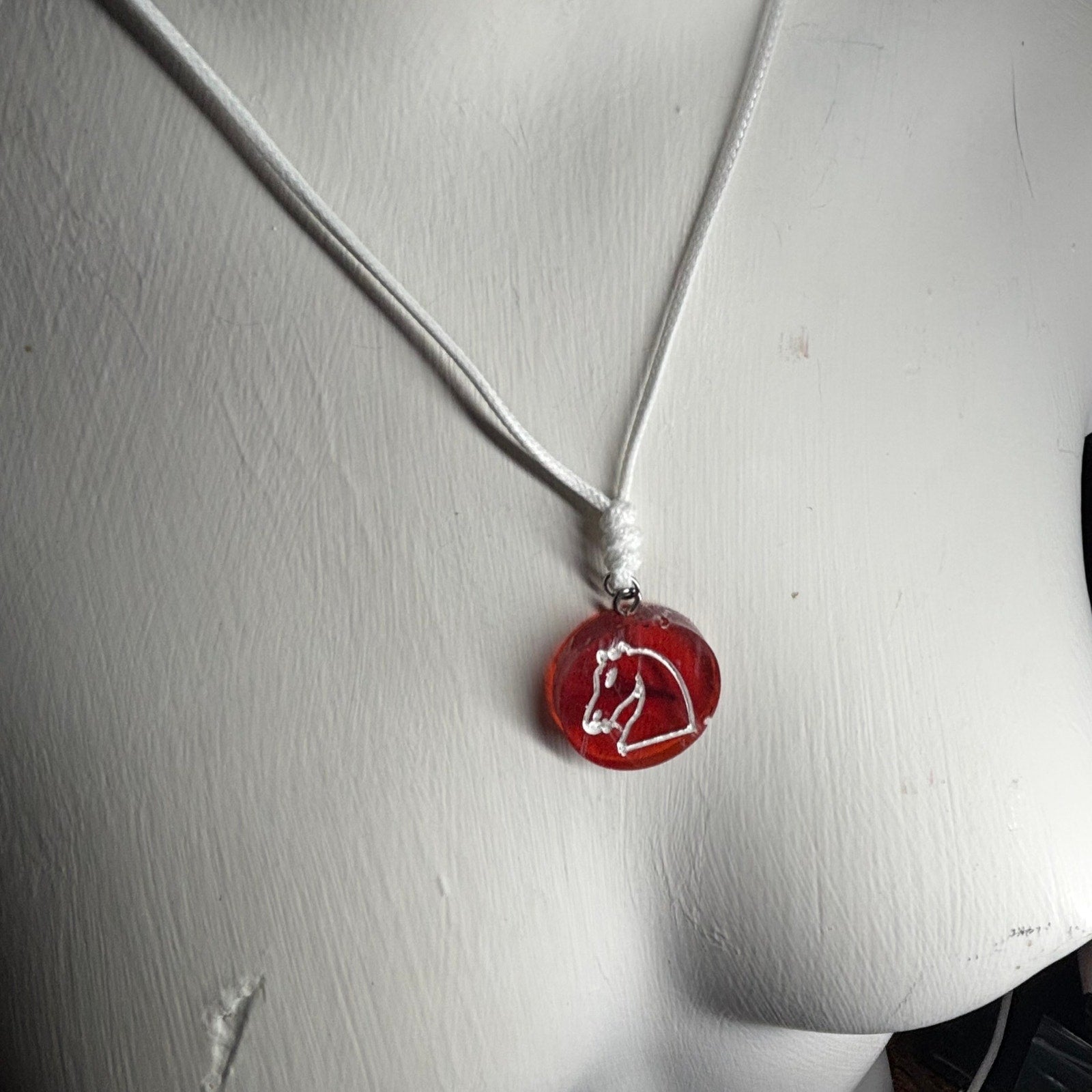 Cherry Red Knight - Handmade Resin Chess Necklace