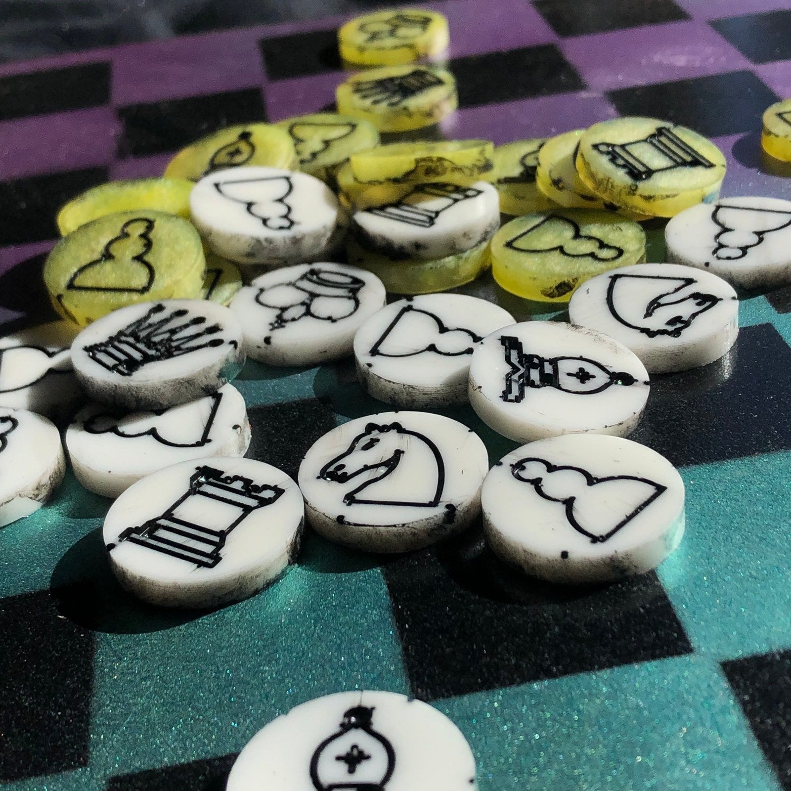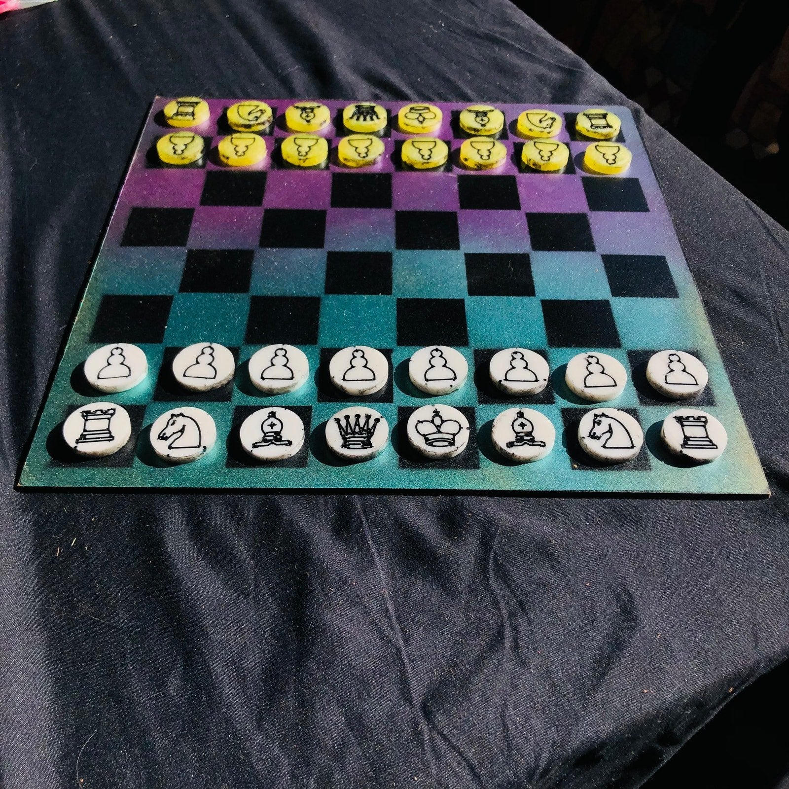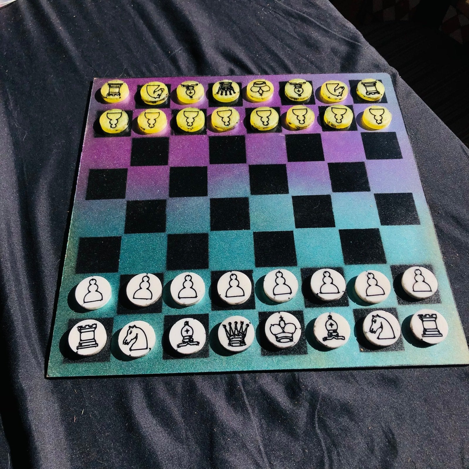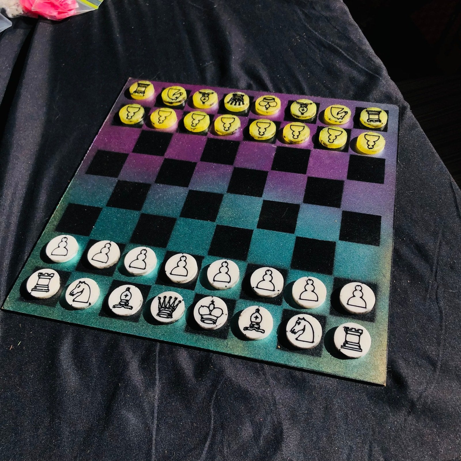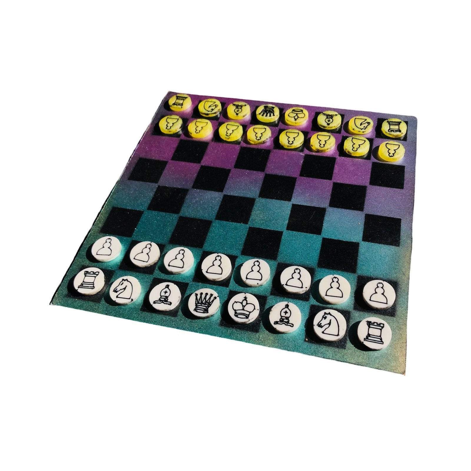 Introducing our exclusive Handcrafted Hardboard Chess Set, meticulously designed with precision and care. Measuring 12 inches by 12 inches, this chess set features a beautifully painted hardwood board that doubles as a work of art. Each set is a unique, one-of-a-kind creation, crafted by hand to ensure that no two sets are alike. Elevate your gaming experience with this exceptional chess set that combines vibrant design with the touch of artisan craftsmanship.