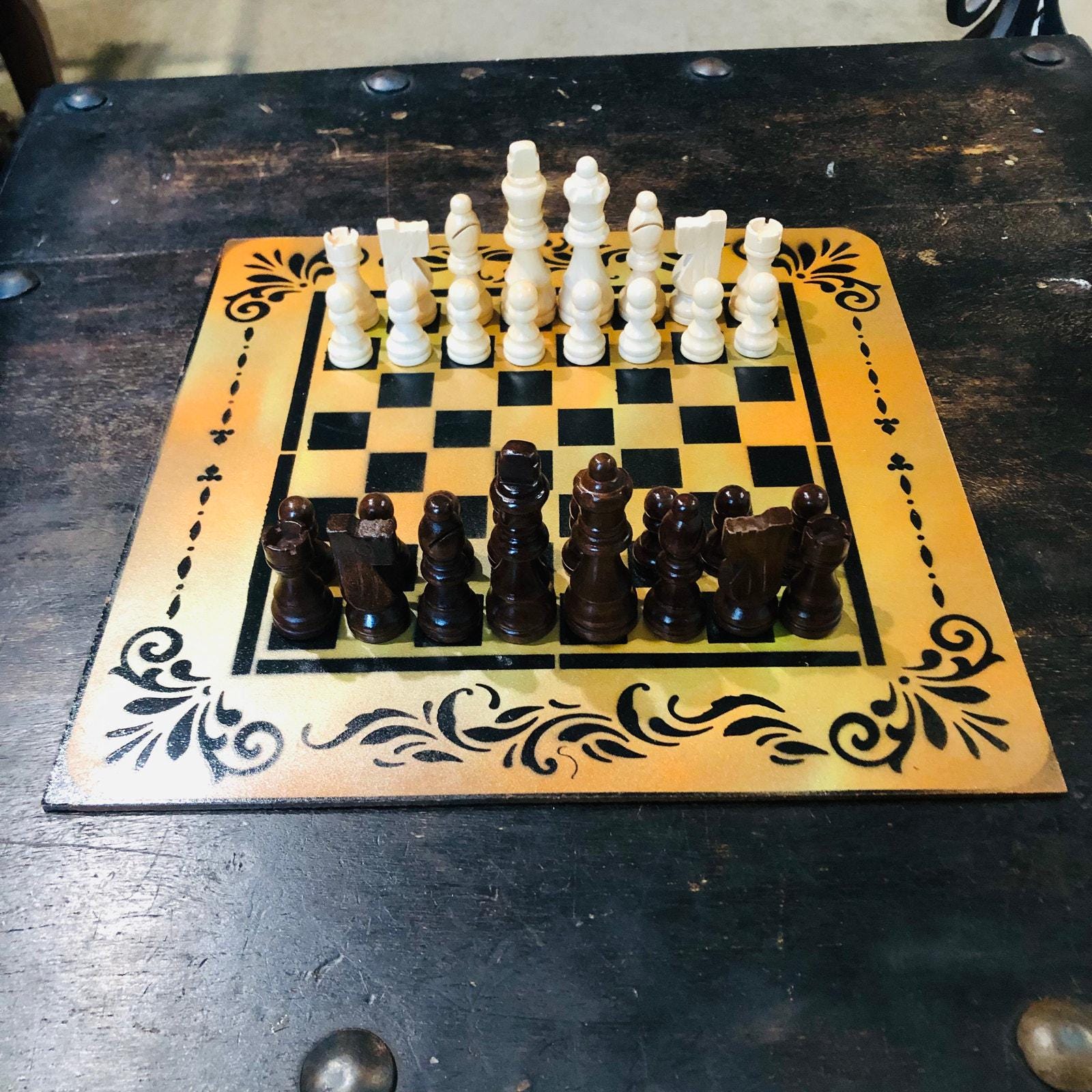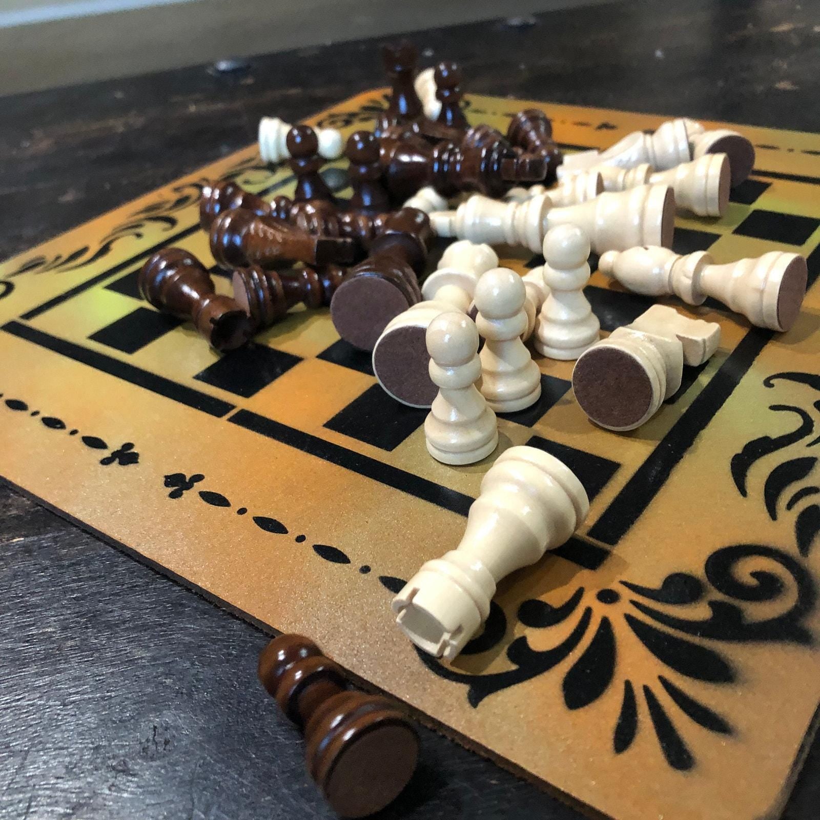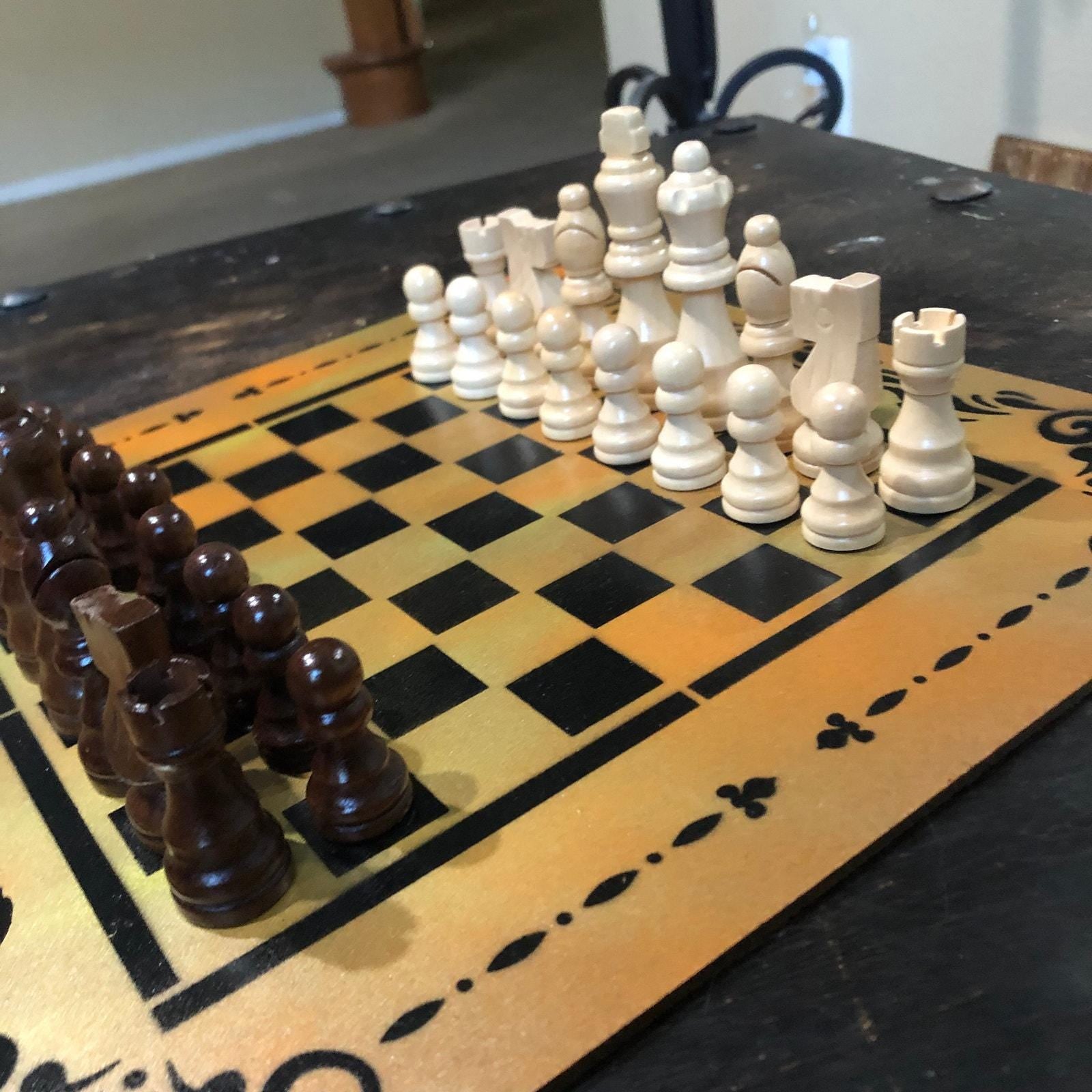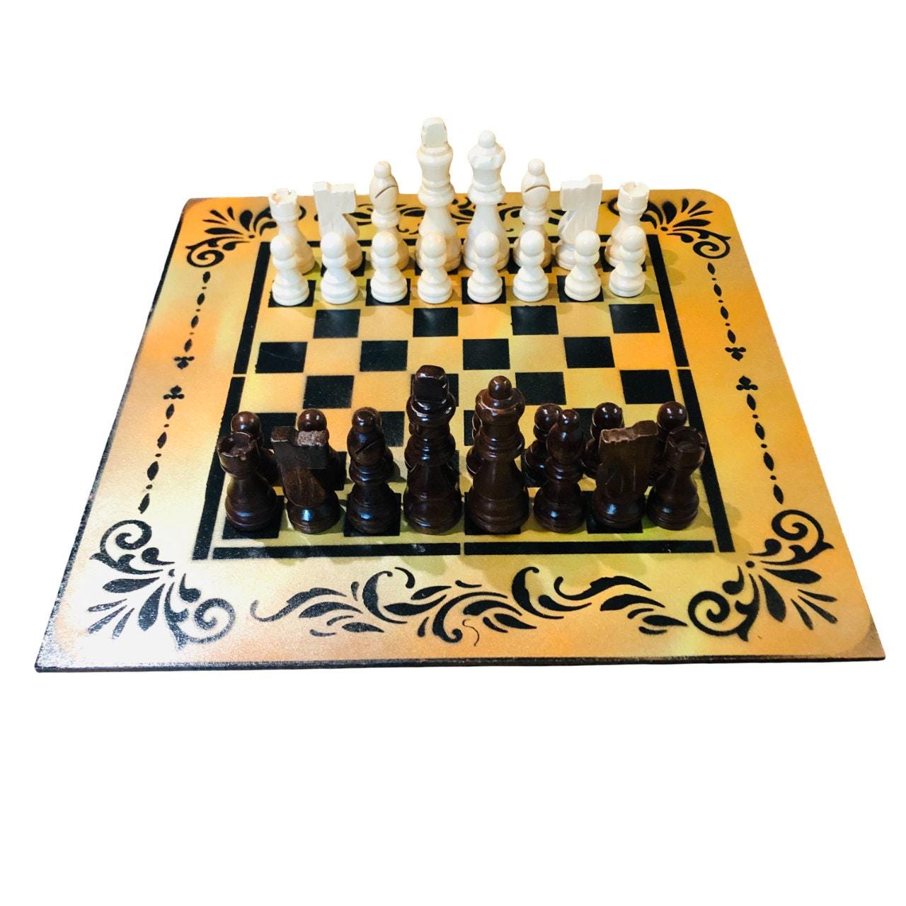 Introducing our exclusive Handcrafted Hardboard Chess Set, meticulously designed with precision and care. Measuring 12 inches by 12 inches, this chess set features a beautifully painted hardwood board that doubles as a work of art. Each set is a unique, one-of-a-kind creation, crafted by hand to ensure that no two sets are alike. Elevate your gaming experience with this exceptional chess set that combines vibrant design with the touch of artisan craftsmanship.