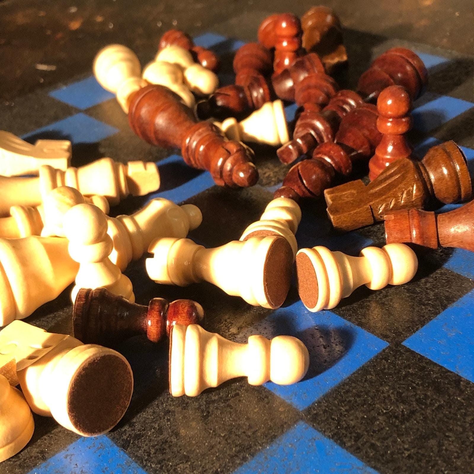 Introducing our exclusive Handcrafted Wooden Chess Set, meticulously designed with precision and care. Measuring 12 inches by 12 inches, this chess set features a beautifully painted Particle Board board that doubles as a work of art. Each set is a unique, one-of-a-kind creation, crafted by hand to ensure that no two sets are alike. Elevate your gaming experience with this exceptional chess set that combines vibrant design with the touch of artisan craftsmanship. This chess board comes with chess pieces.