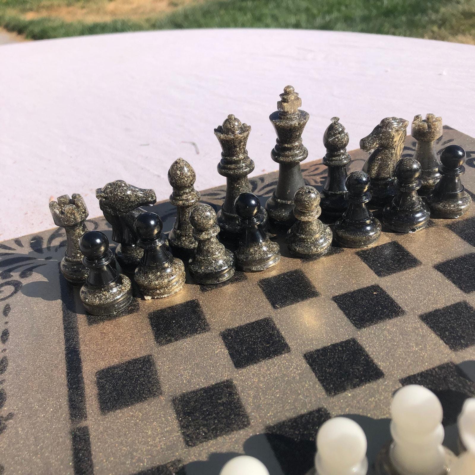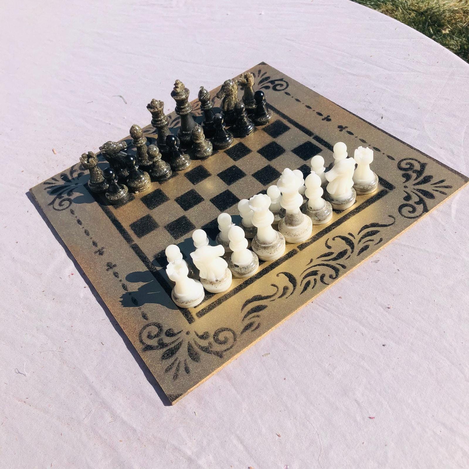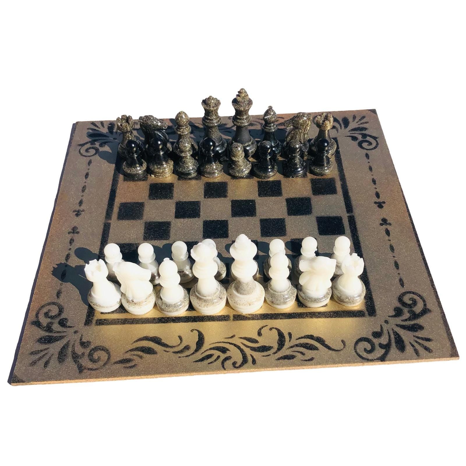 Introducing our exclusive Handcrafted Hardboard Chess Set, meticulously designed with precision and care. Measuring 12 inches by 12 inches, this chess set features a beautifully painted hardwood board that doubles as a work of art. Each set is a unique, one-of-a-kind creation, crafted by hand to ensure that no two sets are alike. Elevate your gaming experience with this exceptional chess set that combines vibrant design with the touch of artisan craftsmanship. This chess board comes with chess pieces.
