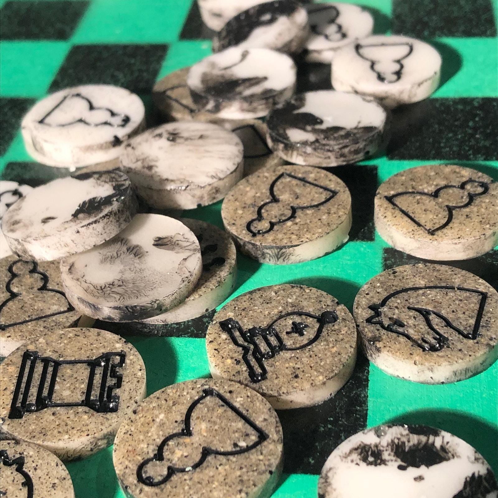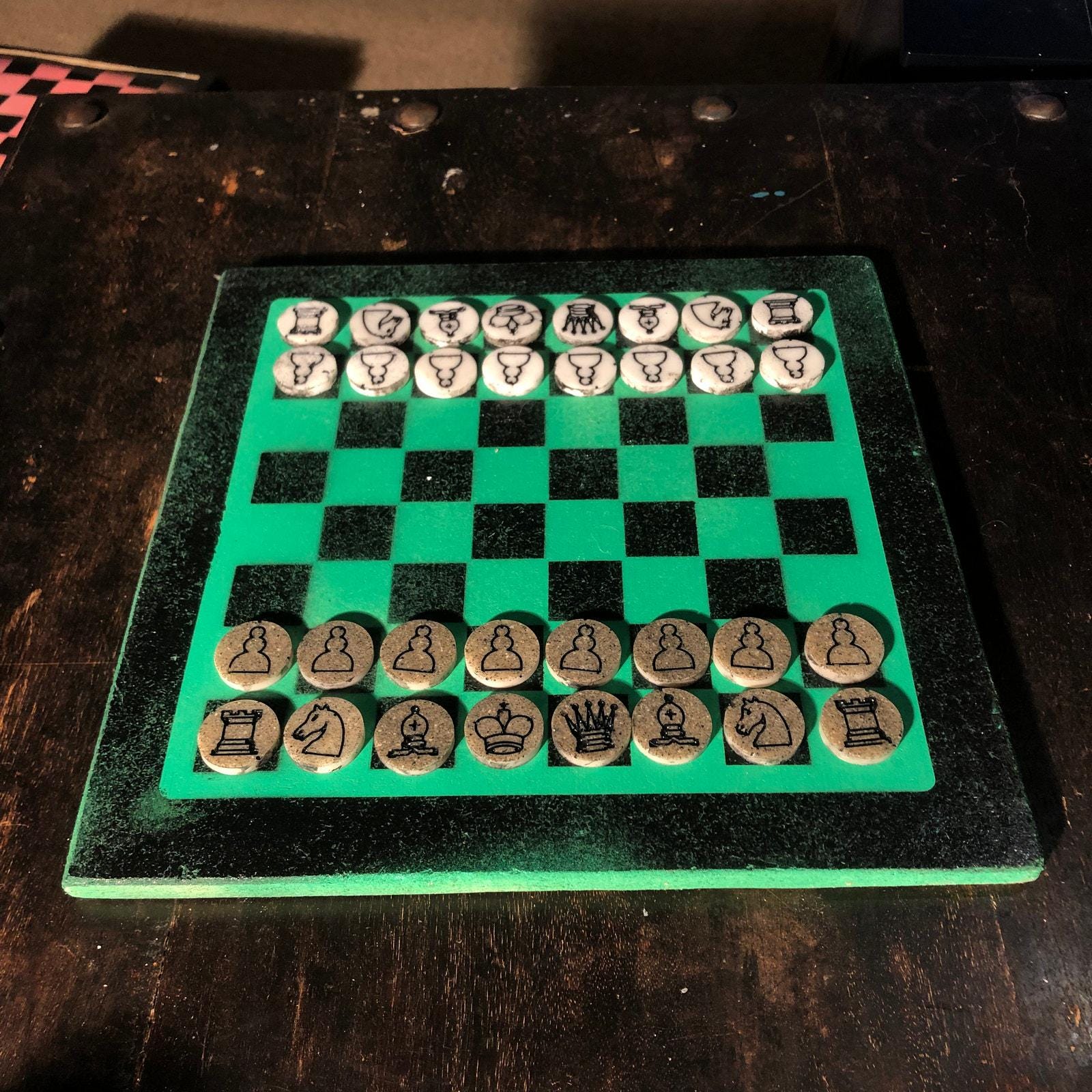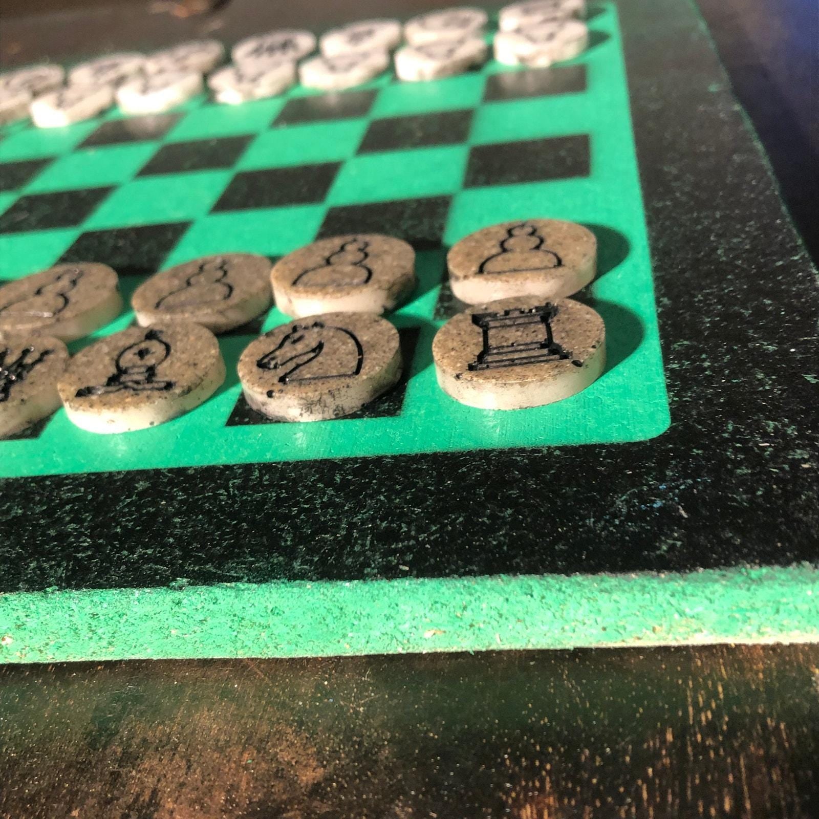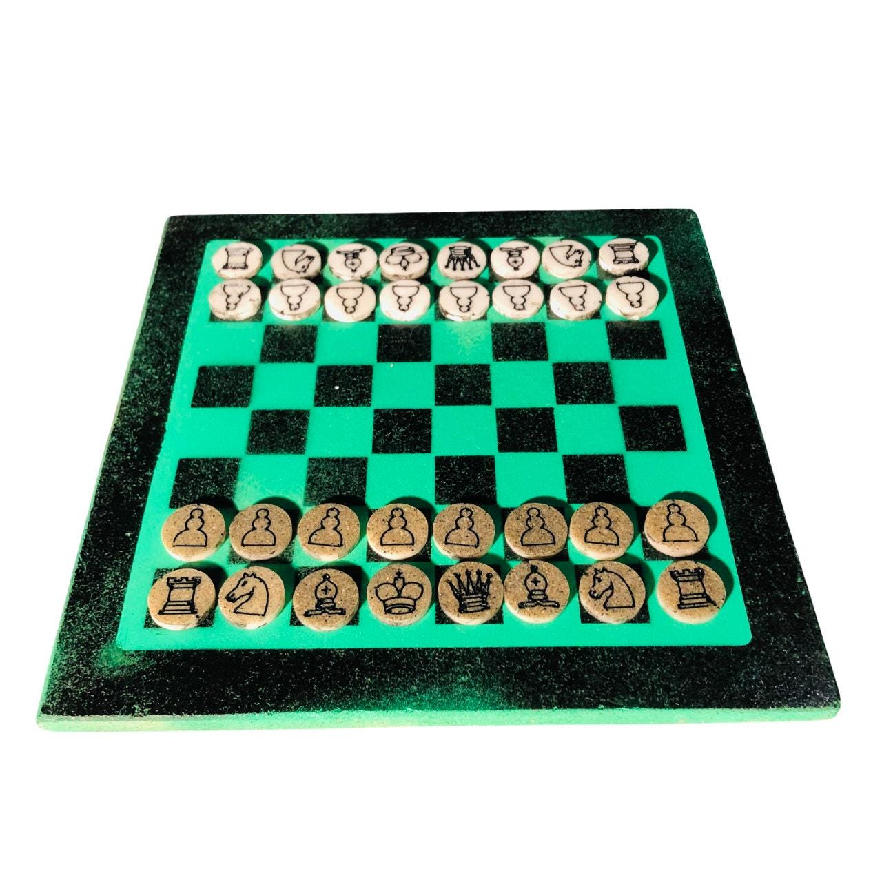 Introducing our exclusive Handcrafted Wooden Chess Set, meticulously designed with precision and care. Measuring 12 inches by 12 inches, this chess set features a beautifully painted Particle Board board that doubles as a work of art. Each set is a unique, one-of-a-kind creation, crafted by hand to ensure that no two sets are alike. Elevate your gaming experience with this exceptional chess set that combines vibrant design with the touch of artisan craftsmanship. This chess board comes with chess pieces.