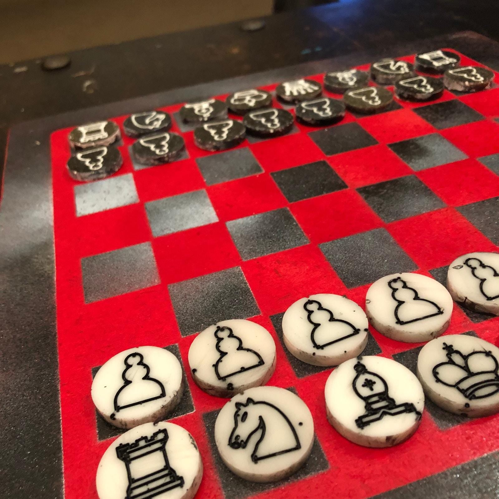 Chess Set - Black & Red Chrome (Resin Pieces)