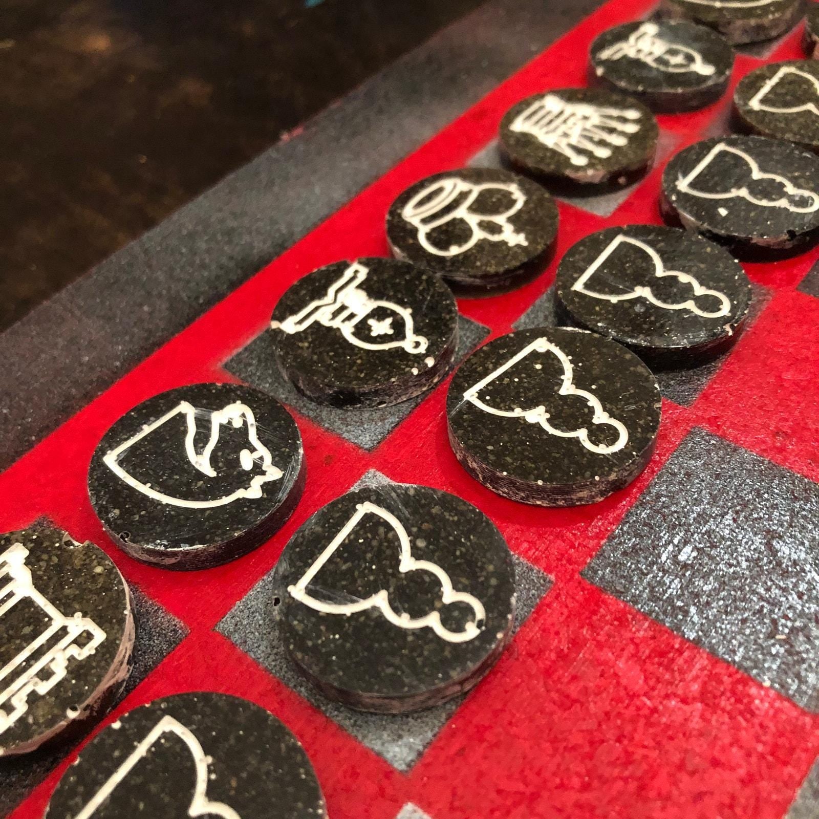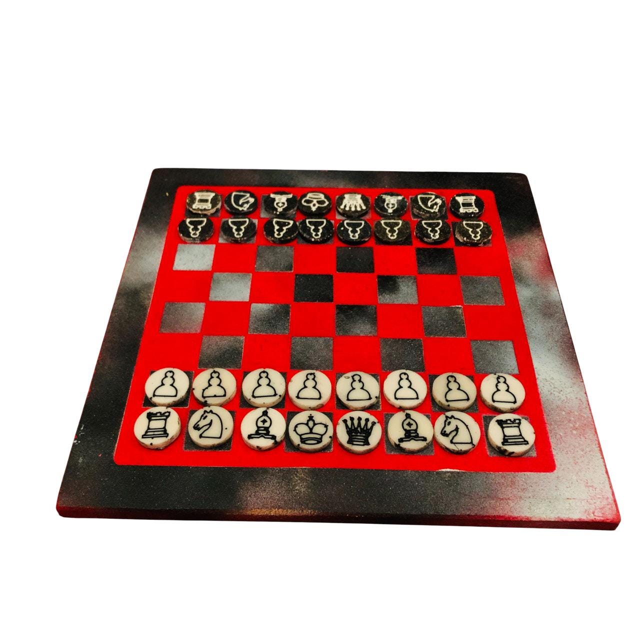Introducing our exclusive Handcrafted Wooden Chess Set, meticulously designed with precision and care. Measuring 12 inches by 12 inches, this chess set features a beautifully painted Particle Board board that doubles as a work of art. Each set is a unique, one-of-a-kind creation, crafted by hand to ensure that no two sets are alike. Elevate your gaming experience with this exceptional chess set that combines vibrant design with the touch of artisan craftsmanship. This chess board comes with chess pieces.