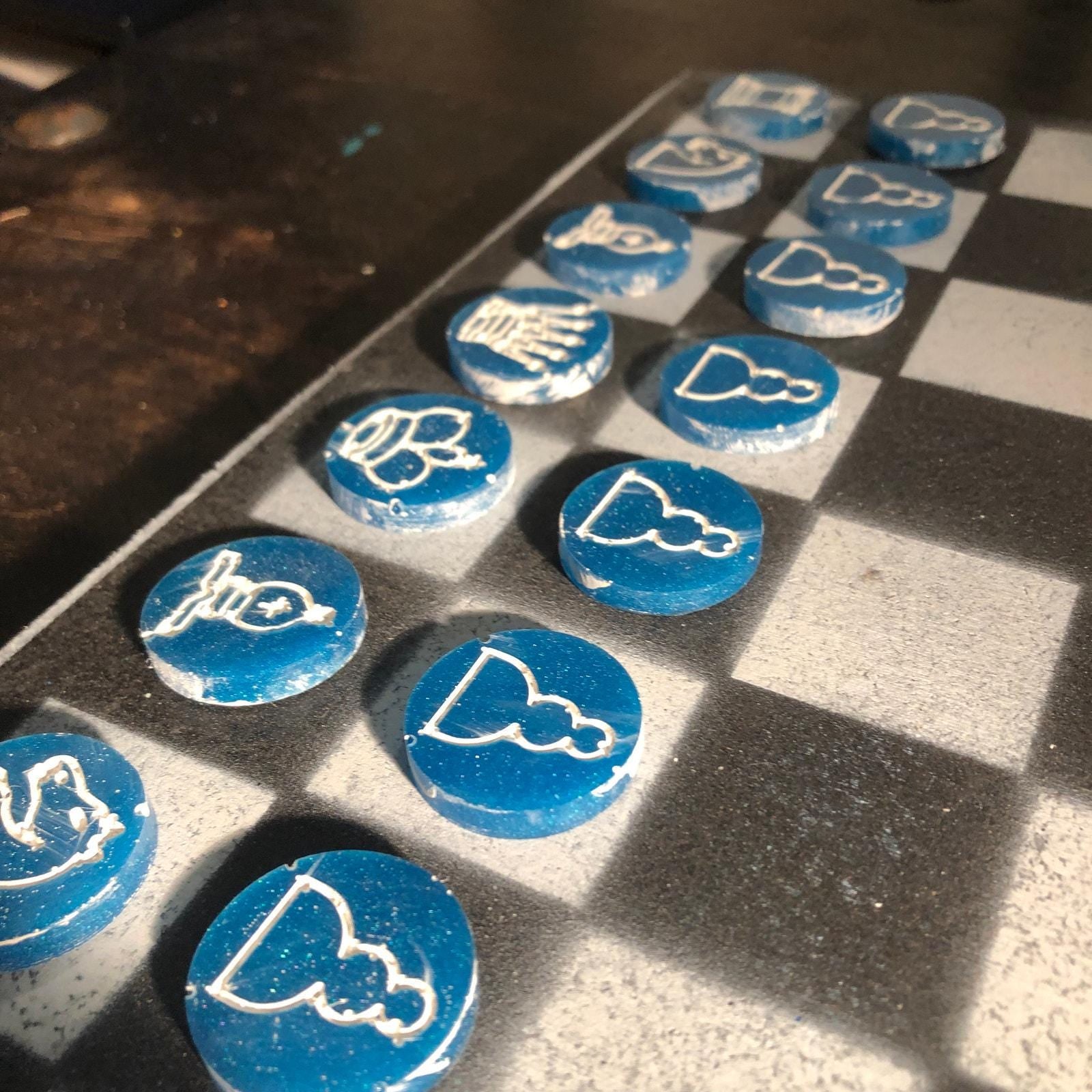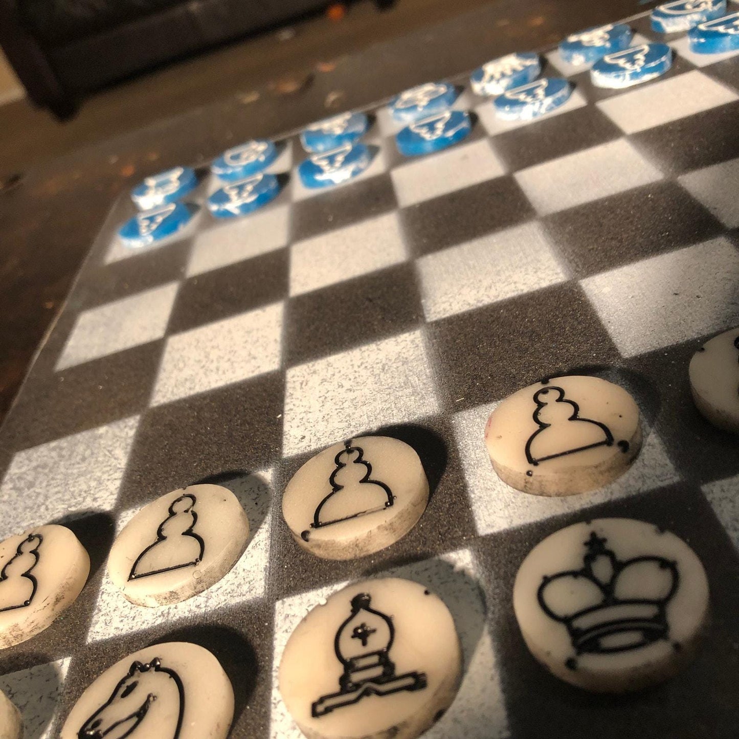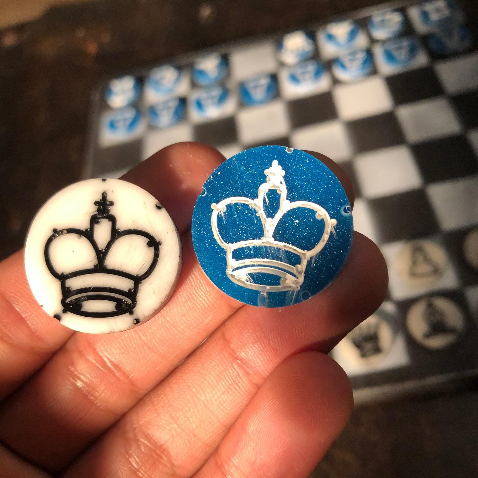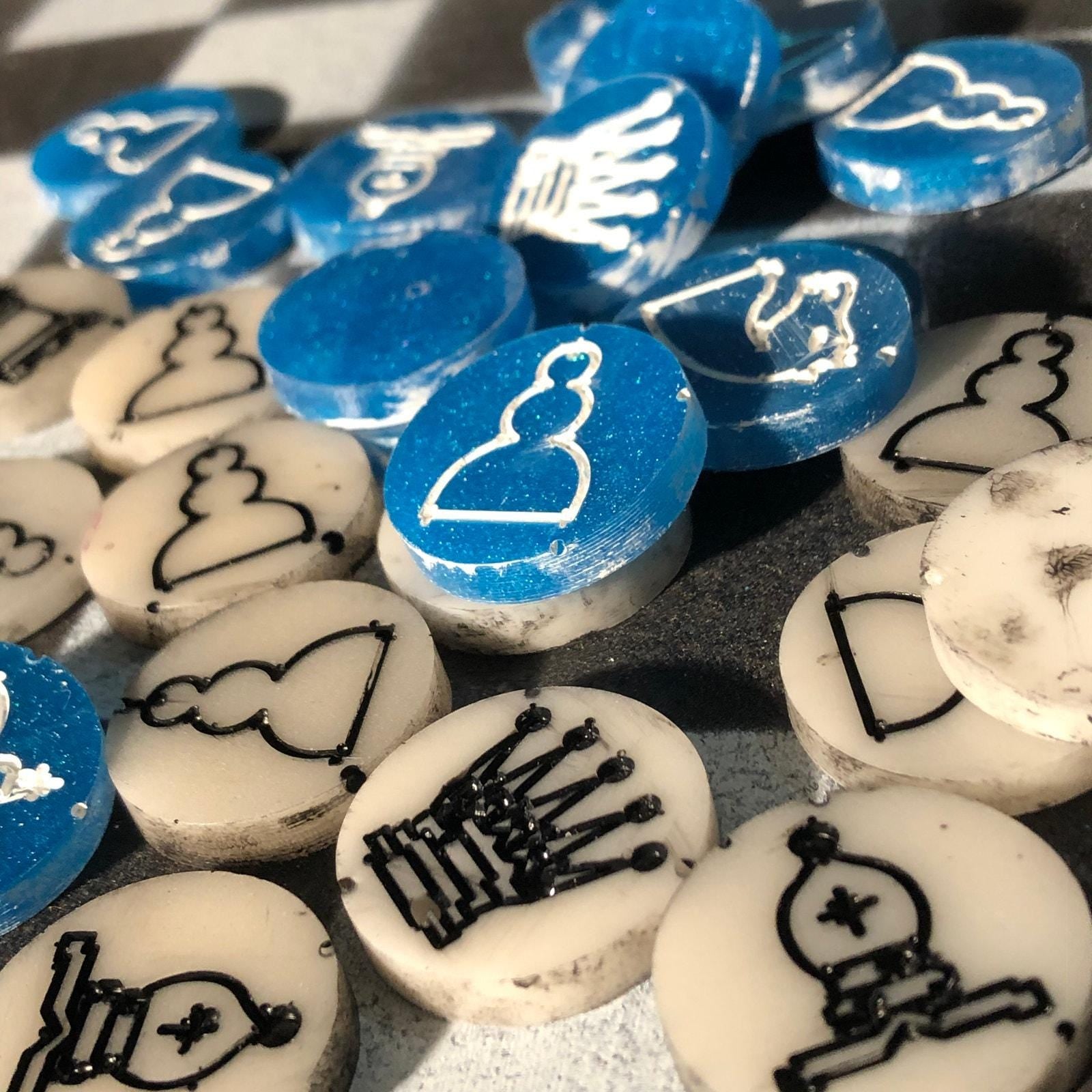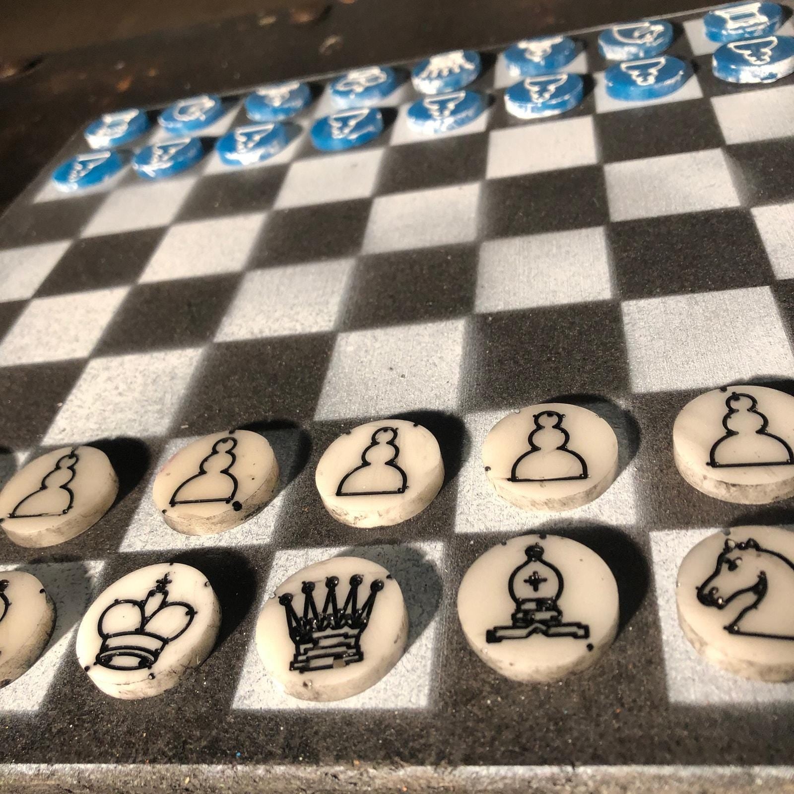 Chess Set - Black White & Blue (Resin Pieces)