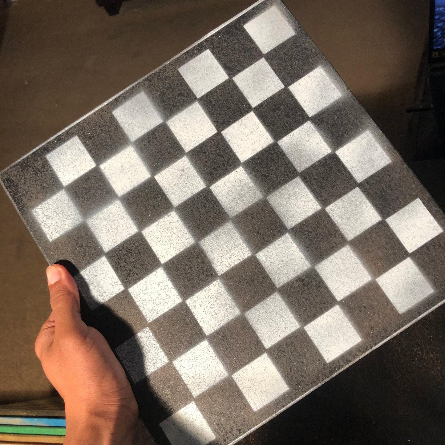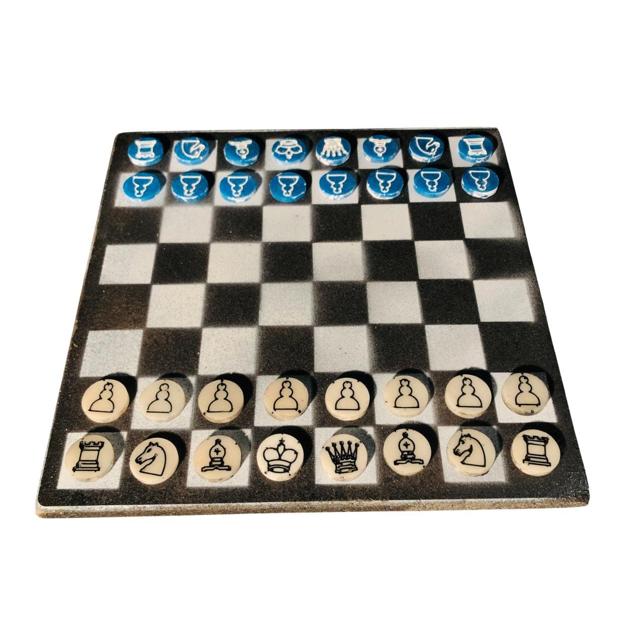 Introducing our exclusive Handcrafted Wooden Chess Set, meticulously designed with precision and care. Measuring 12 inches by 12 inches, this chess set features a beautifully painted Particle Board board that doubles as a work of art. Each set is a unique, one-of-a-kind creation, crafted by hand to ensure that no two sets are alike. Elevate your gaming experience with this exceptional chess set that combines vibrant design with the touch of artisan craftsmanship. This chess board comes with chess pieces.