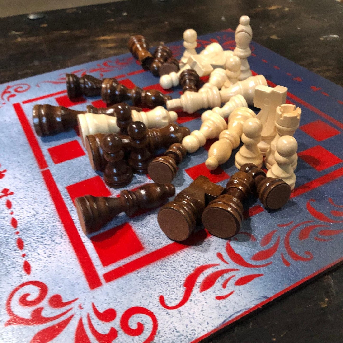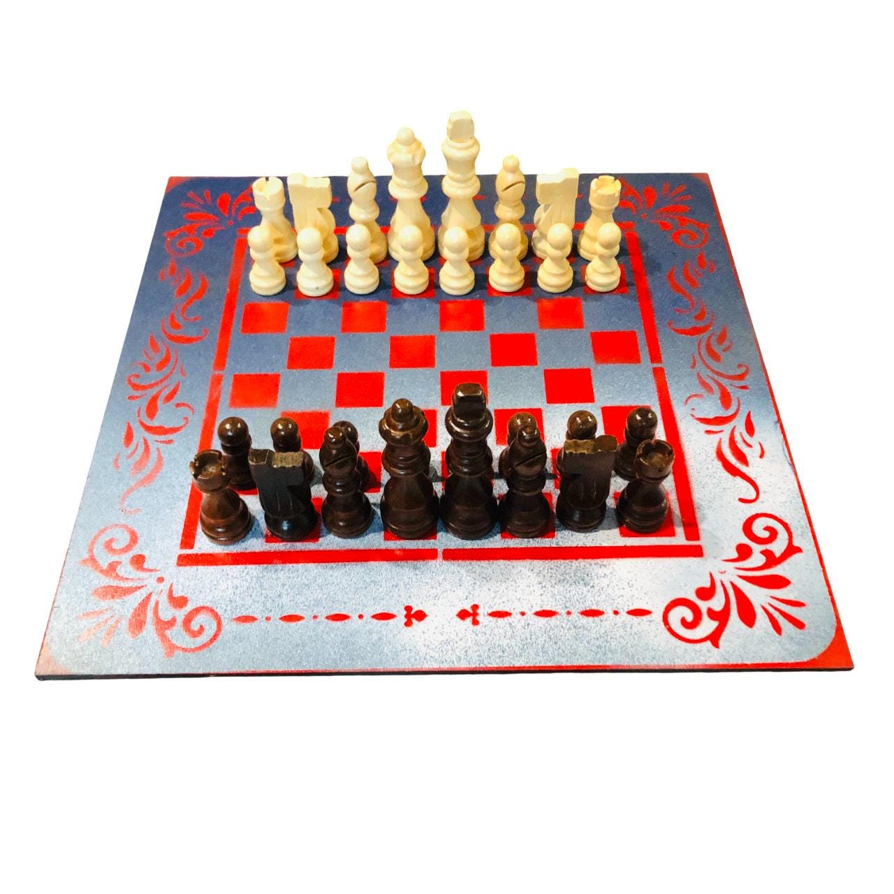 Introducing our exclusive Handcrafted Hardboard Chess Set, meticulously designed with precision and care. Measuring 12 inches by 12 inches, this chess set features a beautifully painted hardwood board that doubles as a work of art. Each set is a unique, one-of-a-kind creation, crafted by hand to ensure that no two sets are alike. Elevate your gaming experience with this exceptional chess set that combines vibrant design with the touch of artisan craftsmanship.
