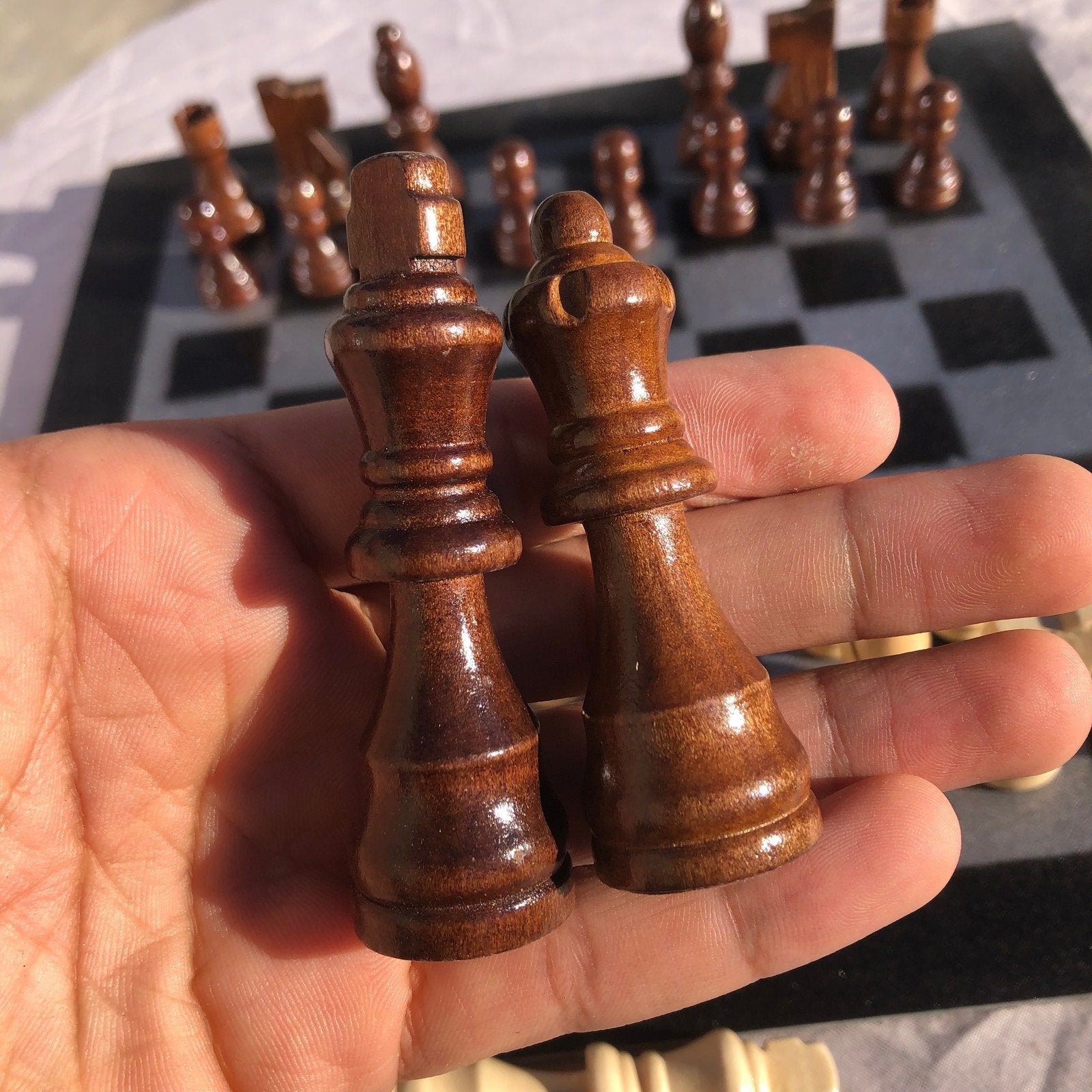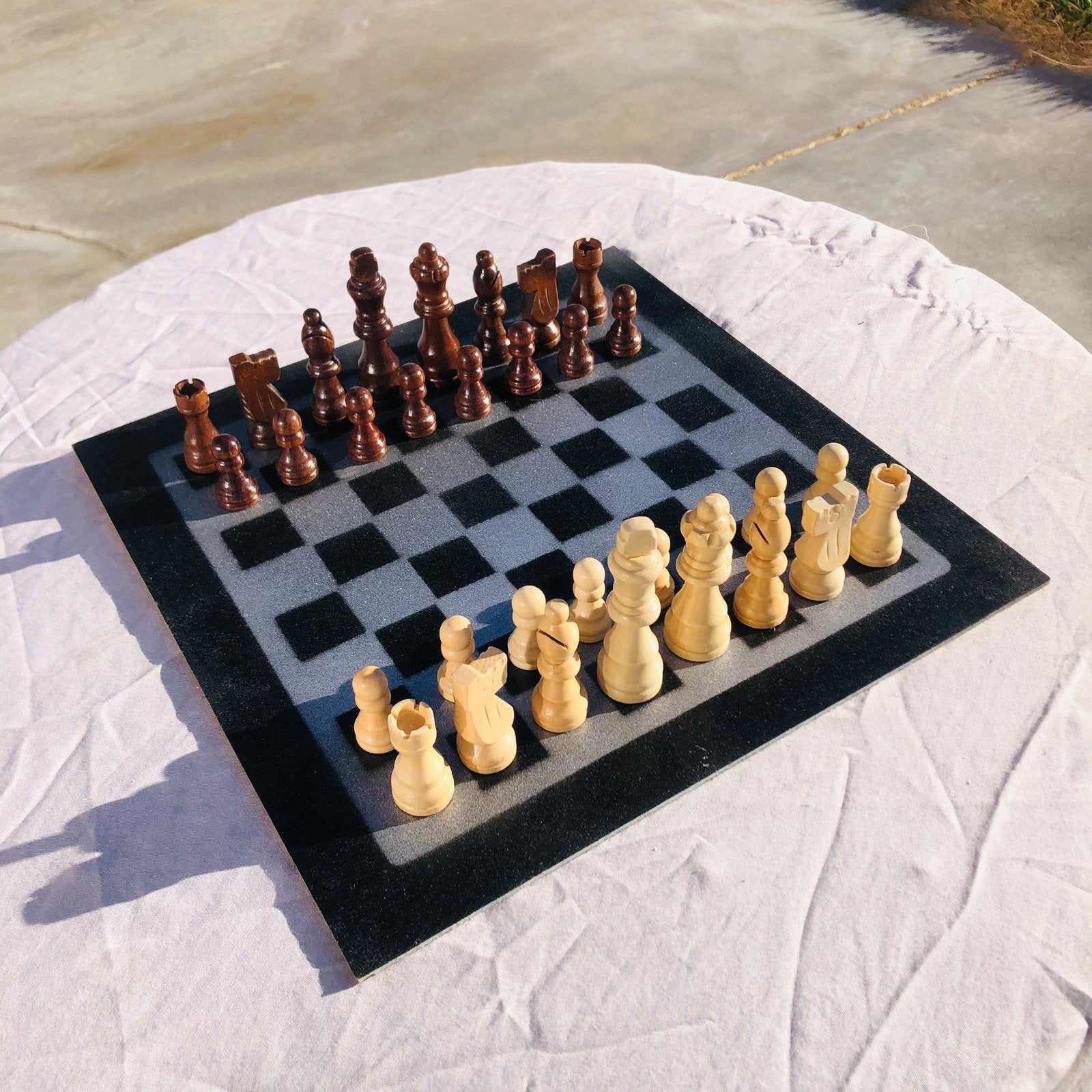 Introducing our exclusive Handcrafted Hardboard Chess Set, meticulously designed with precision and care. Measuring 12 inches by 12 inches, this chess set features a beautifully painted hardwood board that doubles as a work of art. Each set is a unique, one-of-a-kind creation, crafted by hand to ensure that no two sets are alike. Elevate your gaming experience with this exceptional chess set that combines vibrant design with the touch of artisan craftsmanship.