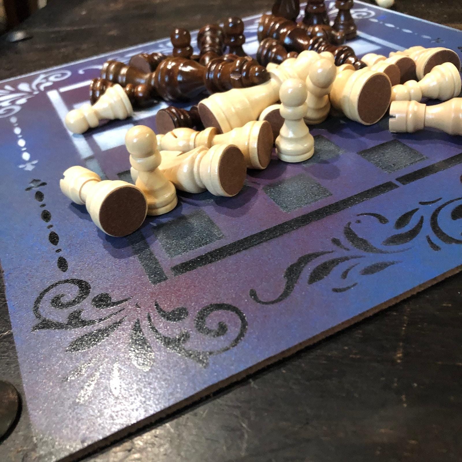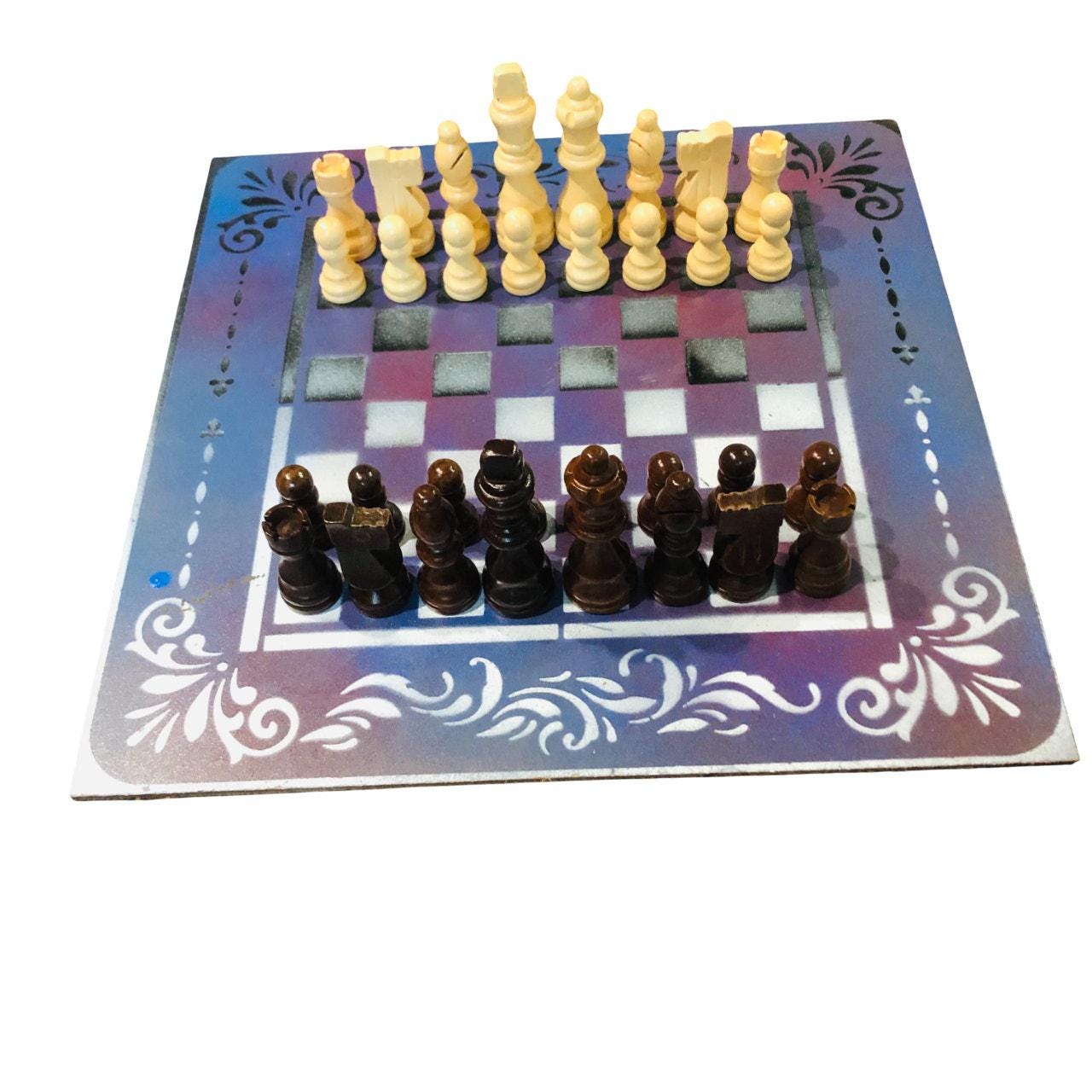 Introducing our exclusive Handcrafted Hardboard Chess Set, meticulously designed with precision and care. Measuring 12 inches by 12 inches, this chess set features a beautifully painted hardwood board that doubles as a work of art. Each set is a unique, one-of-a-kind creation, crafted by hand to ensure that no two sets are alike. Elevate your gaming experience with this exceptional chess set that combines vibrant design with the touch of artisan craftsmanship.
