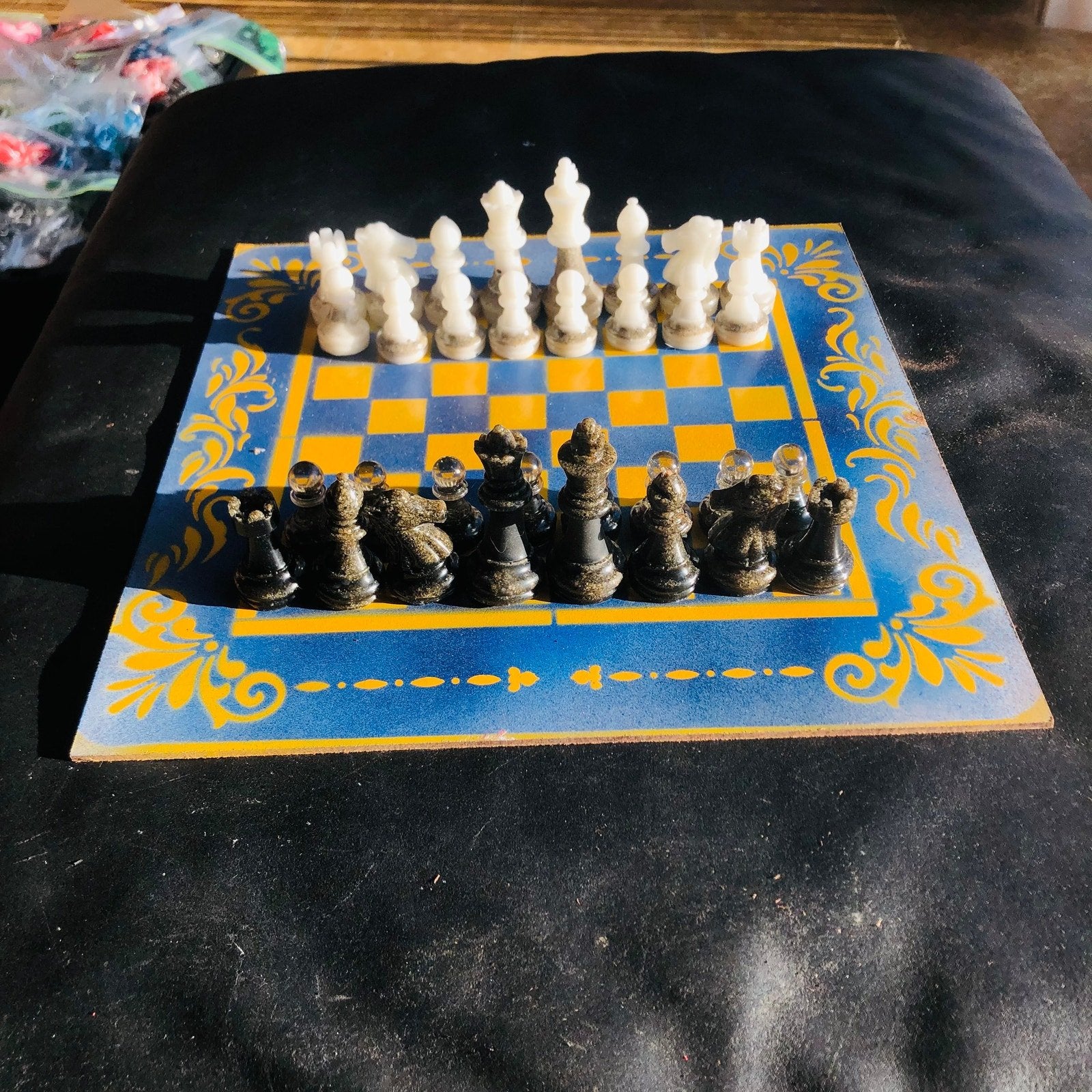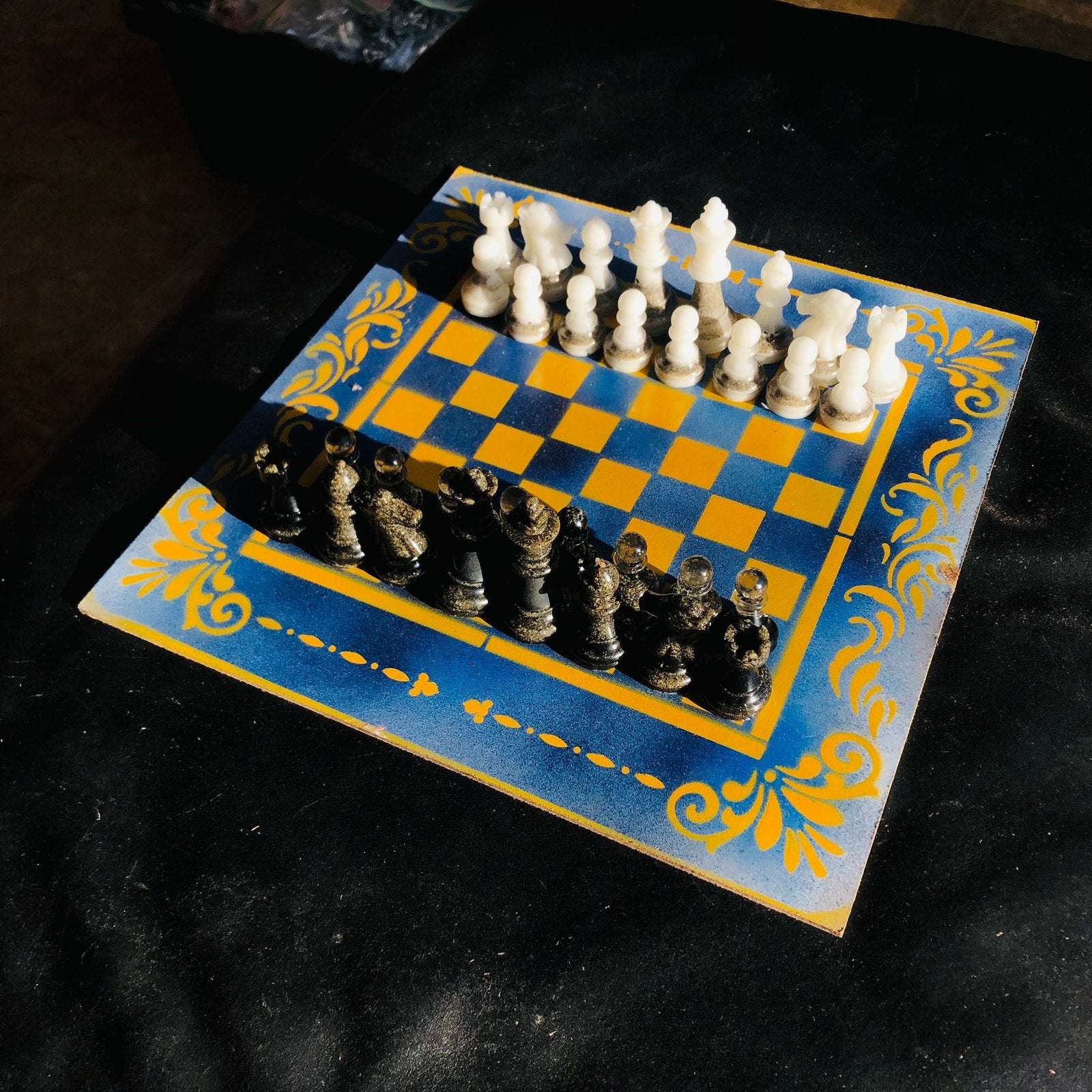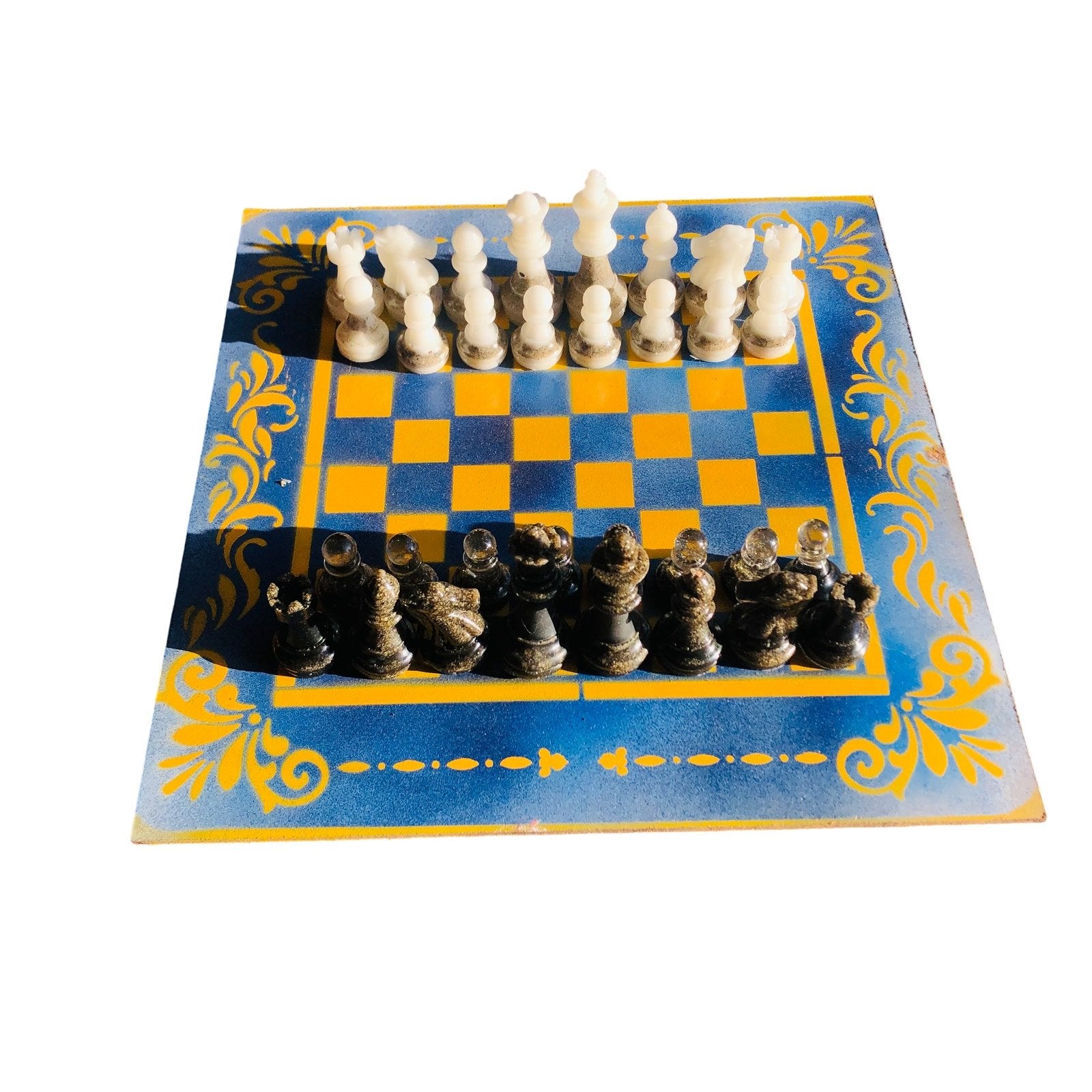 Introducing our exclusive Handcrafted Hardboard Chess Set, meticulously designed with precision and care. Measuring 12 inches by 12 inches, this chess set features a beautifully painted hardwood board that doubles as a work of art. Each set is a unique, one-of-a-kind creation, crafted by hand to ensure that no two sets are alike. Elevate your gaming experience with this exceptional chess set that combines vibrant design with the touch of artisan craftsmanship.