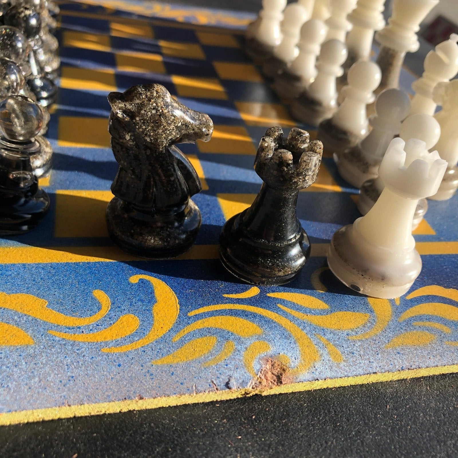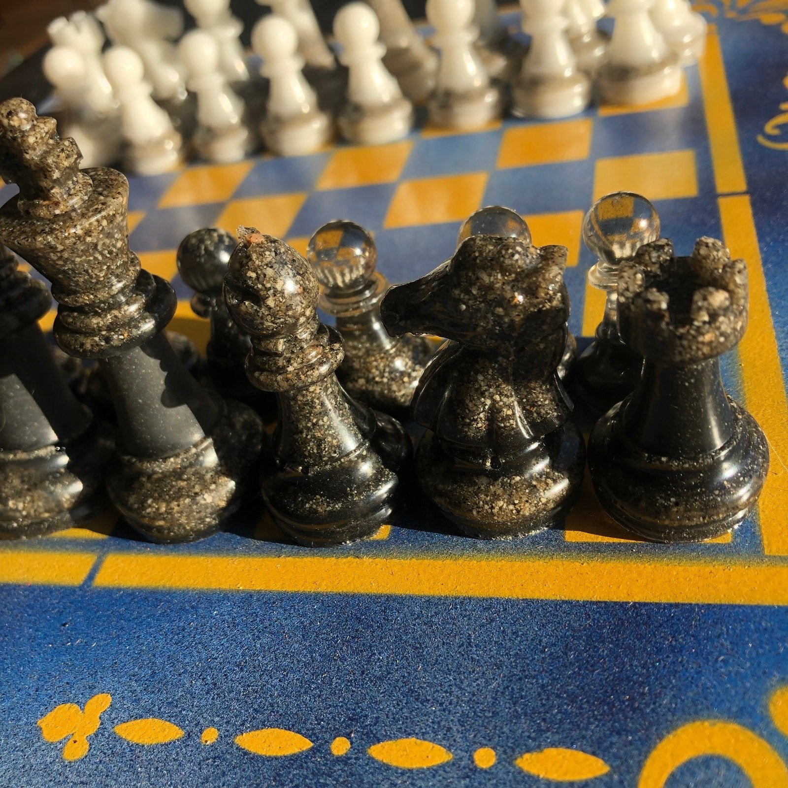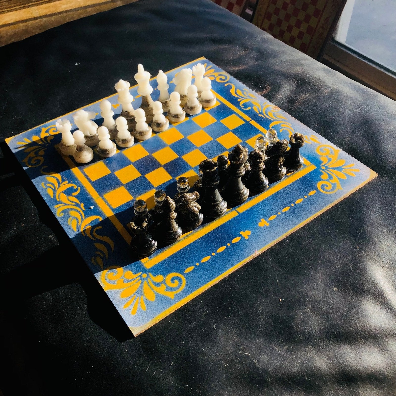 Introducing our exclusive Handcrafted Hardboard Chess Set, meticulously designed with precision and care. Measuring 12 inches by 12 inches, this chess set features a beautifully painted hardwood board that doubles as a work of art. Each set is a unique, one-of-a-kind creation, crafted by hand to ensure that no two sets are alike. Elevate your gaming experience with this exceptional chess set that combines vibrant design with the touch of artisan craftsmanship.