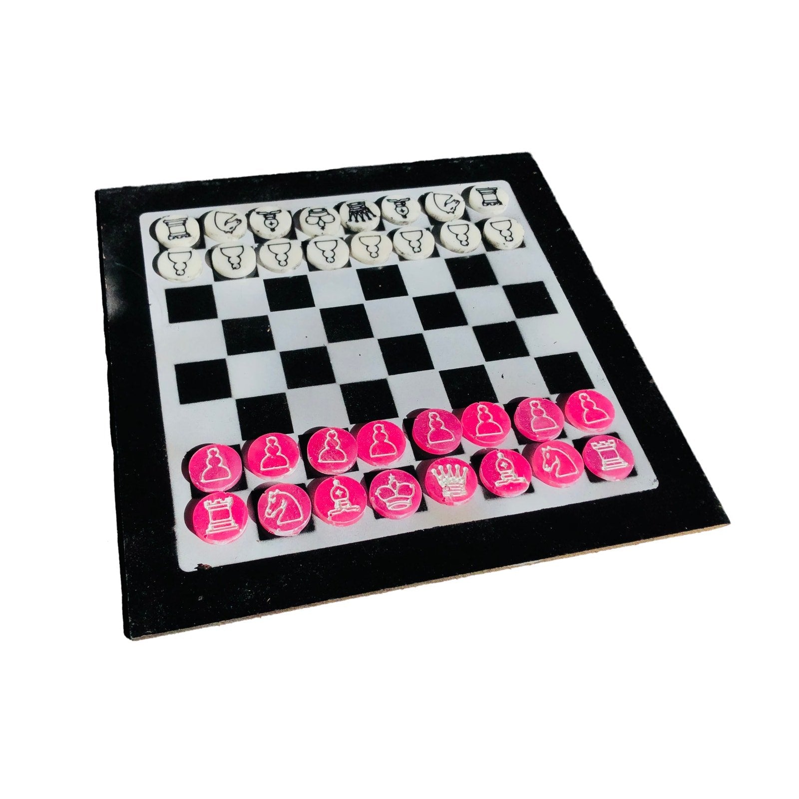 Introducing our exclusive Handcrafted Hardboard Chess Set, meticulously designed with precision and care. Measuring 12 inches by 12 inches, this chess set features a beautifully painted hardwood board that doubles as a work of art. Each set is a unique, one-of-a-kind creation, crafted by hand to ensure that no two sets are alike. Elevate your gaming experience with this exceptional chess set that combines vibrant design with the touch of artisan craftsmanship.