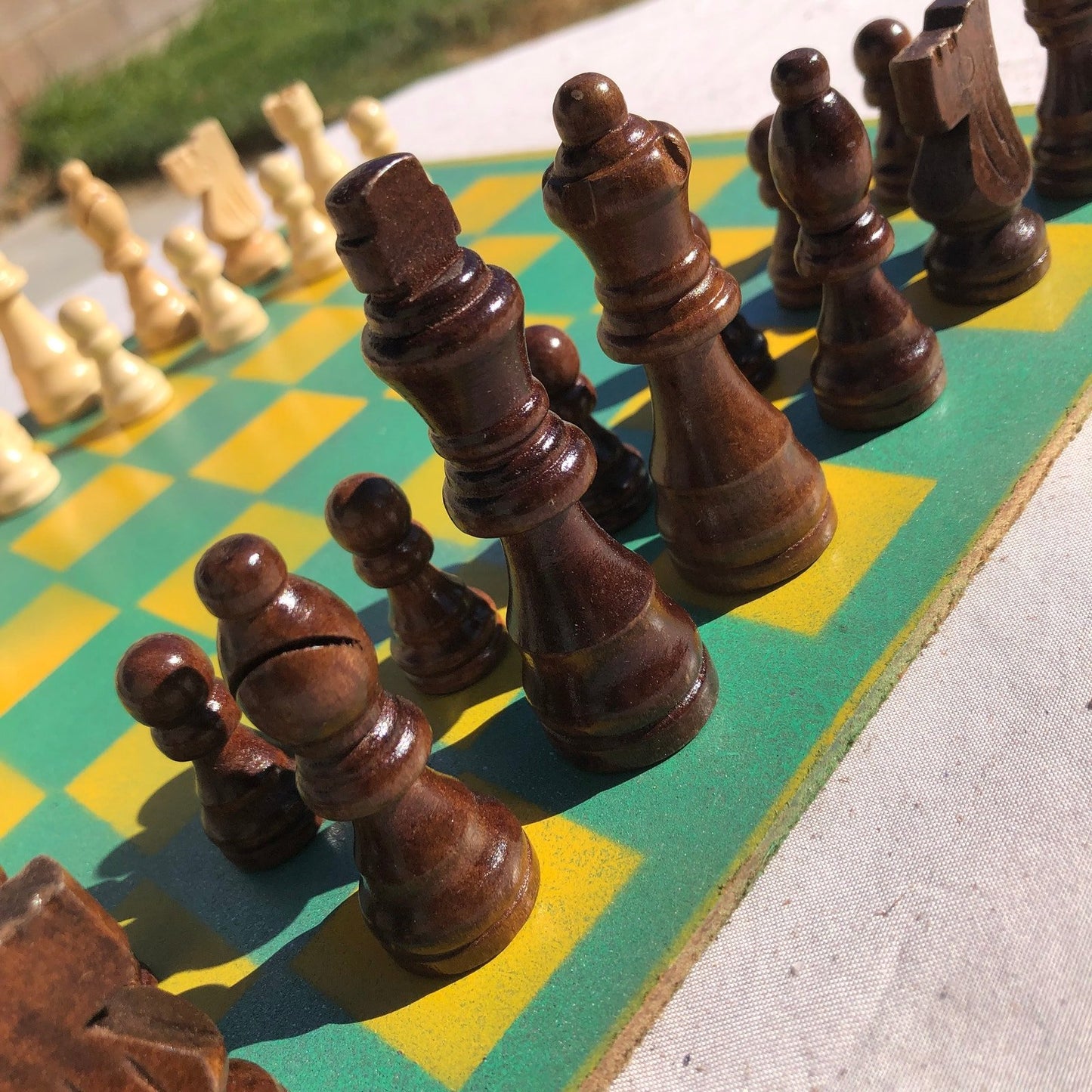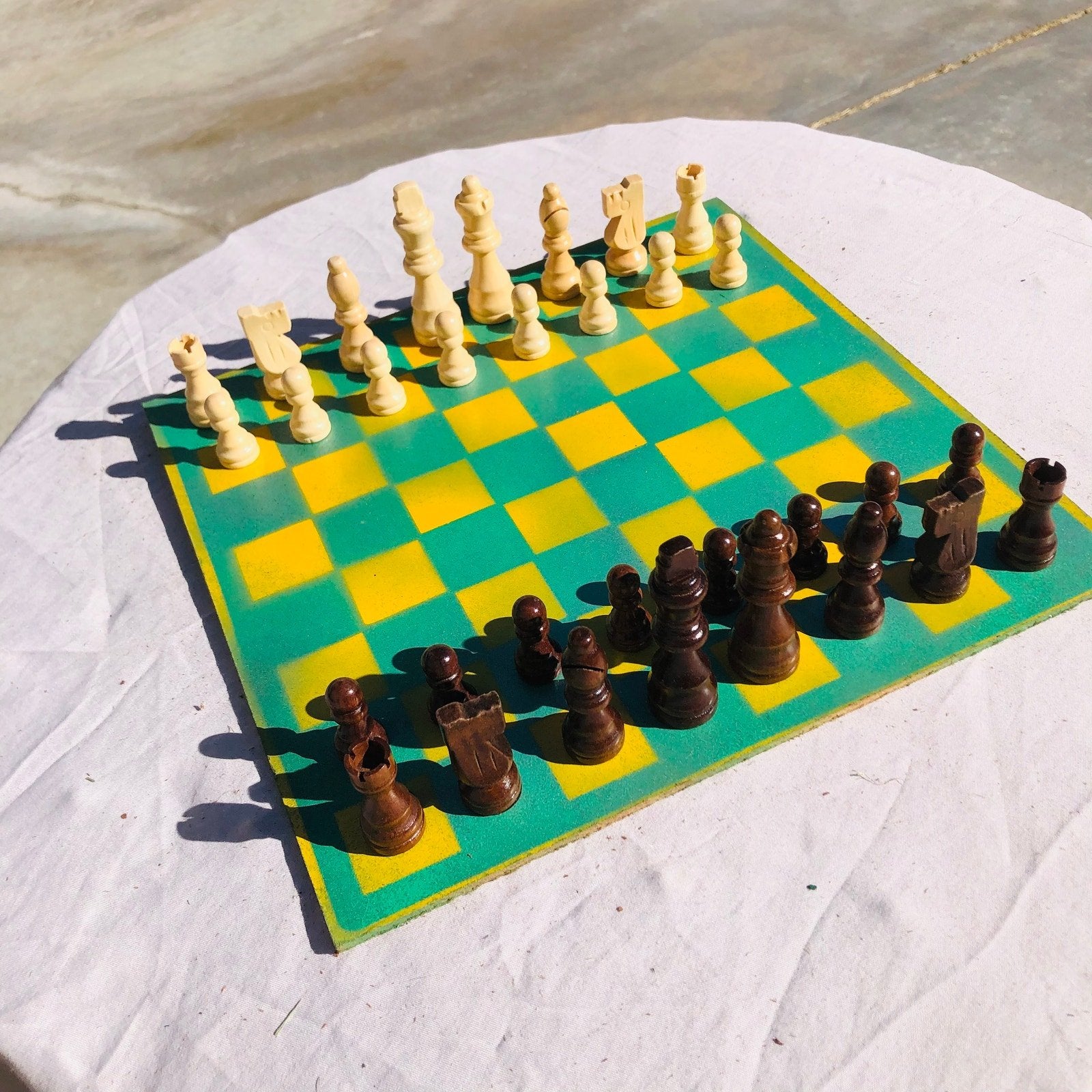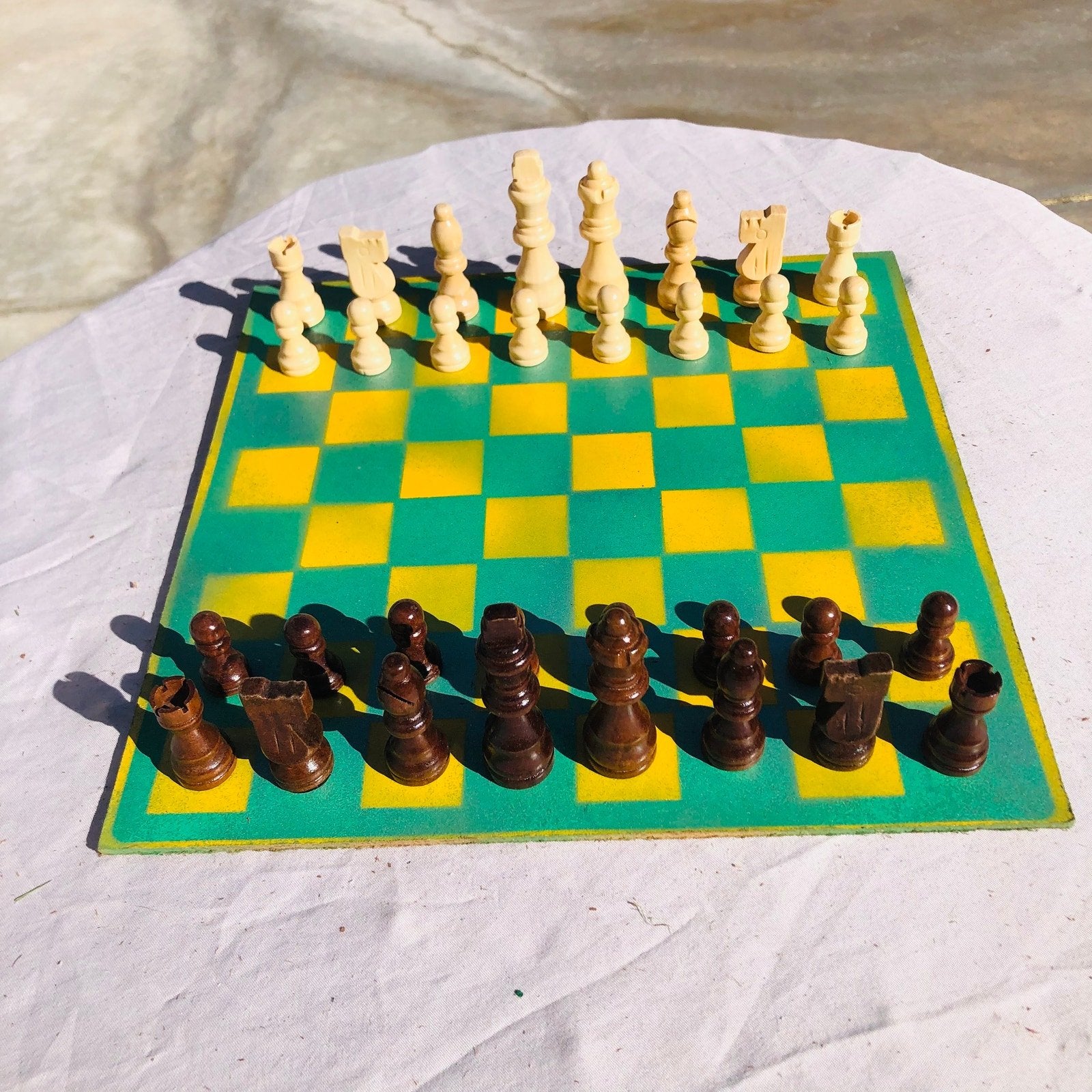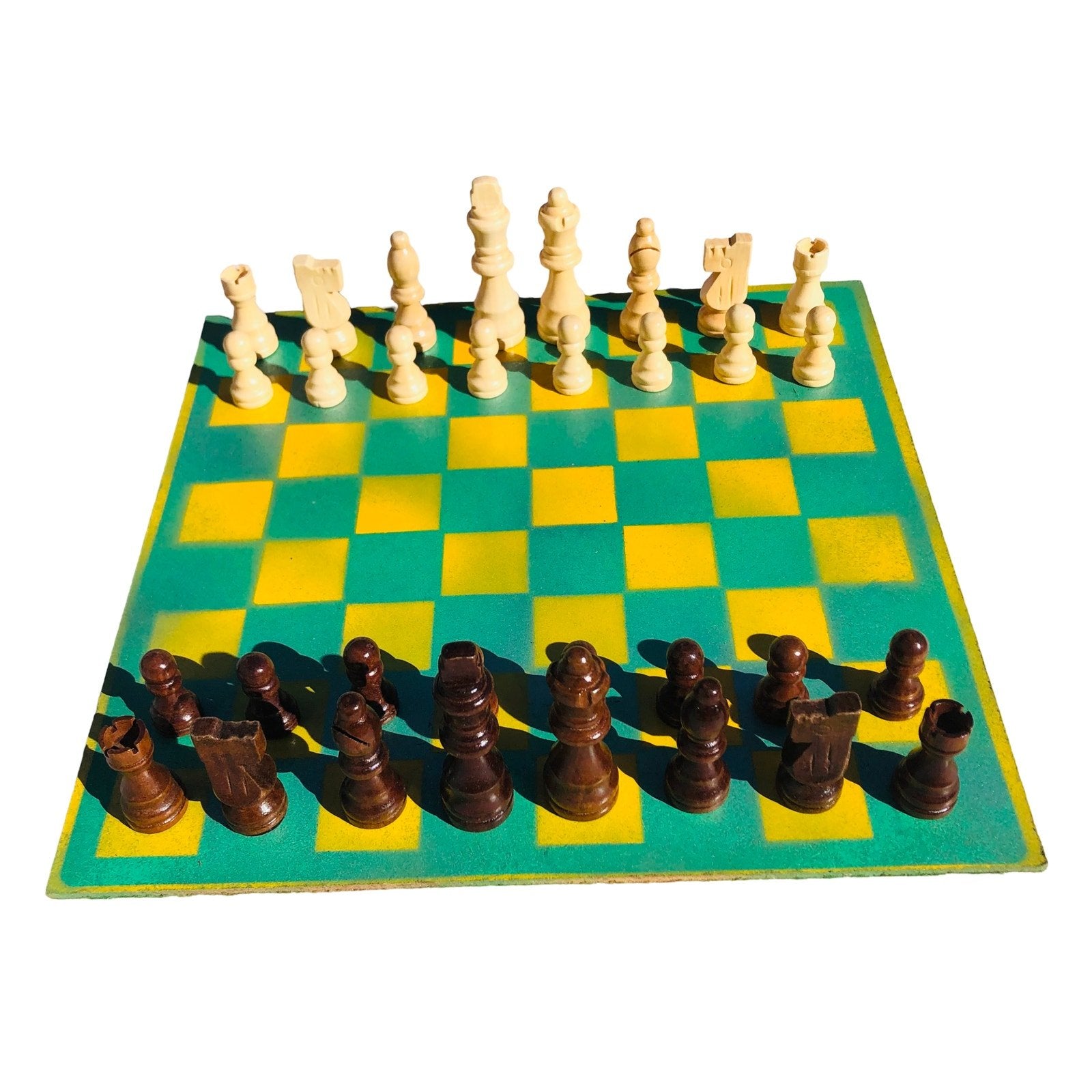 Introducing our exclusive Handcrafted Hardboard Chess Set, meticulously designed with precision and care. Measuring 12 inches by 12 inches, this chess set features a beautifully painted hardwood board that doubles as a work of art. Each set is a unique, one-of-a-kind creation, crafted by hand to ensure that no two sets are alike. Elevate your gaming experience with this exceptional chess set that combines vibrant design with the touch of artisan craftsmanship.