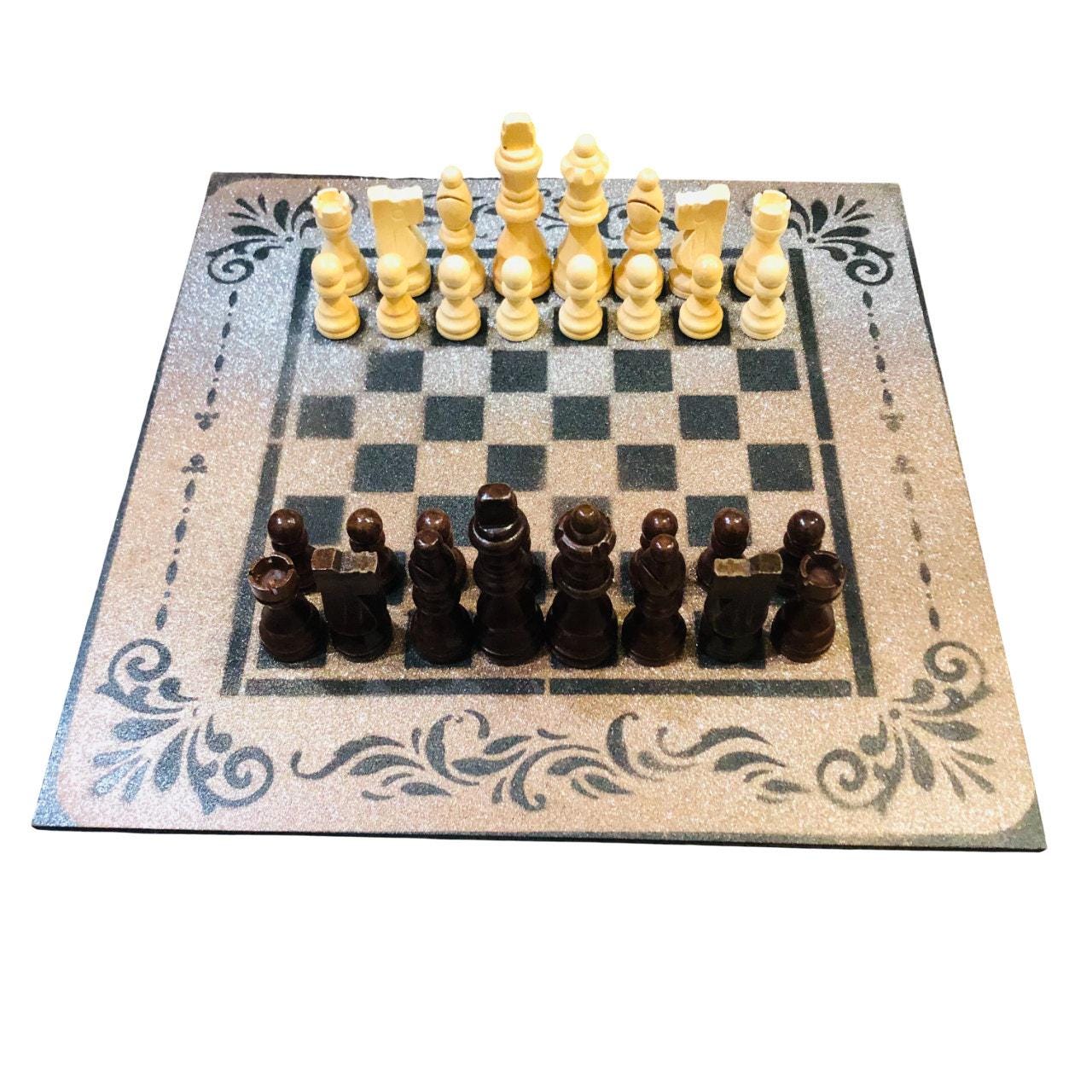 Introducing our exclusive Handcrafted Hardboard Chess Set, meticulously designed with precision and care. Measuring 12 inches by 12 inches, this chess set features a beautifully painted hardwood board that doubles as a work of art. Each set is a unique, one-of-a-kind creation, crafted by hand to ensure that no two sets are alike. Elevate your gaming experience with this exceptional chess set that combines vibrant design with the touch of artisan craftsmanship.