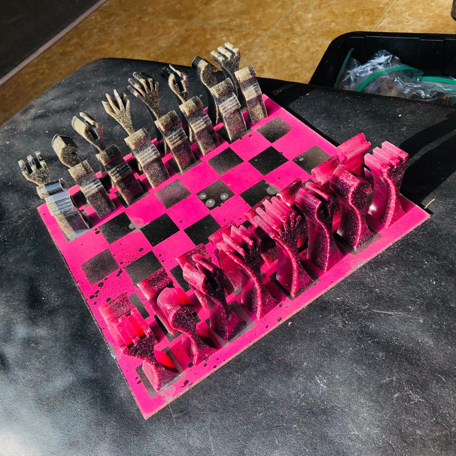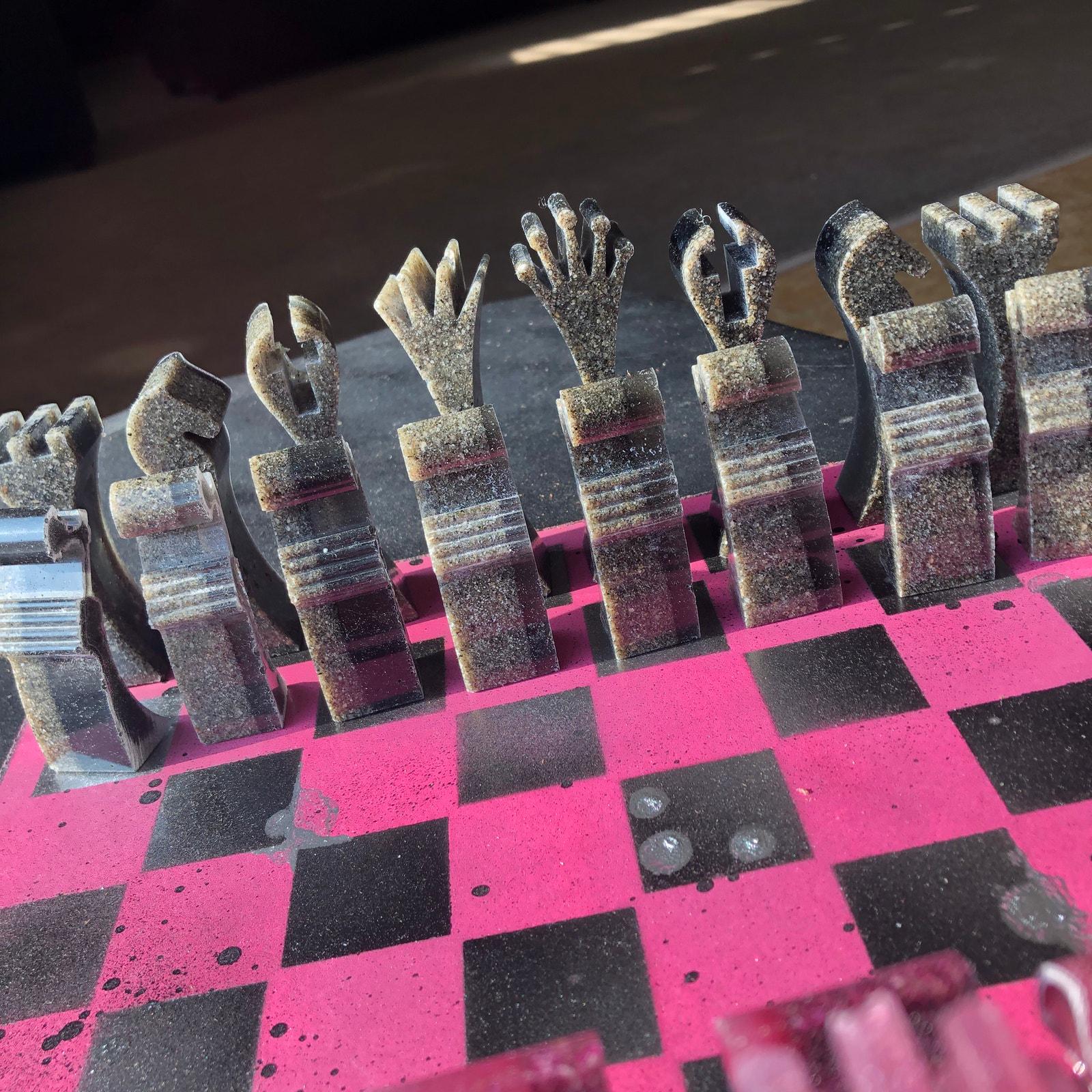 Introducing our exclusive Handcrafted Hardboard Chess Set, meticulously designed with precision and care. Measuring 12 inches by 12 inches, this chess set features a beautifully painted hardwood board that doubles as a work of art. Each set is a unique, one-of-a-kind creation, crafted by hand to ensure that no two sets are alike. Elevate your gaming experience with this exceptional chess set that combines vibrant design with the touch of artisan craftsmanship. This chess board comes with chess pieces.