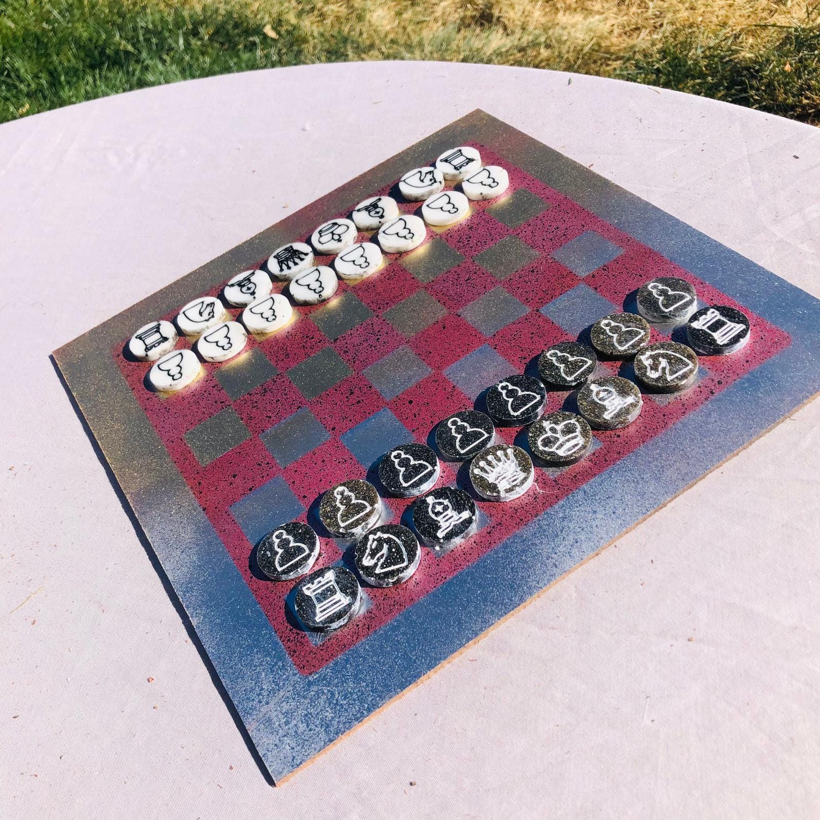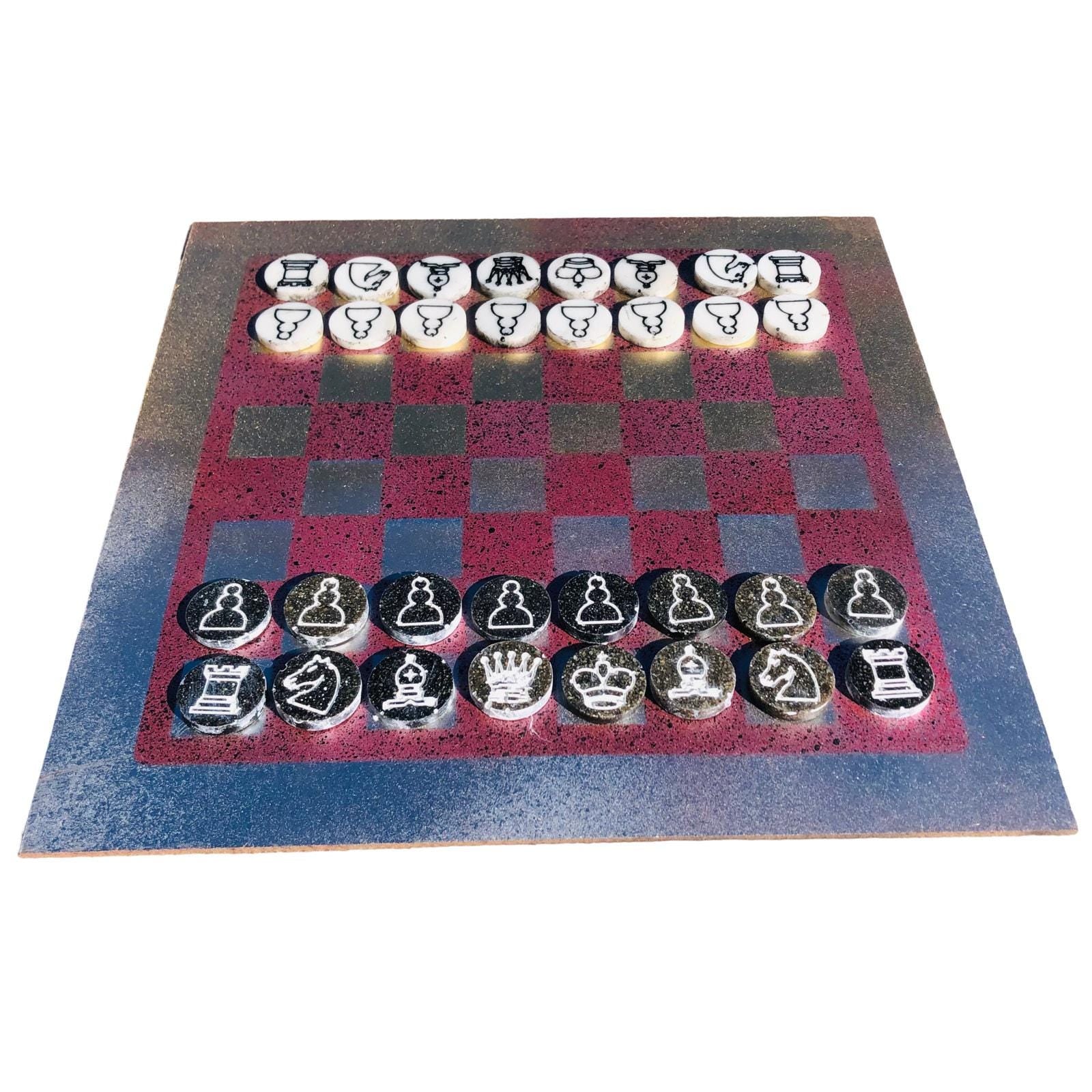 Introducing our exclusive Handcrafted Hardboard Chess Set, meticulously designed with precision and care. Measuring 12 inches by 12 inches, this chess set features a beautifully painted hardwood board that doubles as a work of art. Each set is a unique, one-of-a-kind creation, crafted by hand to ensure that no two sets are alike. Elevate your gaming experience with this exceptional chess set that combines vibrant design with the touch of artisan craftsmanship. This chess board comes with chess pieces.