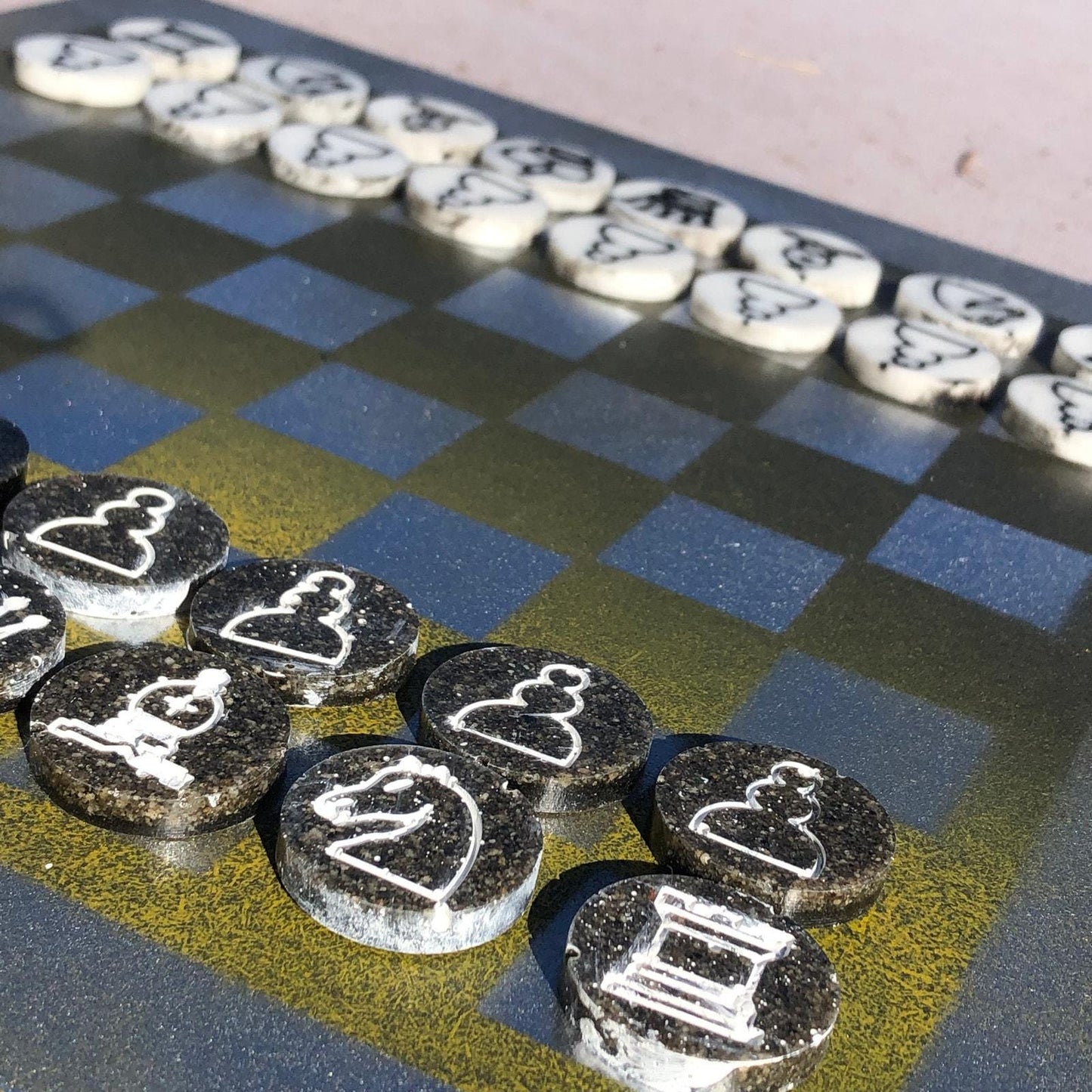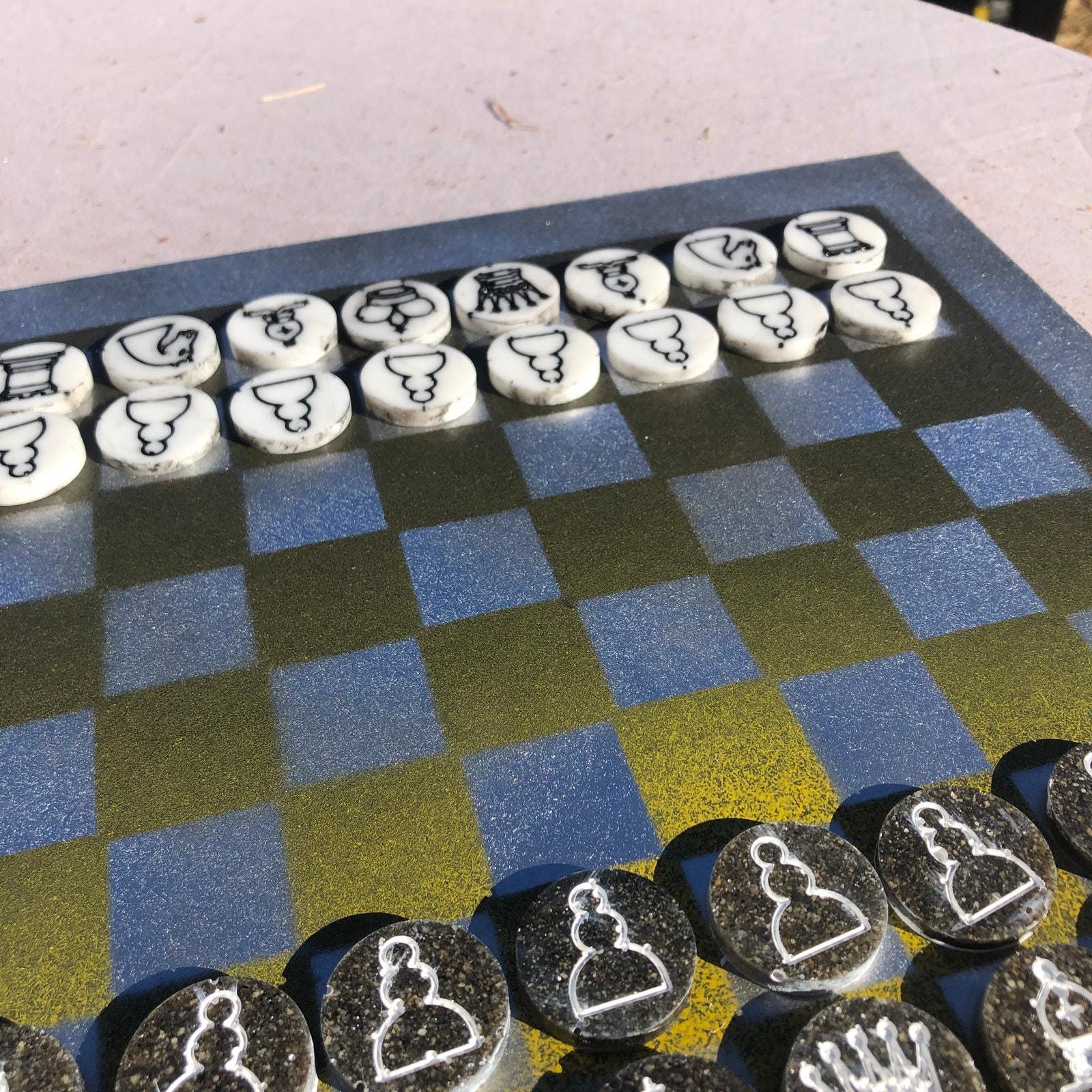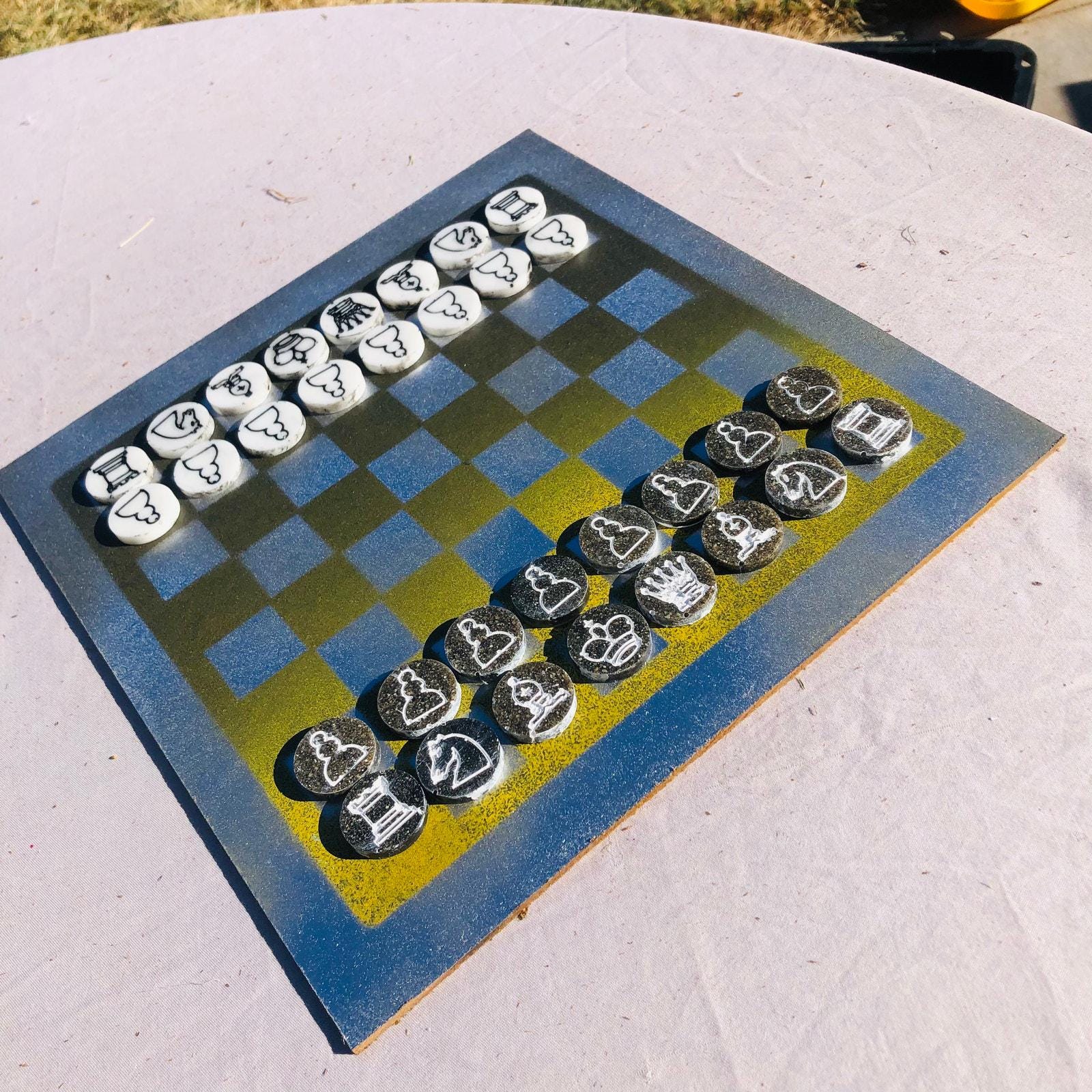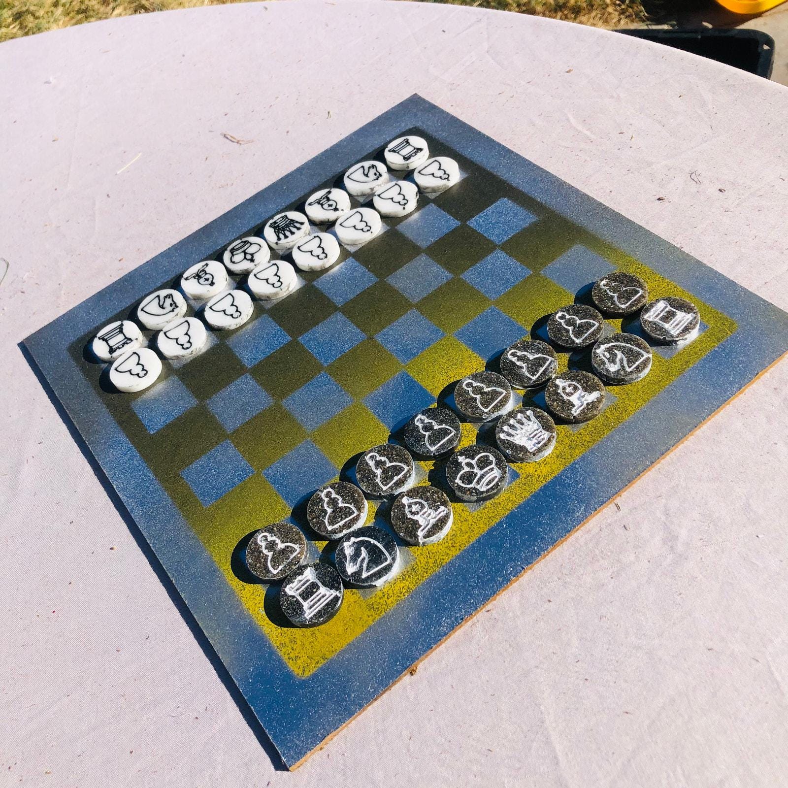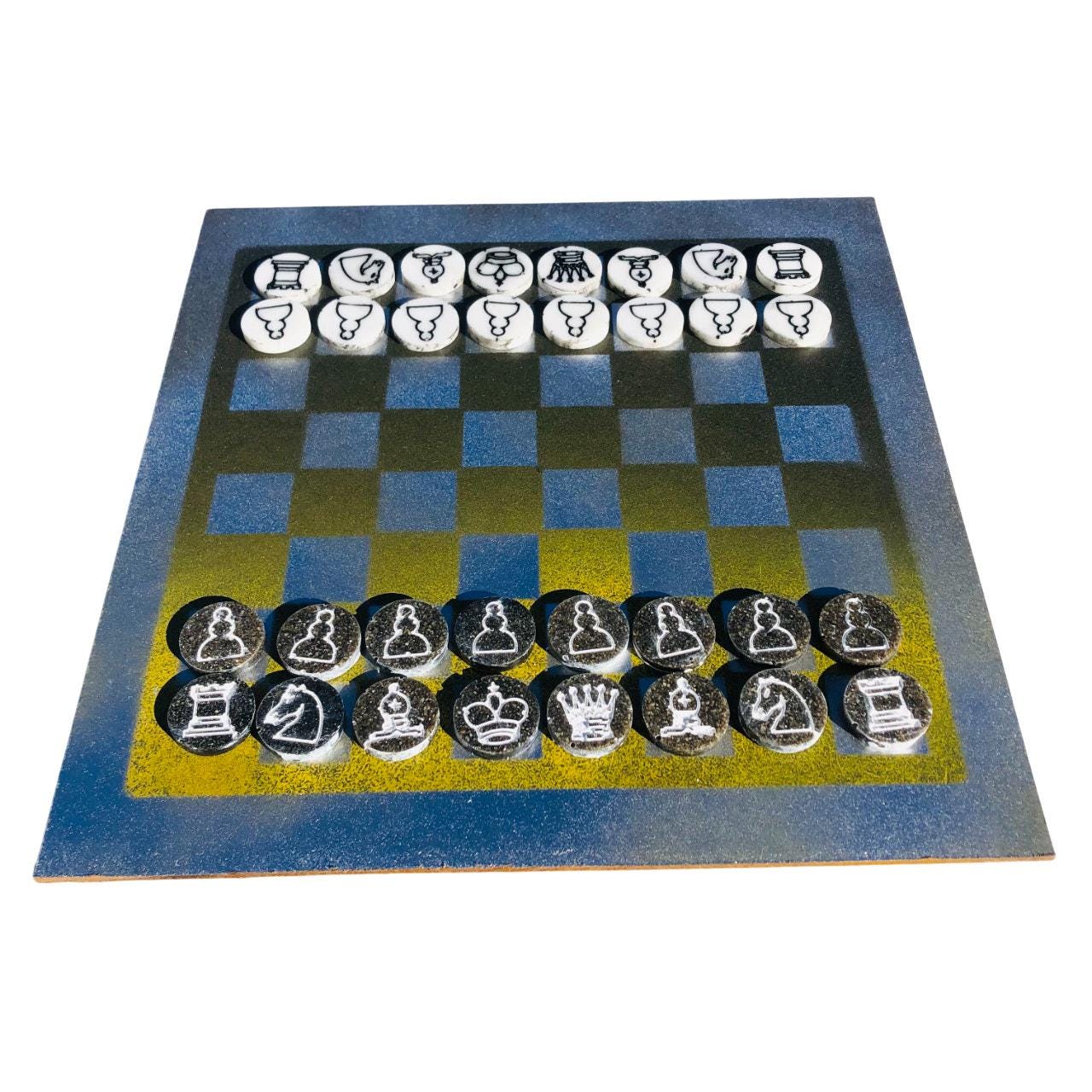 Introducing our exclusive Handcrafted Hardboard Chess Set, meticulously designed with precision and care. Measuring 12 inches by 12 inches, this chess set features a beautifully painted hardwood board that doubles as a work of art. Each set is a unique, one-of-a-kind creation, crafted by hand to ensure that no two sets are alike. Elevate your gaming experience with this exceptional chess set that combines vibrant design with the touch of artisan craftsmanship. This chess board comes with chess pieces.
