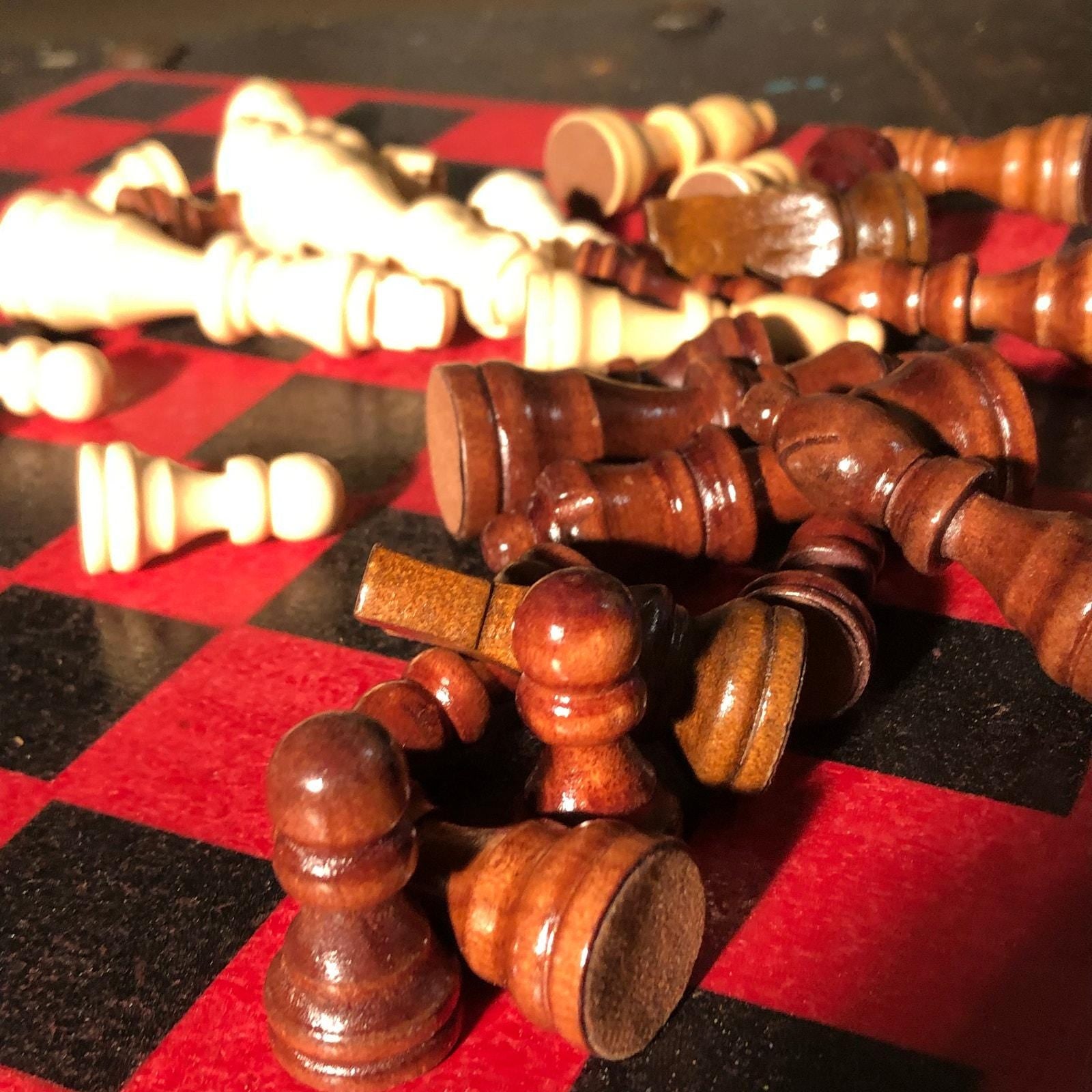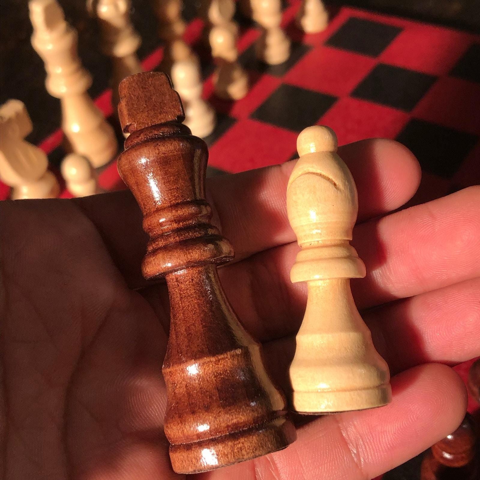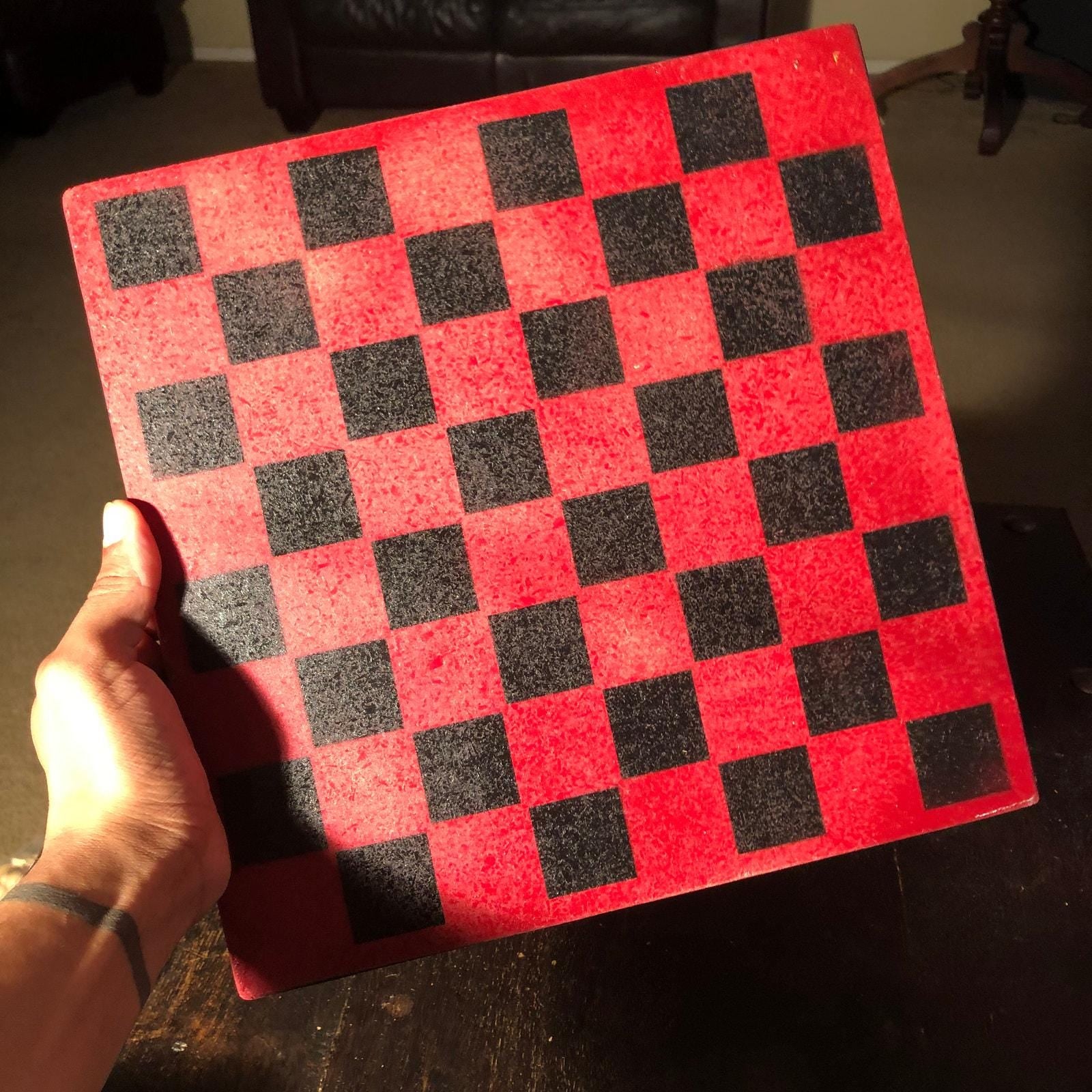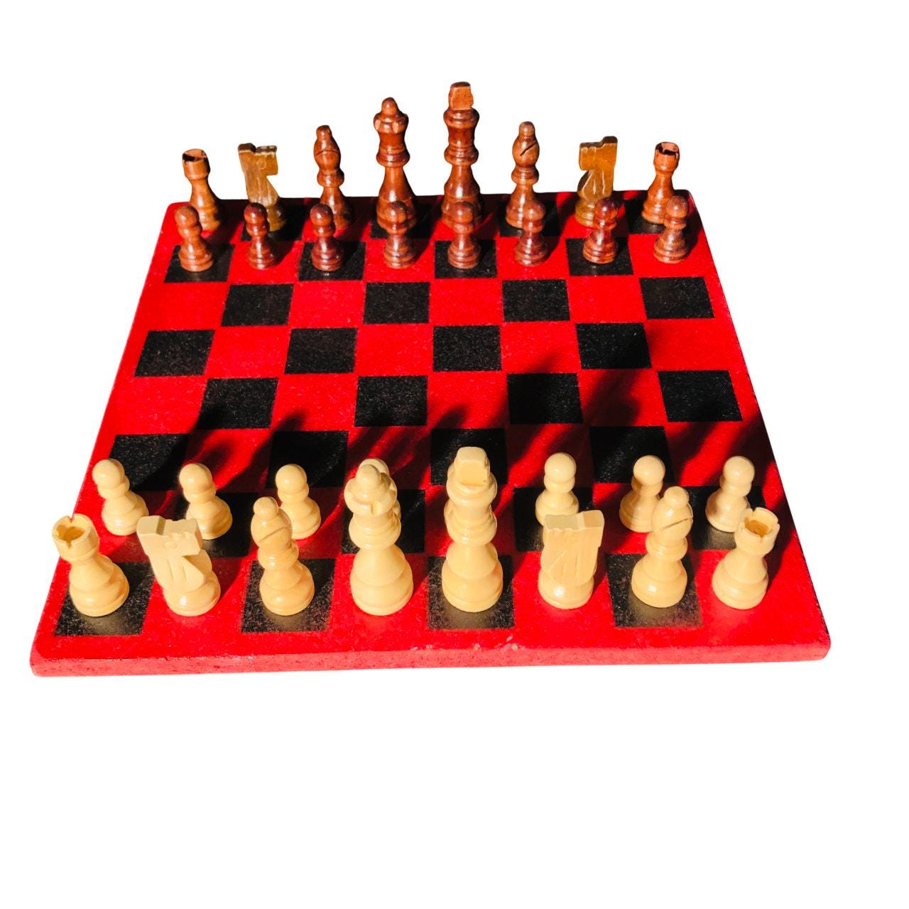 Introducing our exclusive Handcrafted Wooden Chess Set, meticulously designed with precision and care. Measuring 12 inches by 12 inches, this chess set features a beautifully painted Particle Board board that doubles as a work of art. Each set is a unique, one-of-a-kind creation, crafted by hand to ensure that no two sets are alike. Elevate your gaming experience with this exceptional chess set that combines vibrant design with the touch of artisan craftsmanship. This chess board comes with chess pieces.