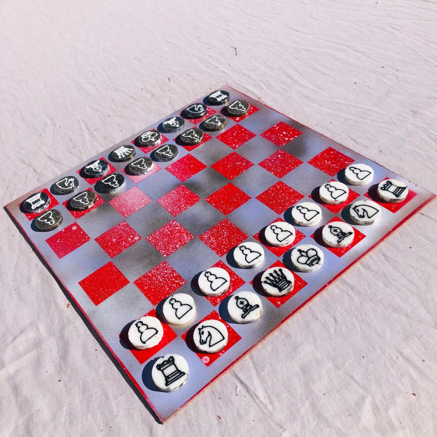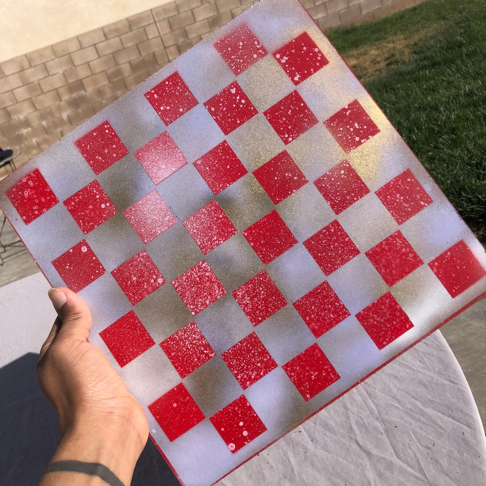 Introducing our exclusive Handcrafted Hardboard Chess Set, meticulously designed with precision and care. Measuring 12 inches by 12 inches, this chess set features a beautifully painted hardwood board that doubles as a work of art. Each set is a unique, one-of-a-kind creation, crafted by hand to ensure that no two sets are alike. Elevate your gaming experience with this exceptional chess set that combines vibrant design with the touch of artisan craftsmanship. This chess board comes with chess pieces.